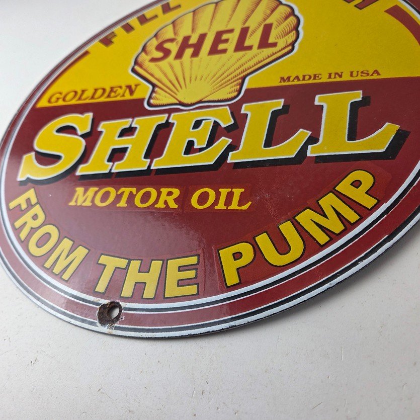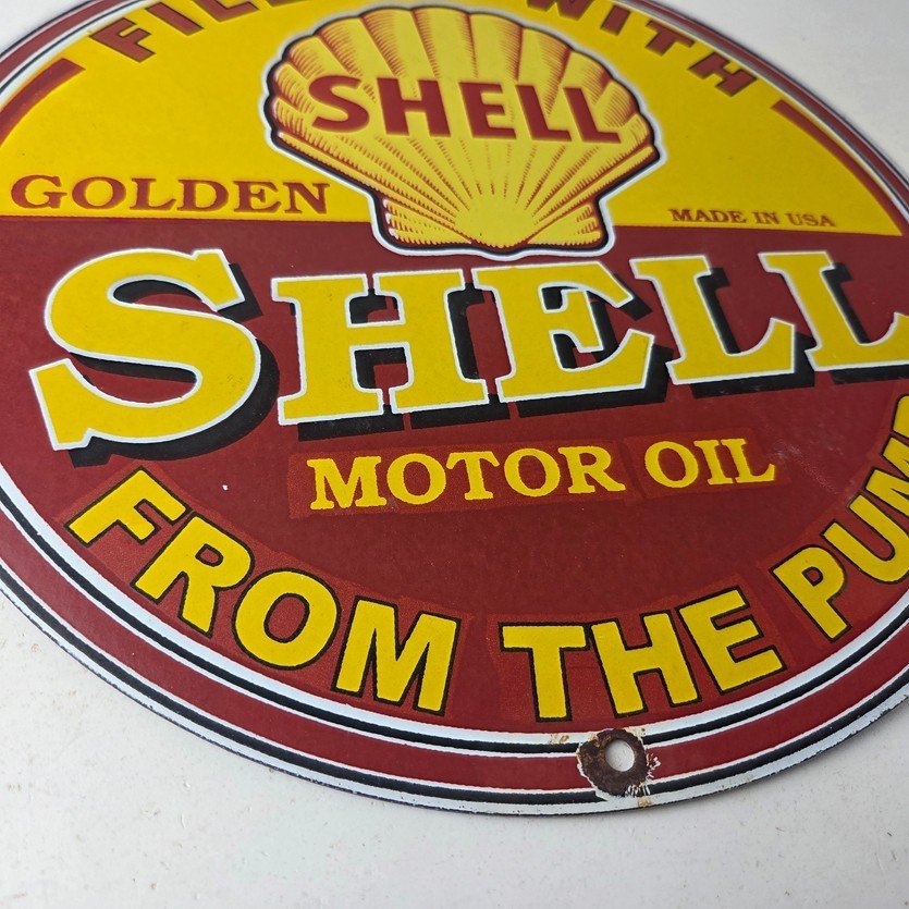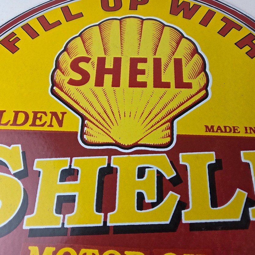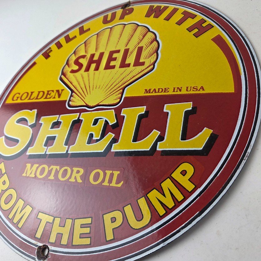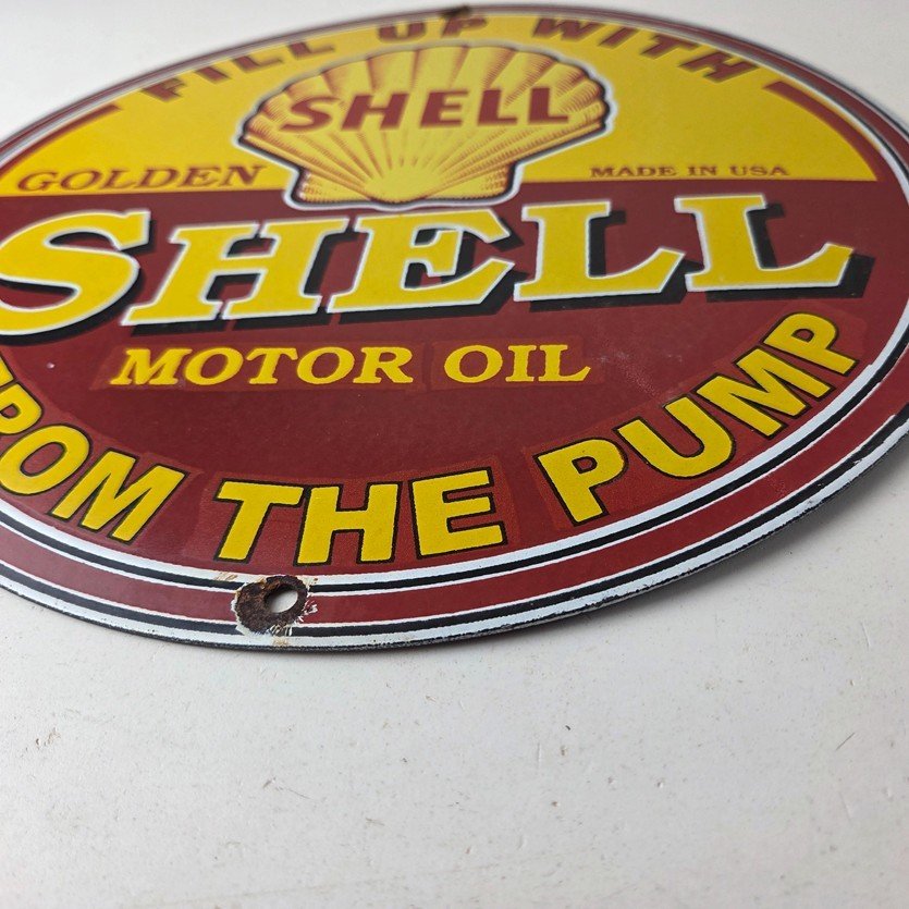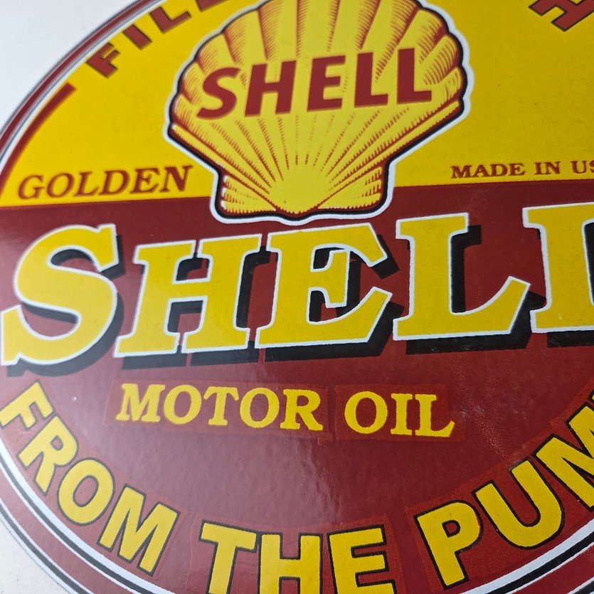 Vintage Shell Golden Gasoline Sign – Gas Pump Station Porcelain Advertising Sign