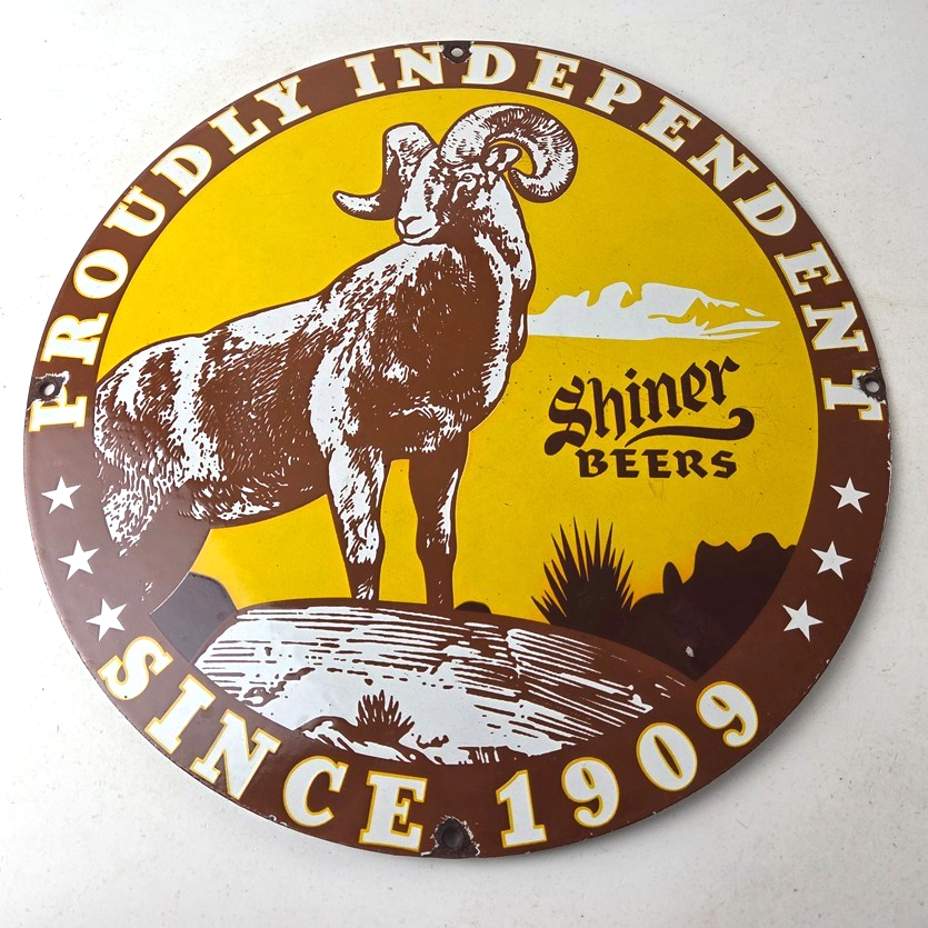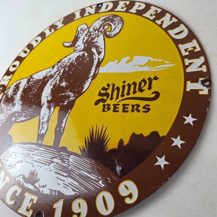 Vintage Shiner Beer Sign – Independent Beverage Gas Station Porcelain Sign