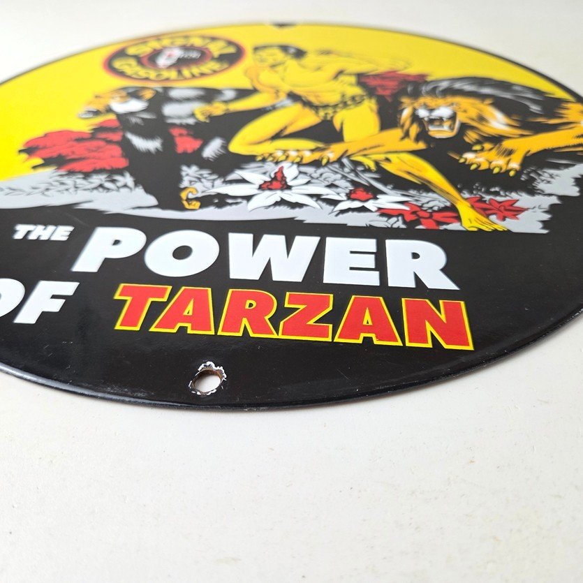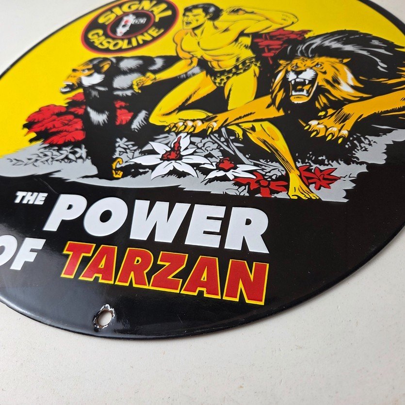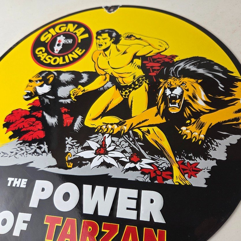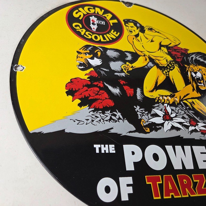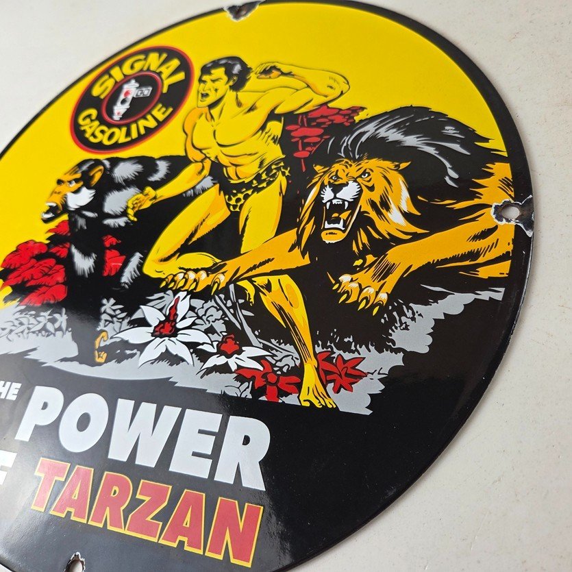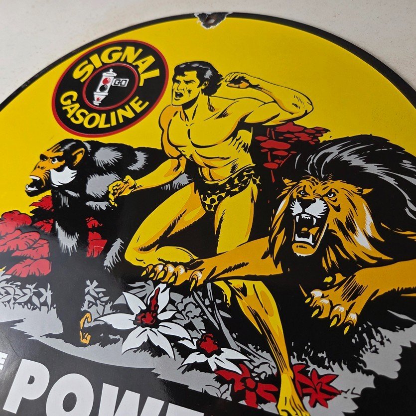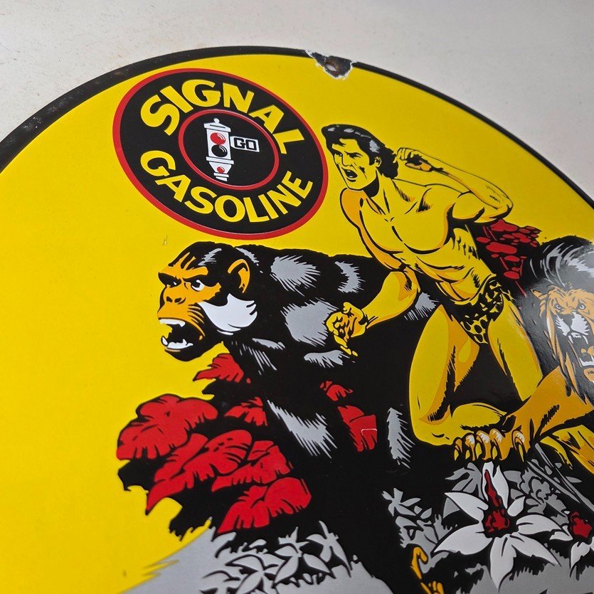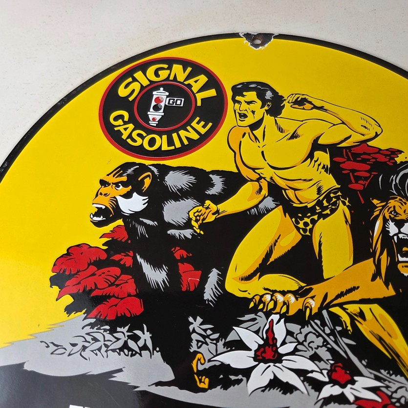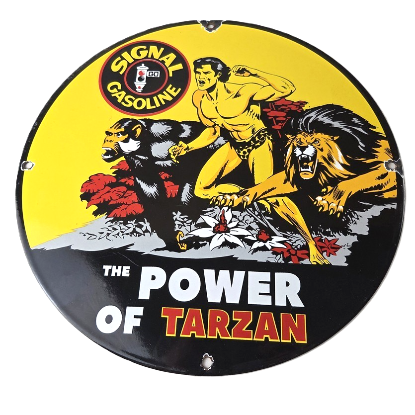 Vintage Signal Gasoline Sign – Tarzan Ape Lion Gas Pump Porcelain Sign