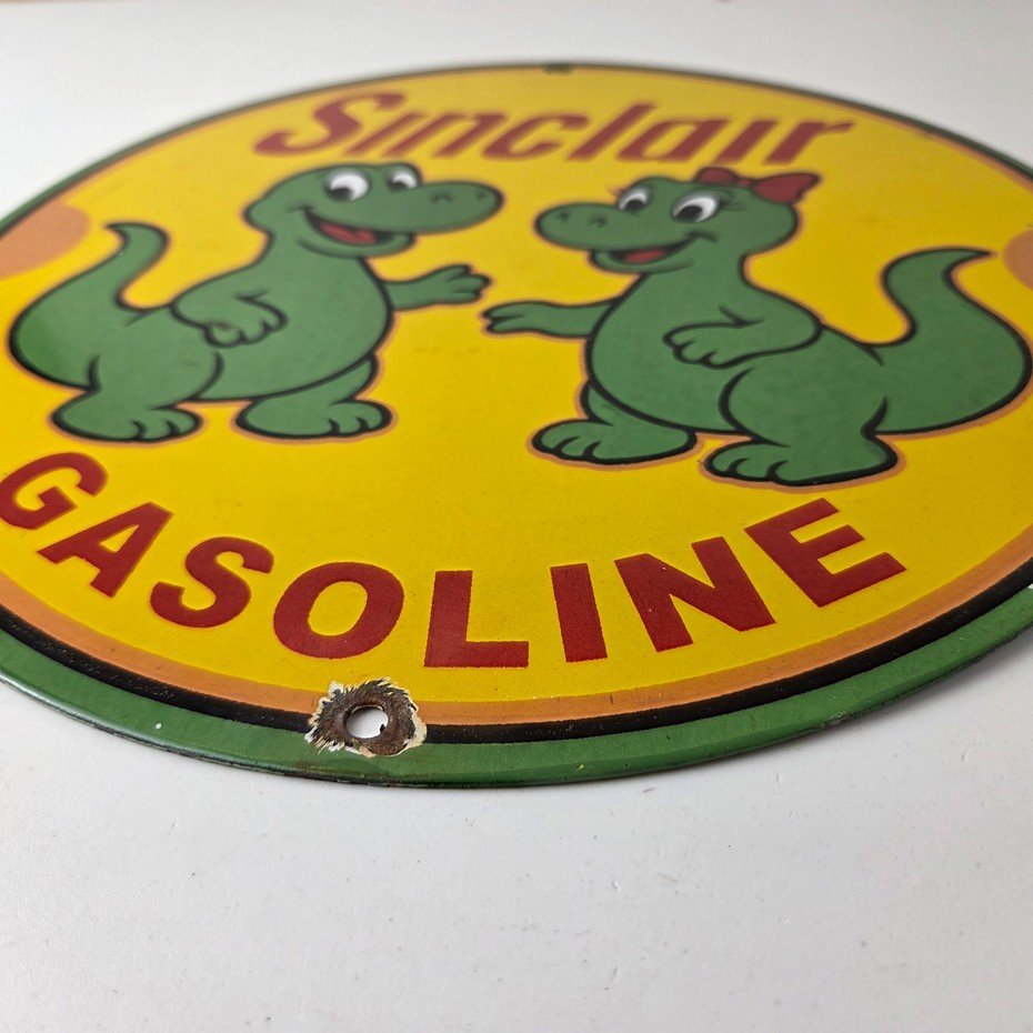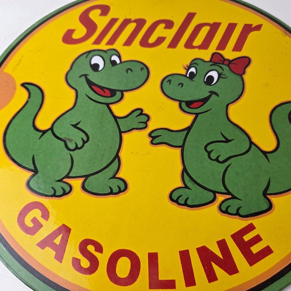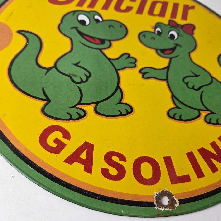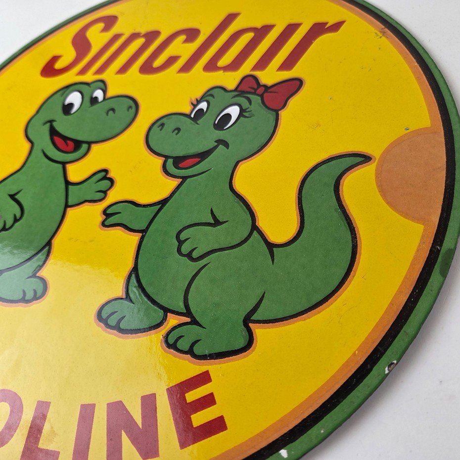 Vintage Sinclair Gasoline Porcelain Sign – Dinosaurs Gas Pump Plate Sign