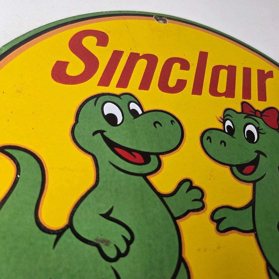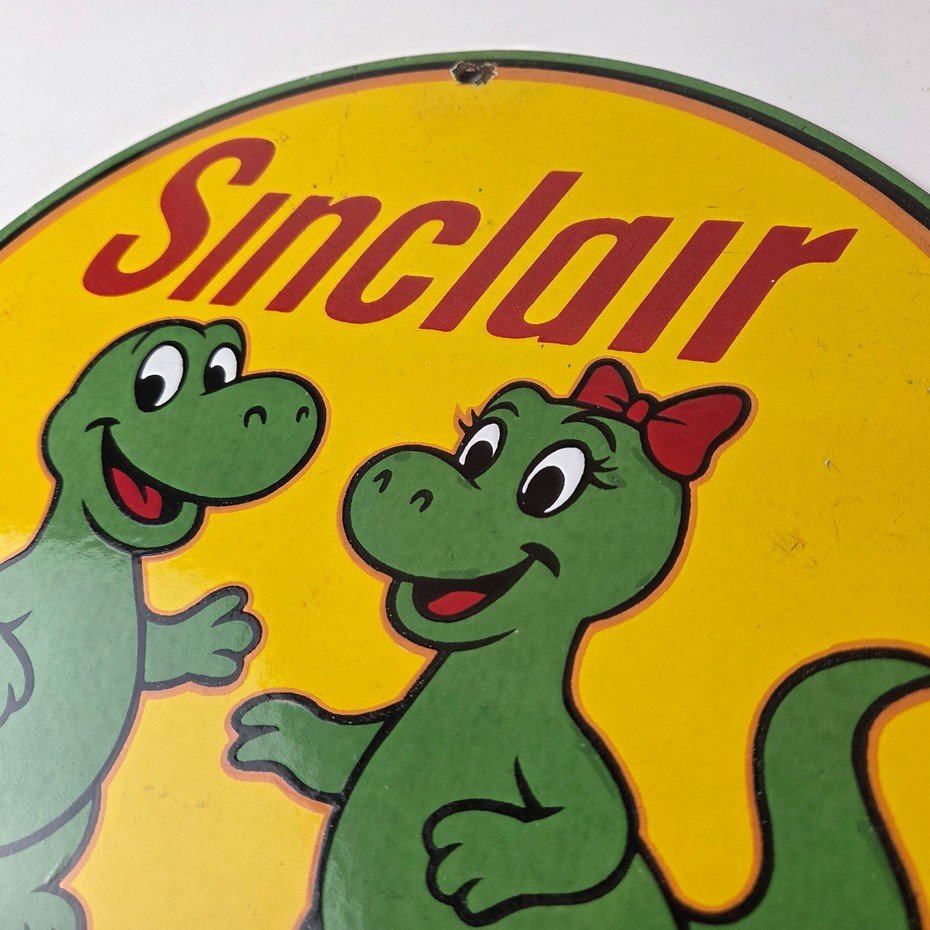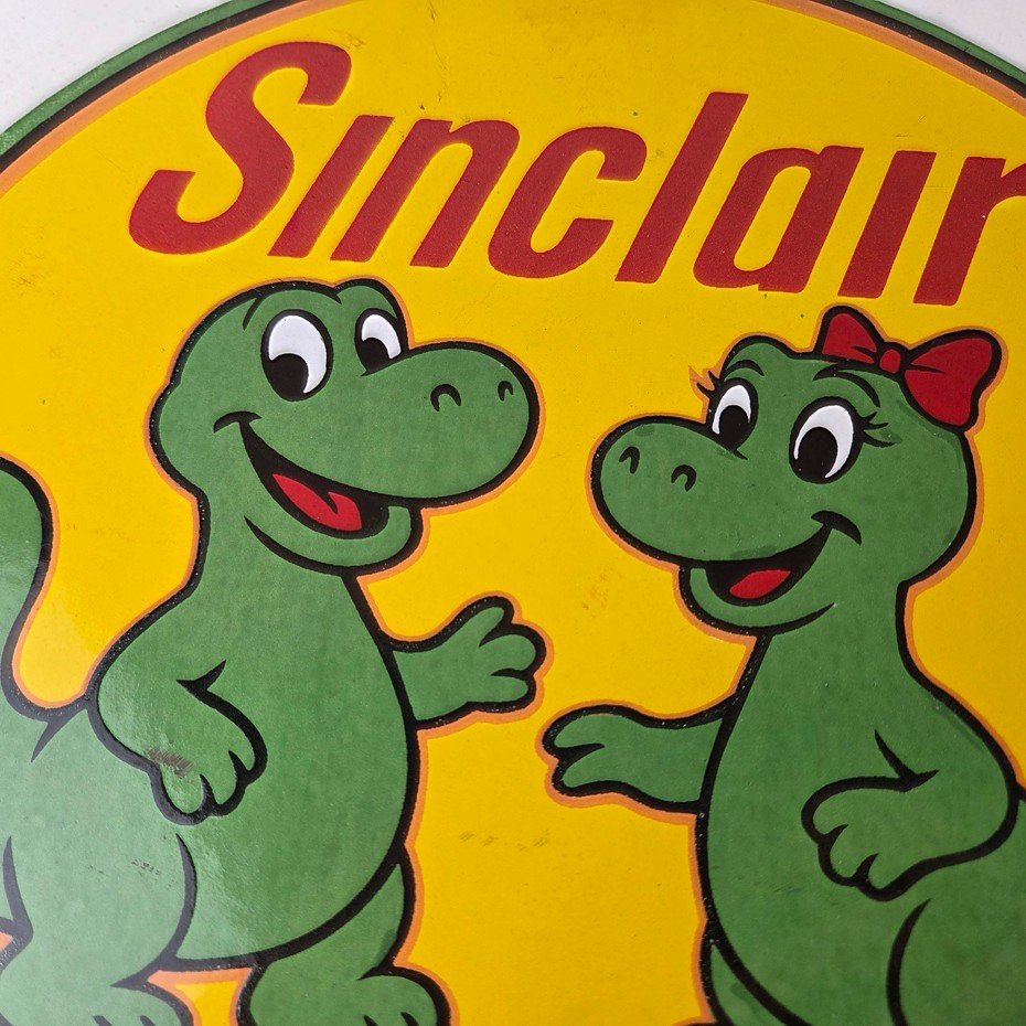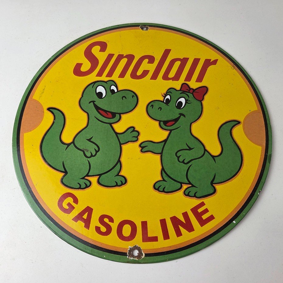 Vintage Sinclair Gasoline Porcelain Sign – Dinosaurs Gas Pump Plate Sign