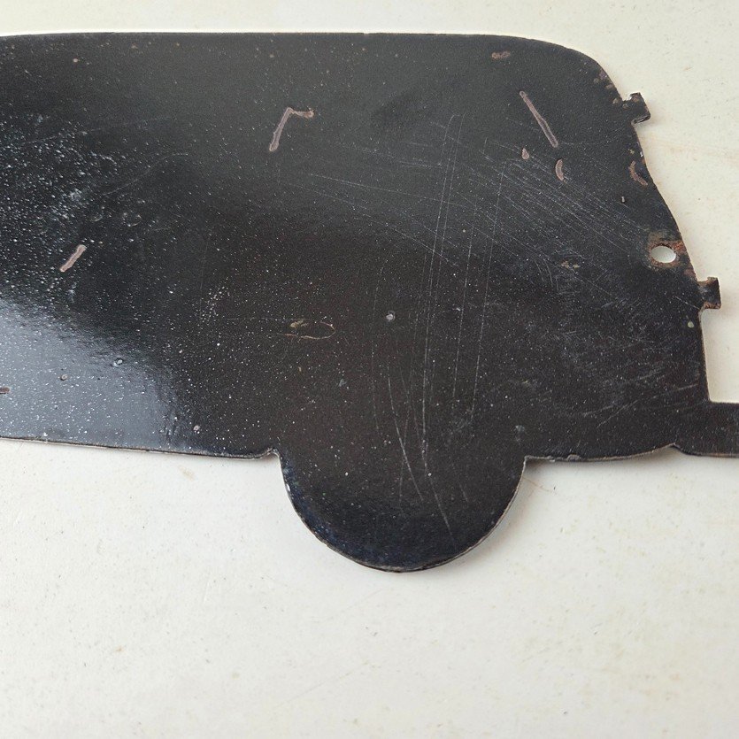 This vintage Sinclair Gasoline porcelain sign features the iconic dinosaur known as Dino and is made of porcelain. The sign measures 12″ across by 5 1/2″ tall and features dino the door and the sign is in the shape of an old service truck.