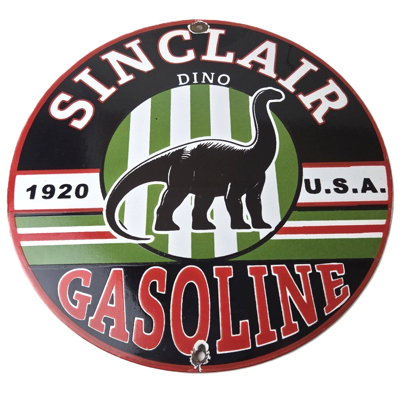 This vintage Sinclair Gasoline porcelain sign features the iconic dinosaur, Dino. Made for use on gas pumps, this sign measures 12 inches across and boasts a colorful design that celebrates the Gas & Oil advertising industry. Whether you’re a collector of gas & oil or simply appreciate classic Americana, this sign is a must-have for any enthusiast of vintage merch and memorabilia.