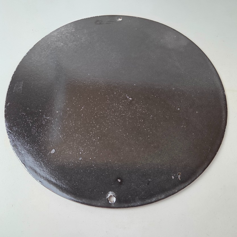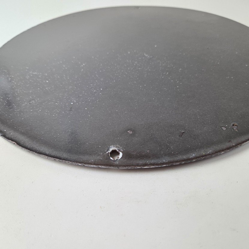 Made of porcelain enamel on steel with patina and wear: rust spotting around the mounting holes, minor edge chips, light surface scratches, and minimal discoloration. This is a porcelain enamel advertising sign in excellent condition, exactly as shown in the photos.