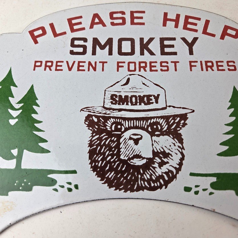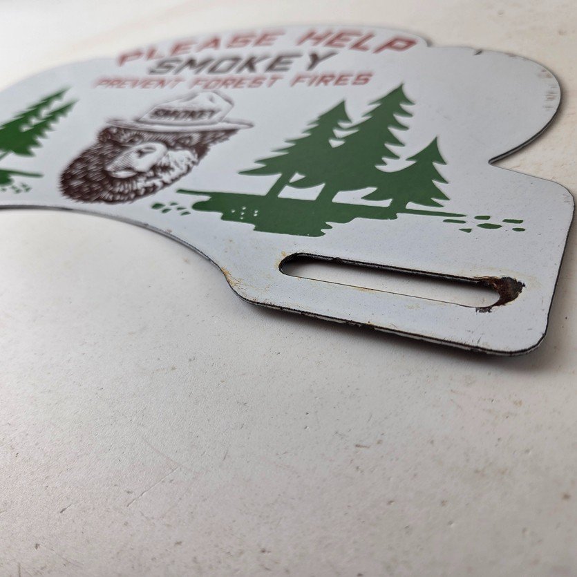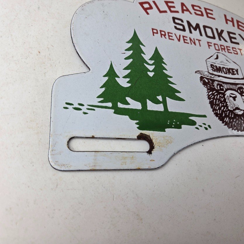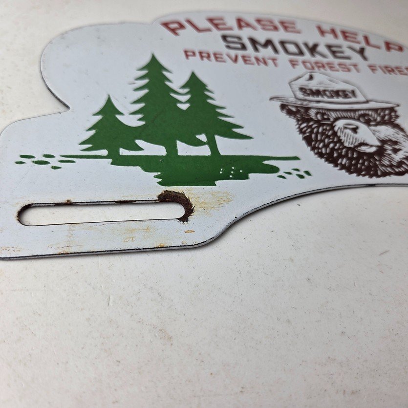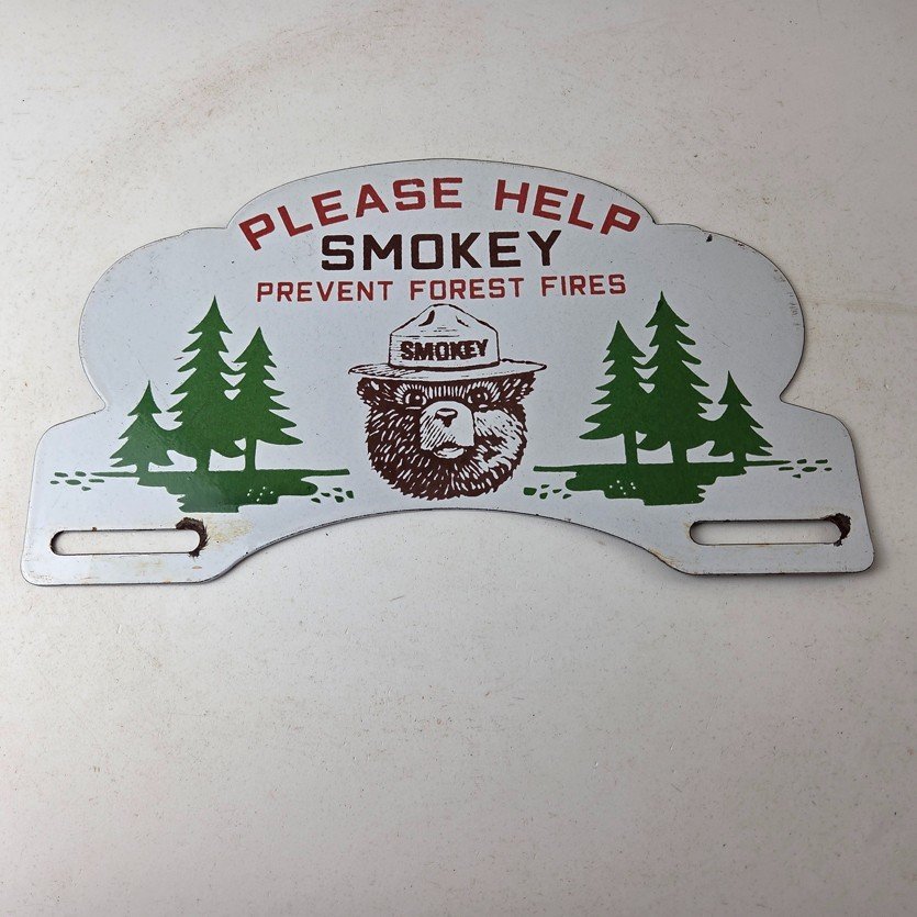 Vintage Smokey Bear Sign Topper – Forest Service Porcelain License Plate Topper