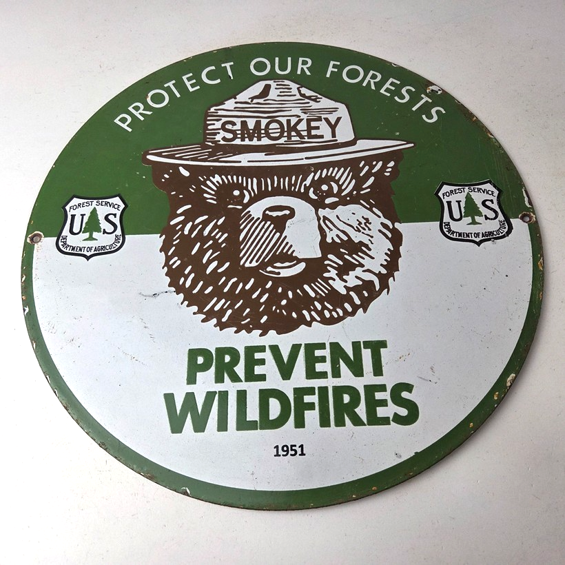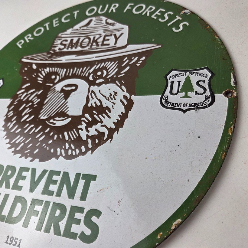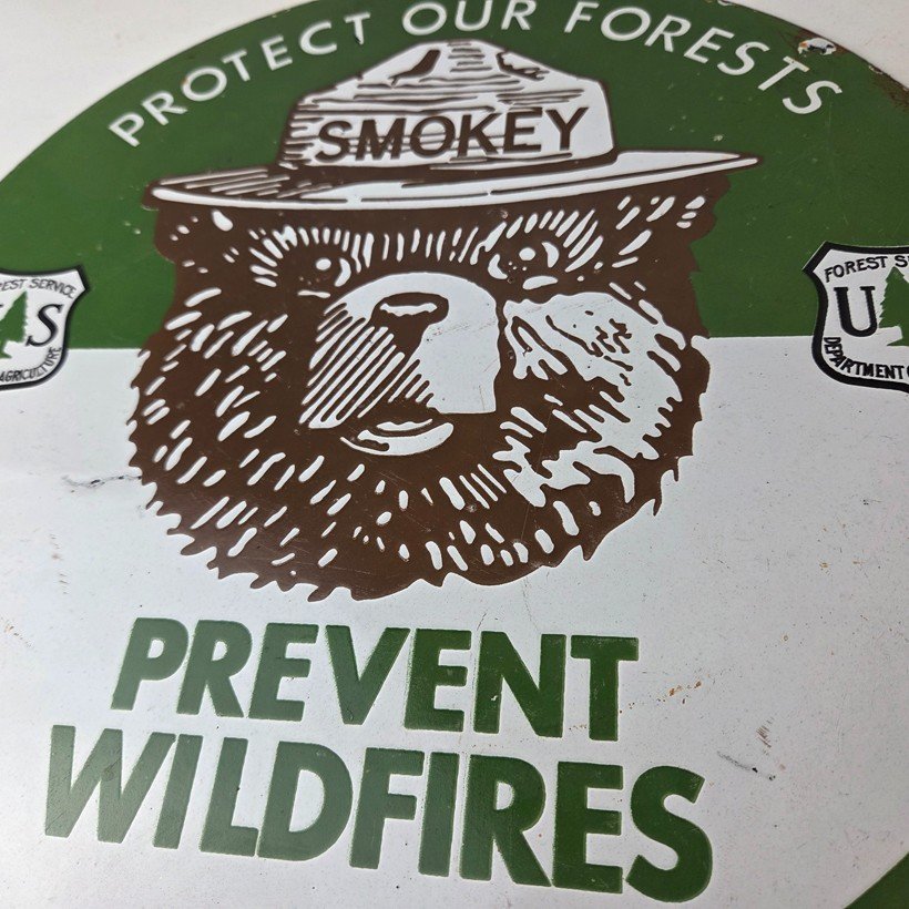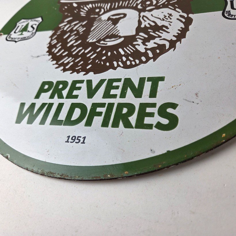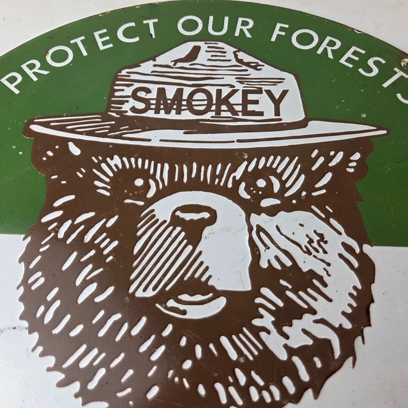 Vintage Smokey Bear Wildfires Porcelain Sign – Gas Pump Forest Station Sign