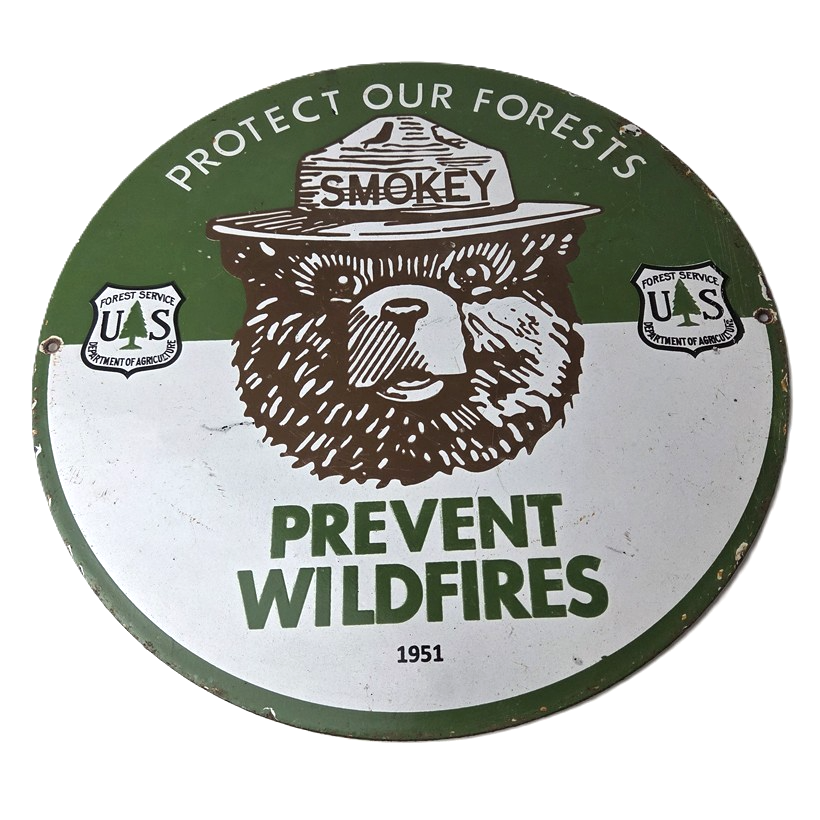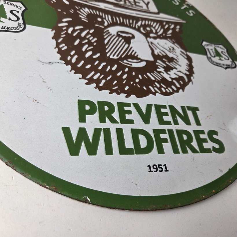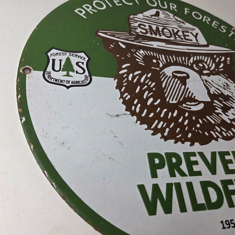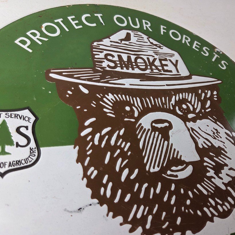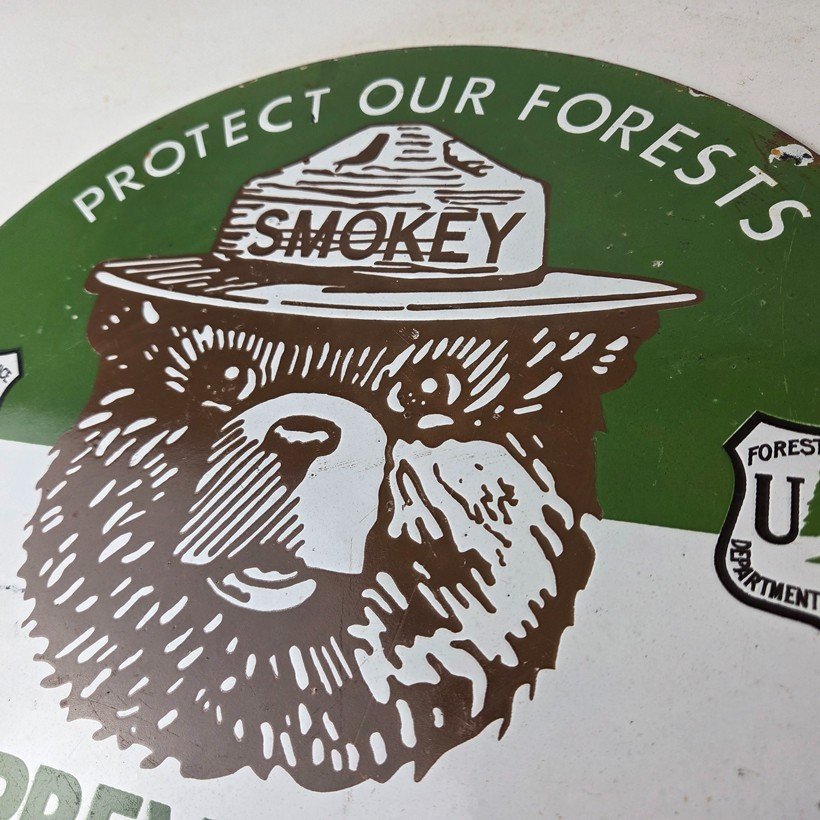 Vintage Smokey Bear Wildfires Porcelain Sign – Gas Pump Forest Station Sign