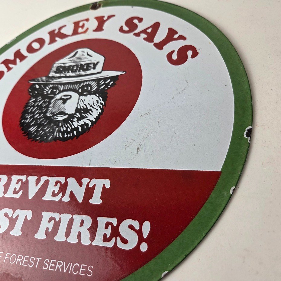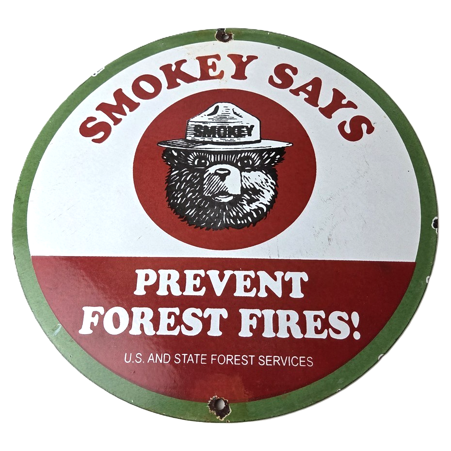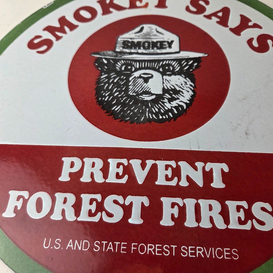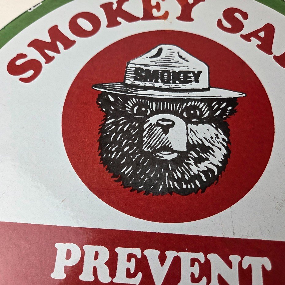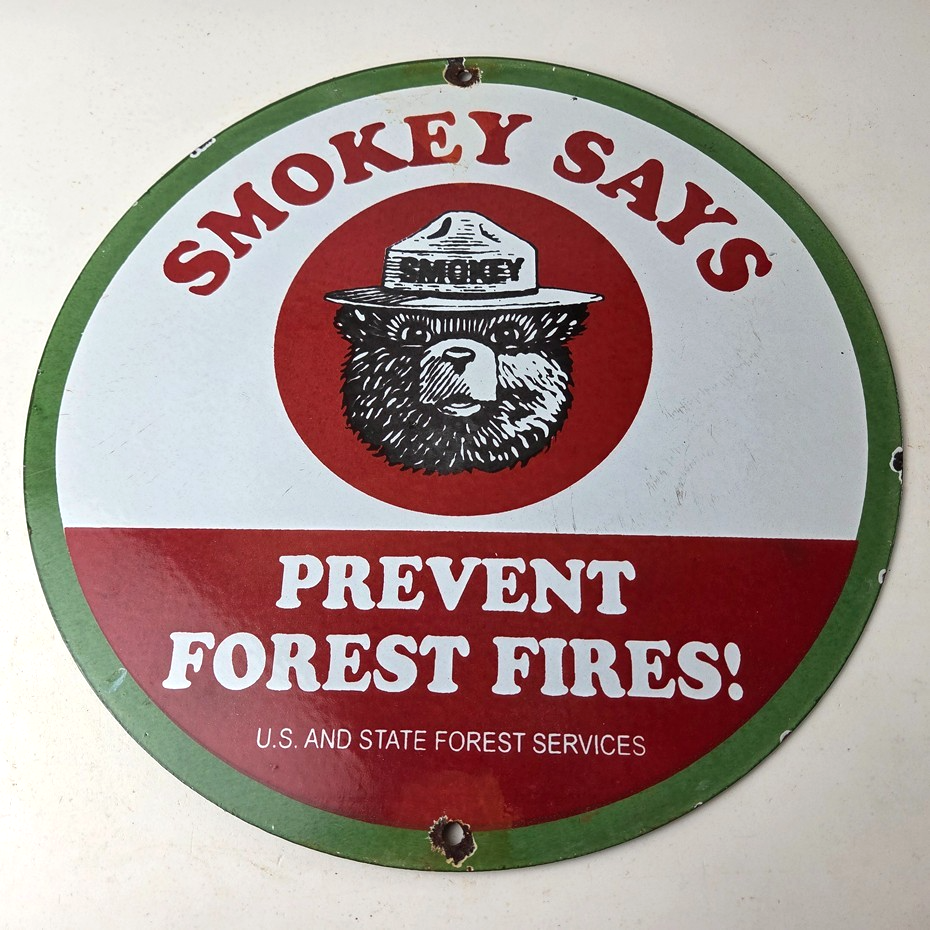 Vintage Smokey Bear Wildfires Porcelain Sign – Prevent Forest Fires Gas Sign