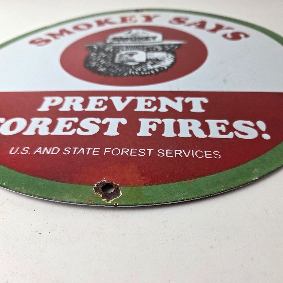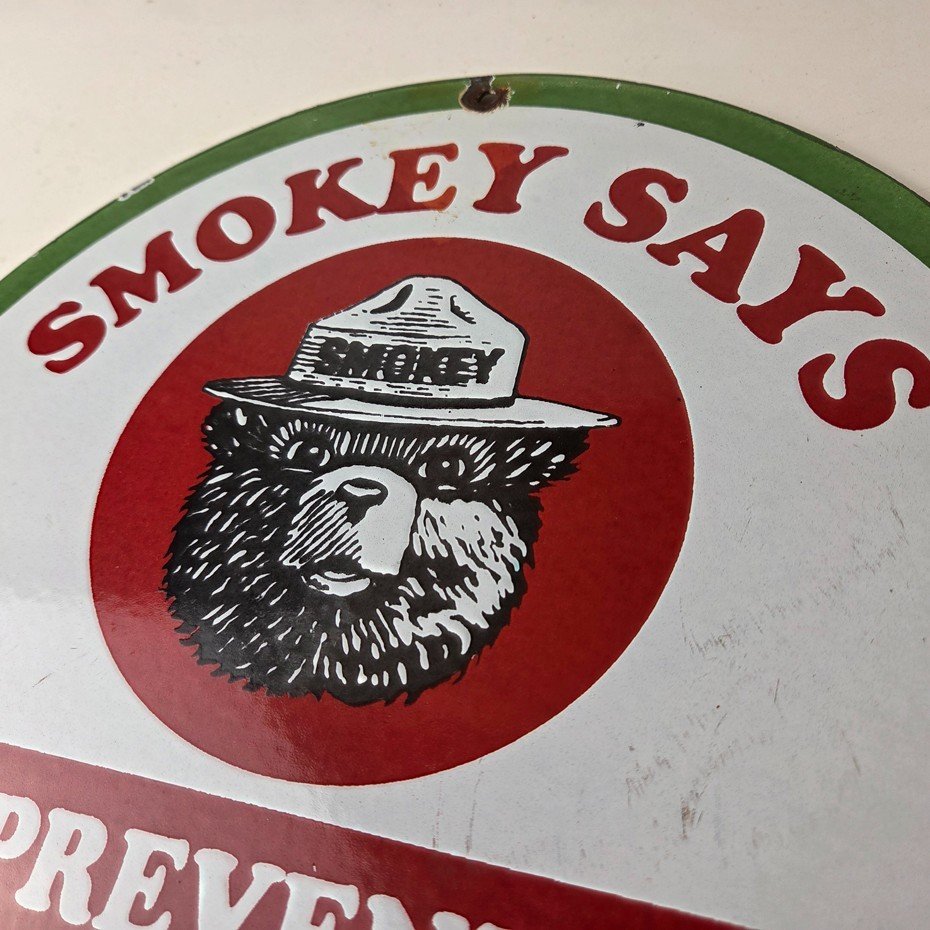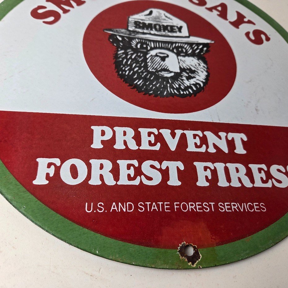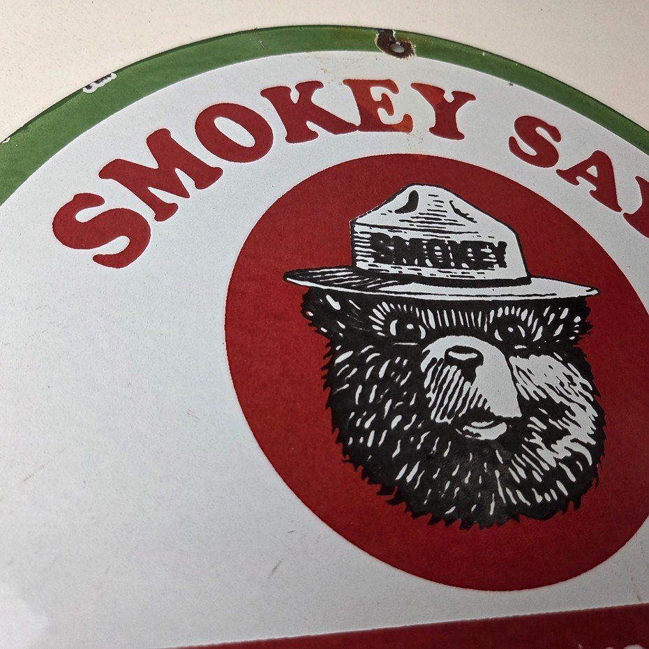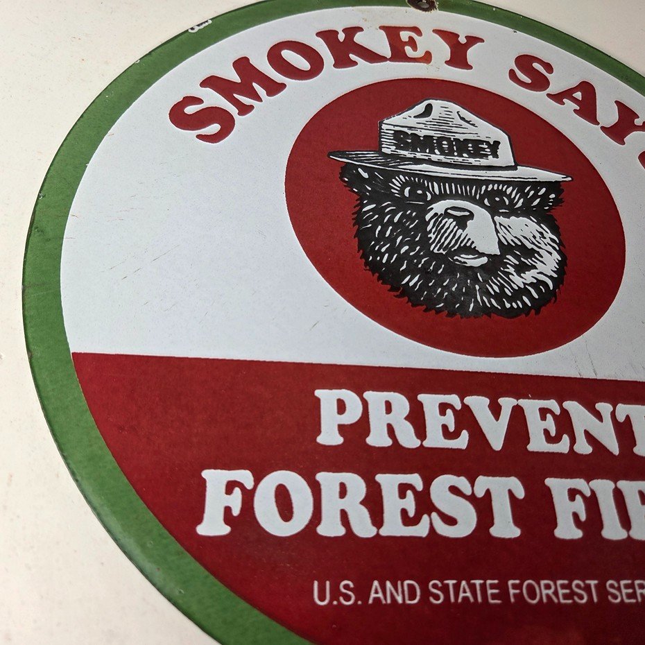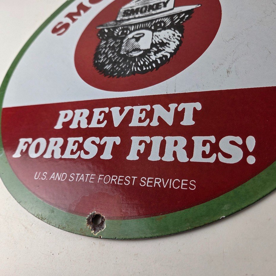 Vintage Smokey Bear Wildfires Porcelain Sign – Prevent Forest Fires Gas Sign