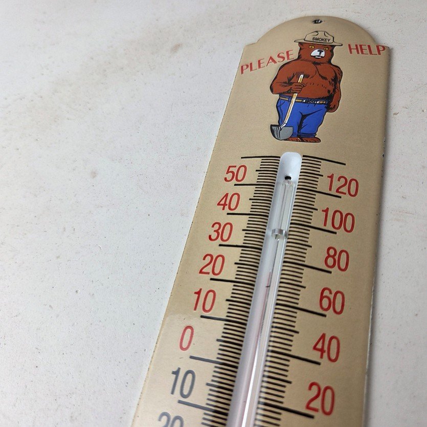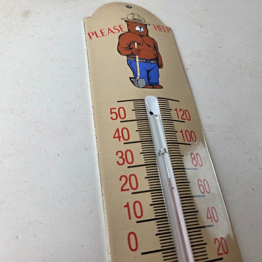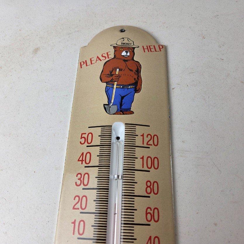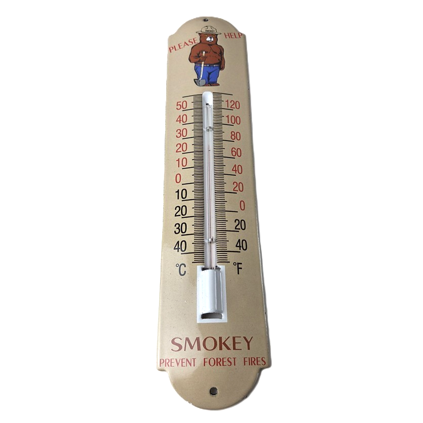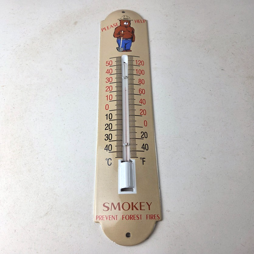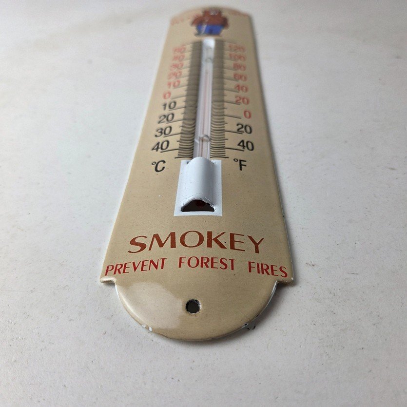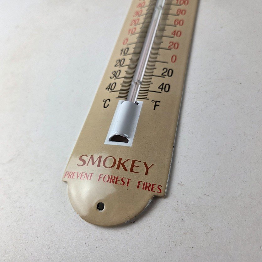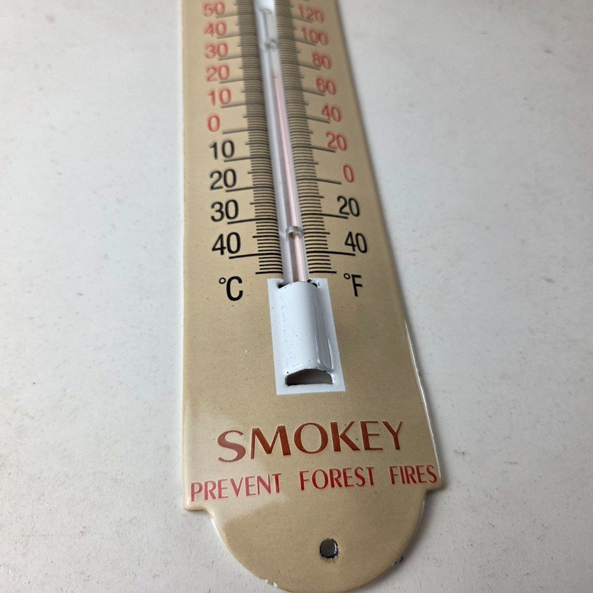 This vintage US Forest Service porcelain thermometer measures 11 3/4″ x 2 1/2″. This thermometer is a great addition to any collection. It features the iconic Smokey the Bear – Prevent Forest Fires advertisement.