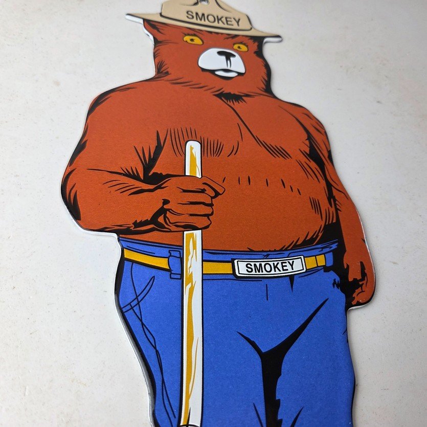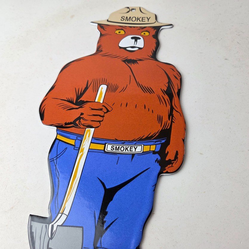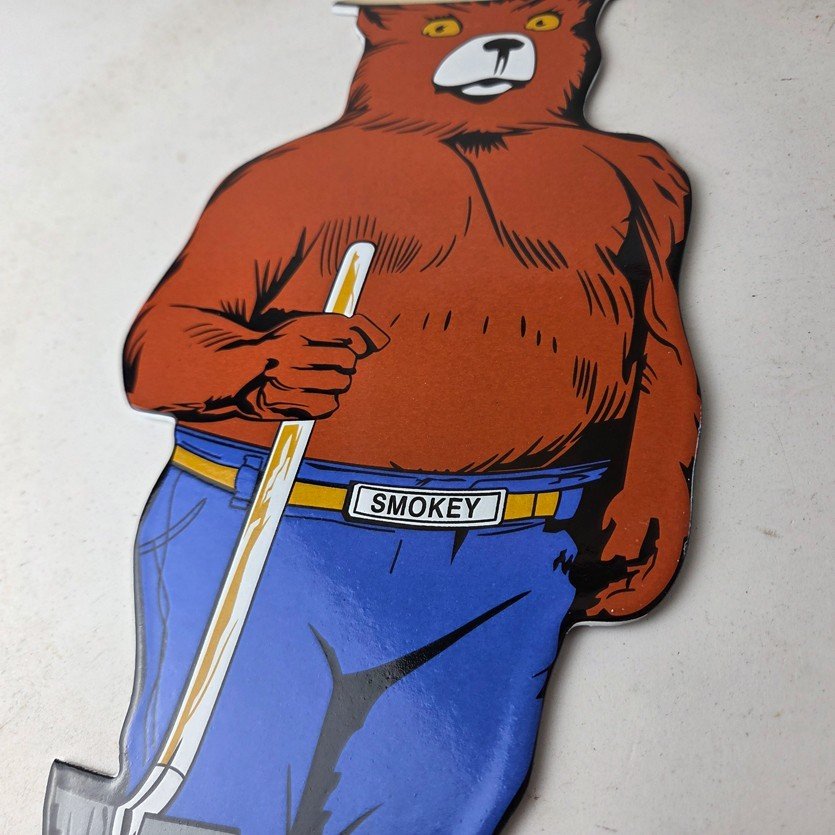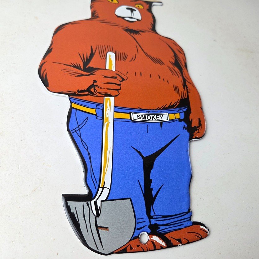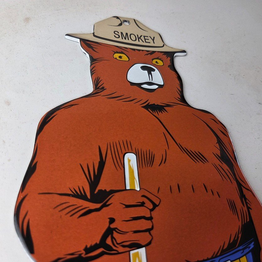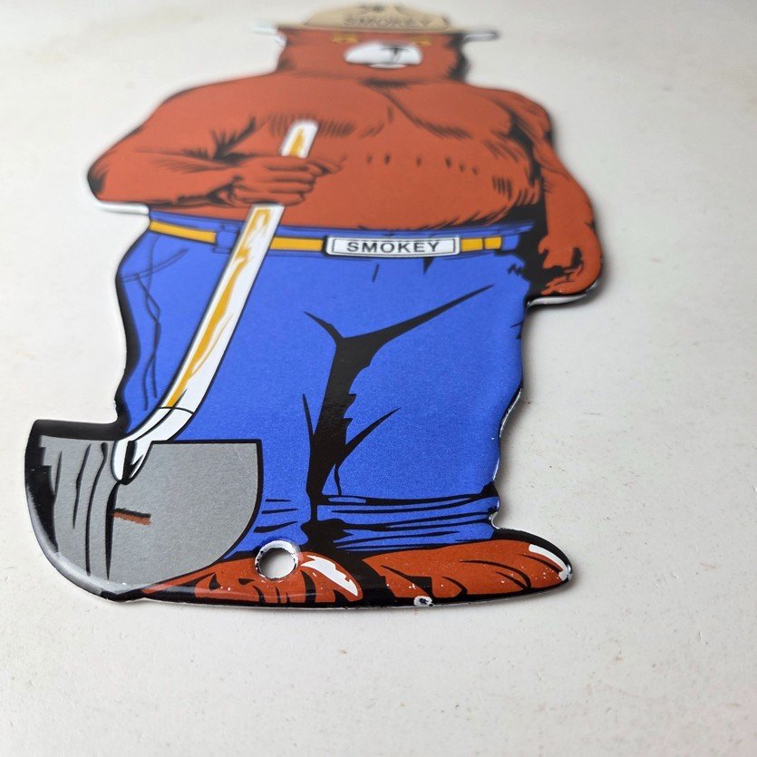 This vintage Forest Service porcelain sign features the iconic Agriculture Forest Service branding and is made of porcelain. The sign measures 12 1/4″ tall by 6″ across and features Smokey the Bear.
