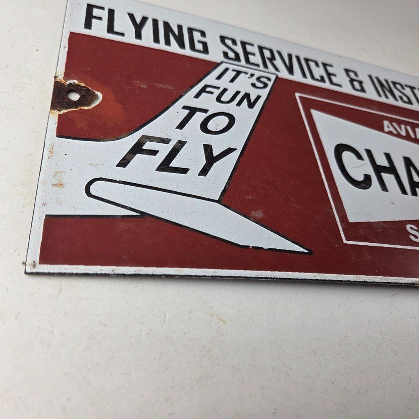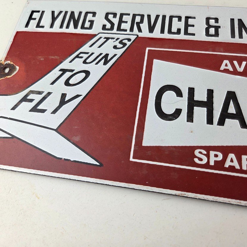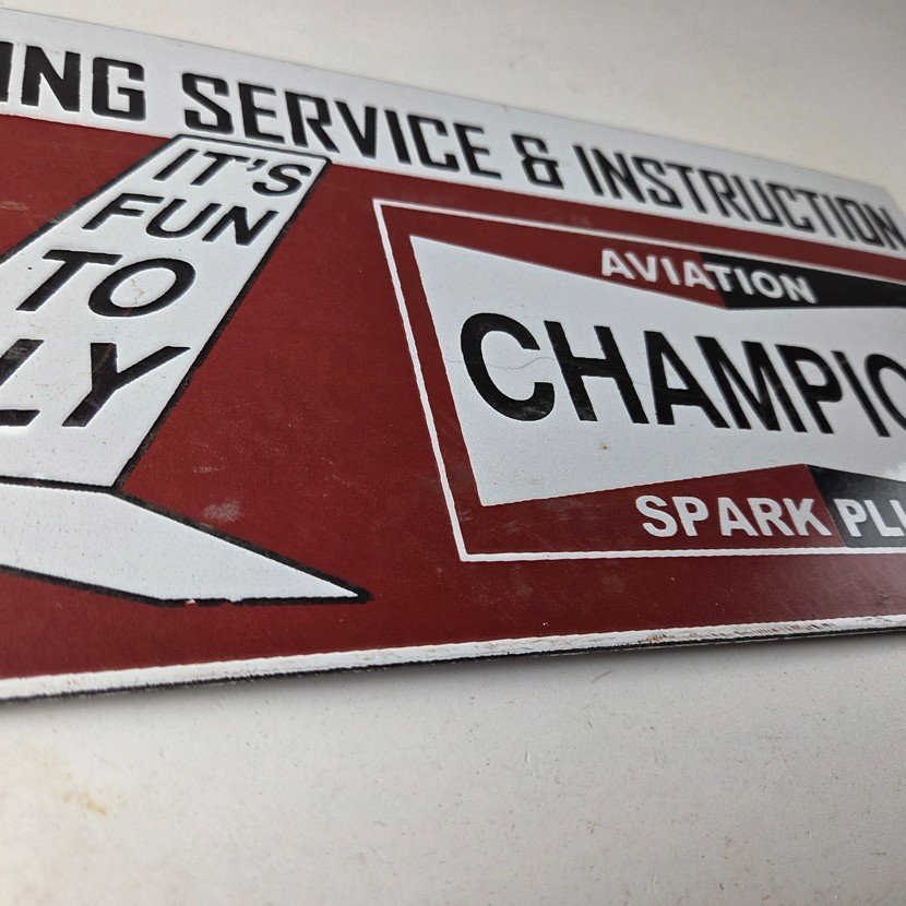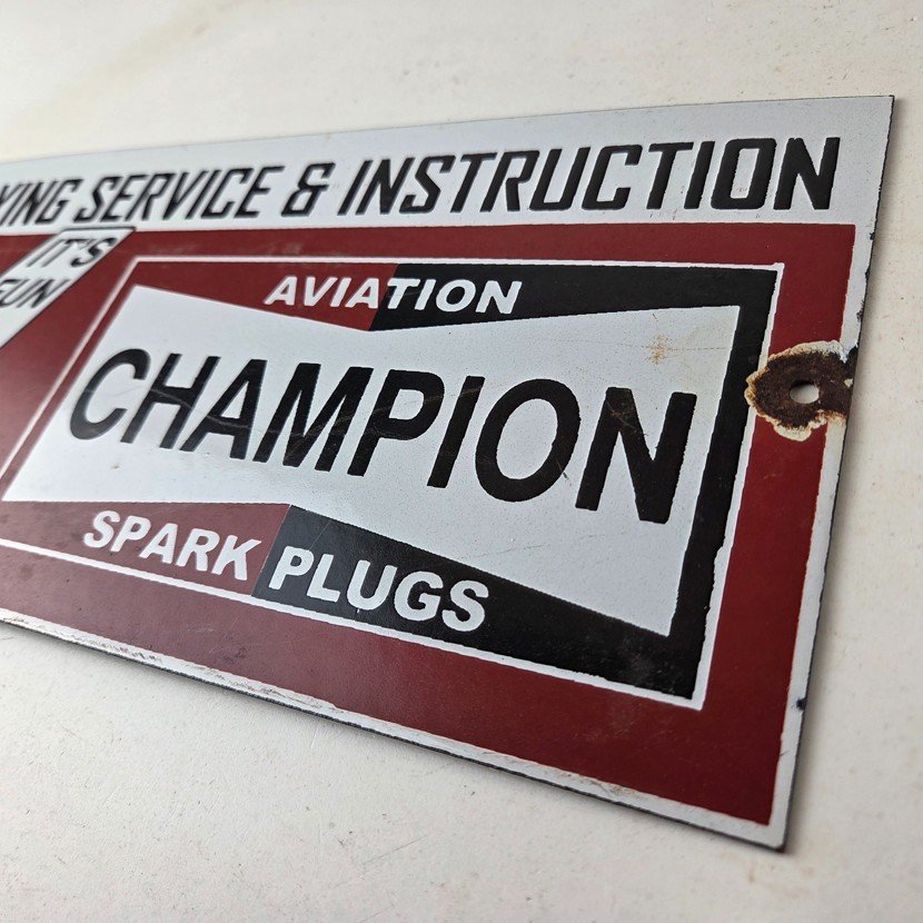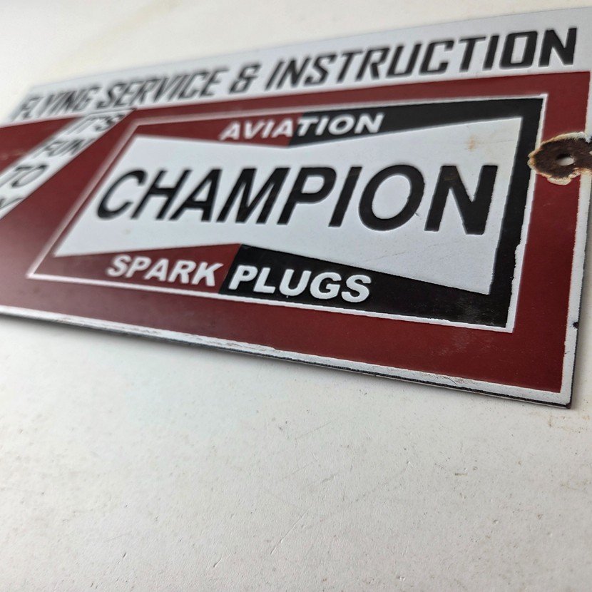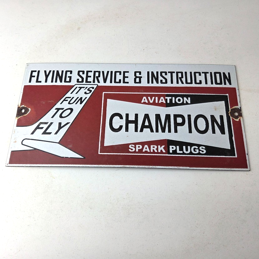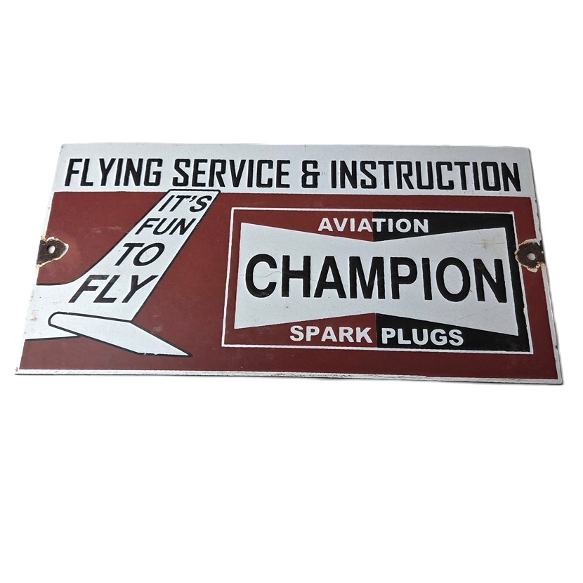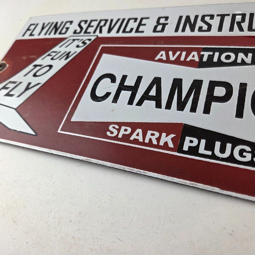 This vintage Aviation Spark Plugs porcelain sign is a true gem for any collector of automotive, oil & gas memorabilia. Measuring 12″ x 6″ and featuring a classic red and black color scheme, this porcelain gas sign is a true must have item.