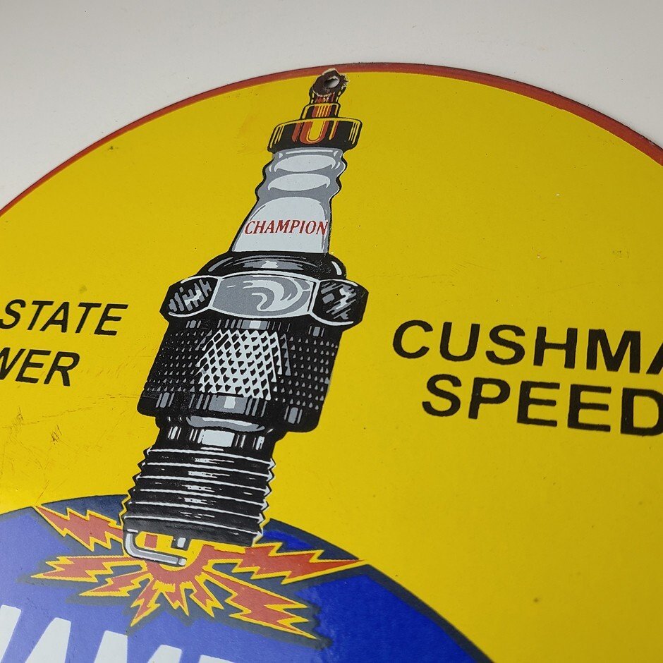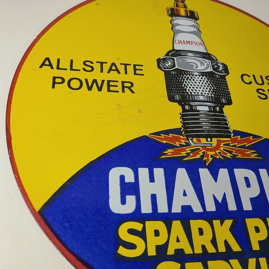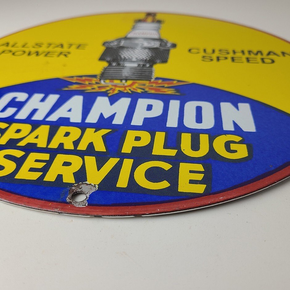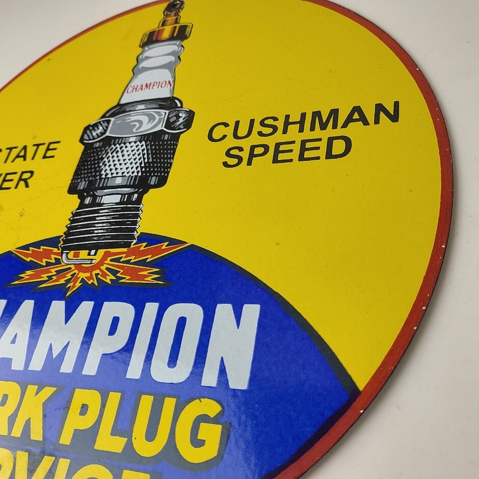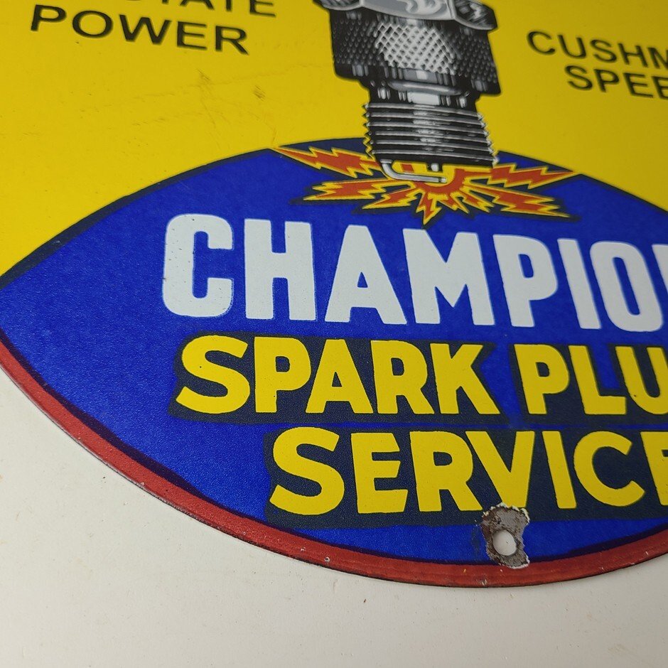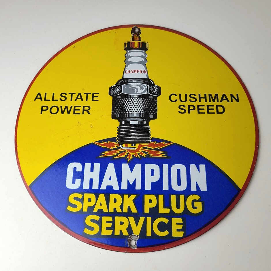 This vintage Spark Plug Service porcelain sign is a true gem for any collector of automotive, oil & gas memorabilia. Measuring 12″ and featuring a classic blue and yellow color scheme, this porcelain gas sign is a true must have item.