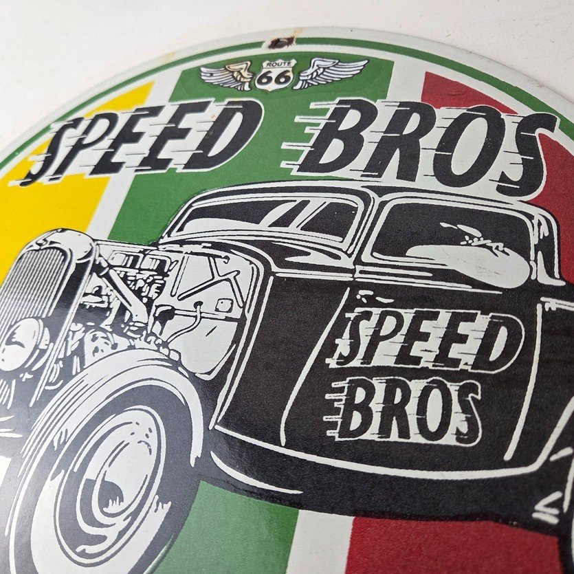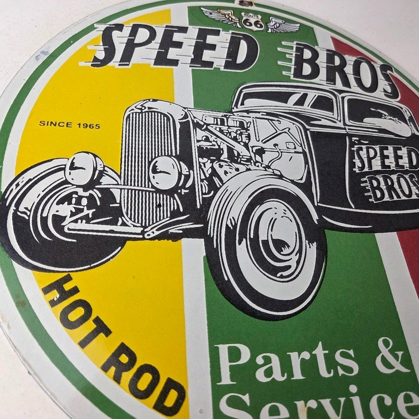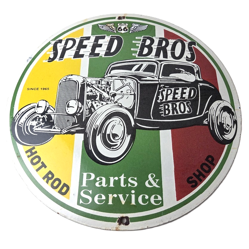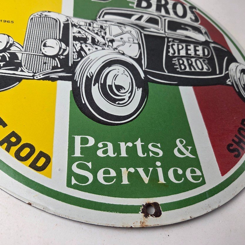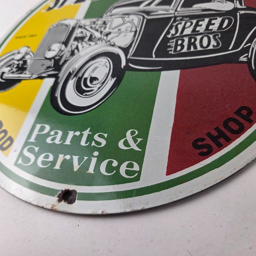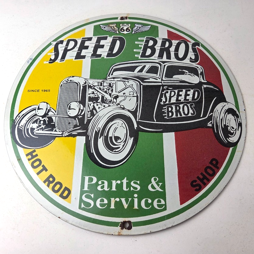 Vintage Speed Bros Hot Rod Parts & Service Porcelain Sign.