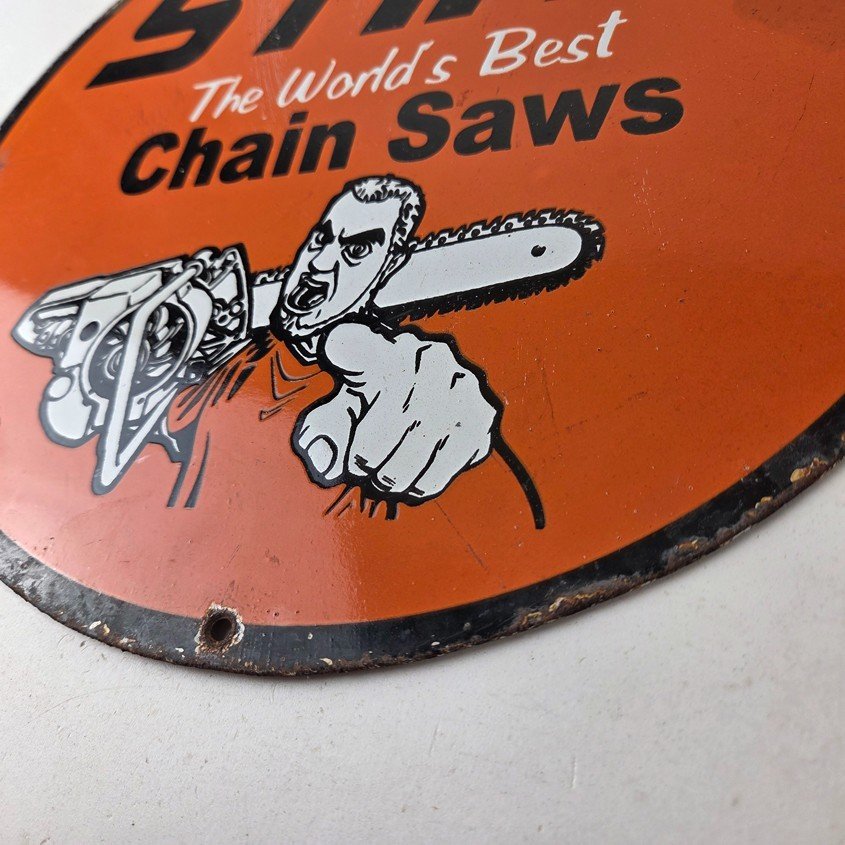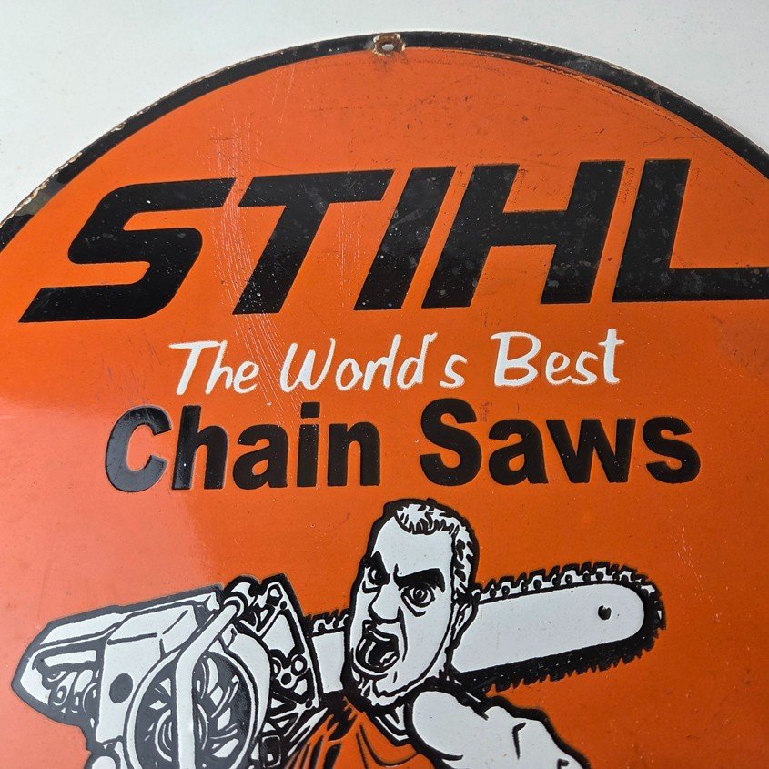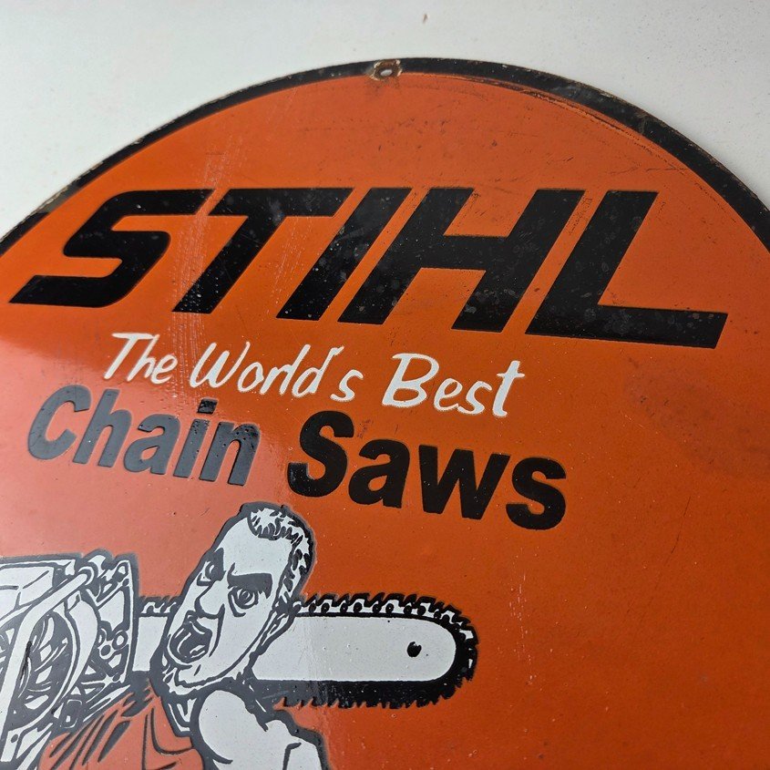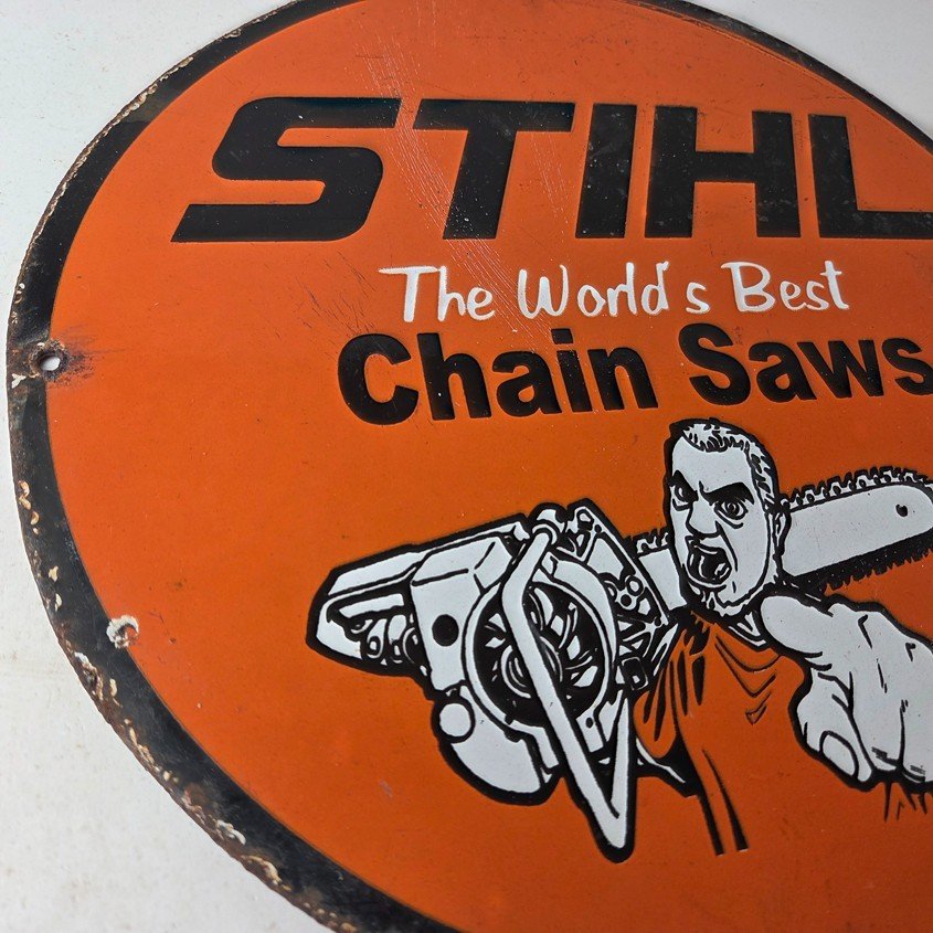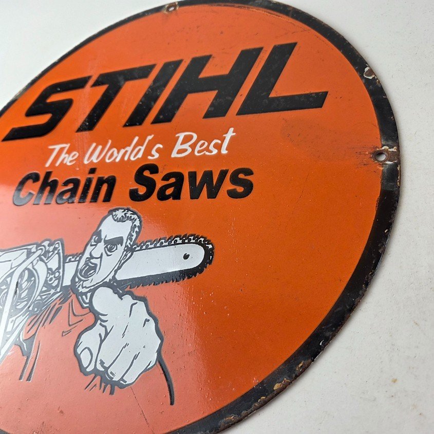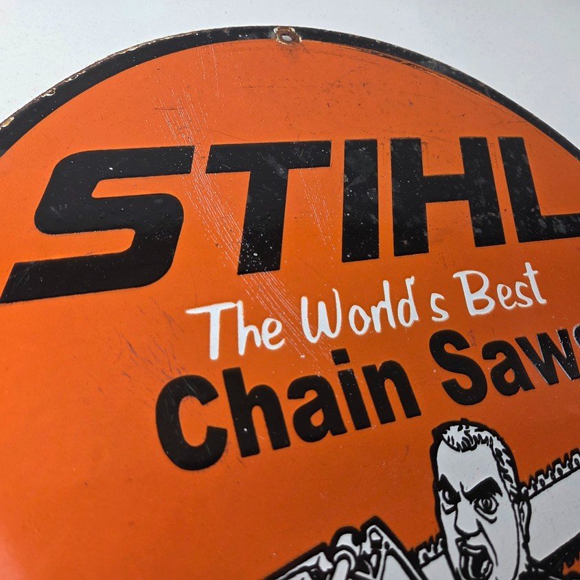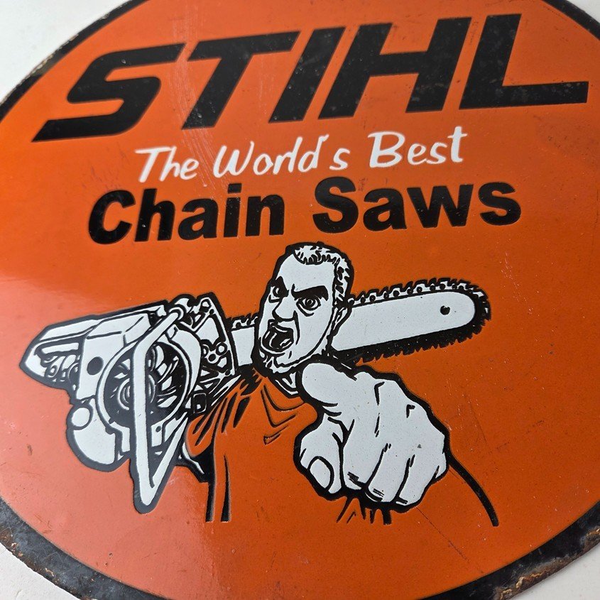 Vintage Stihl Chainsaw Sign – Porcelain Metal Store Display Advertising Gas Sign