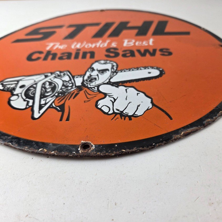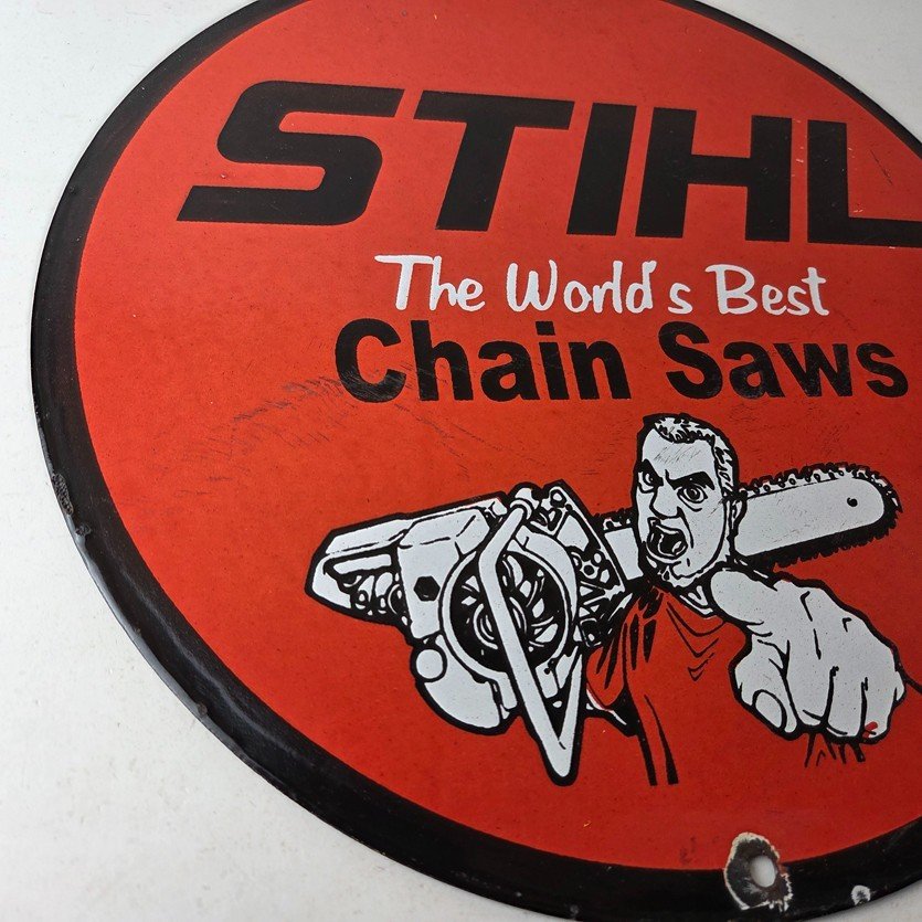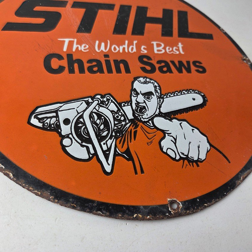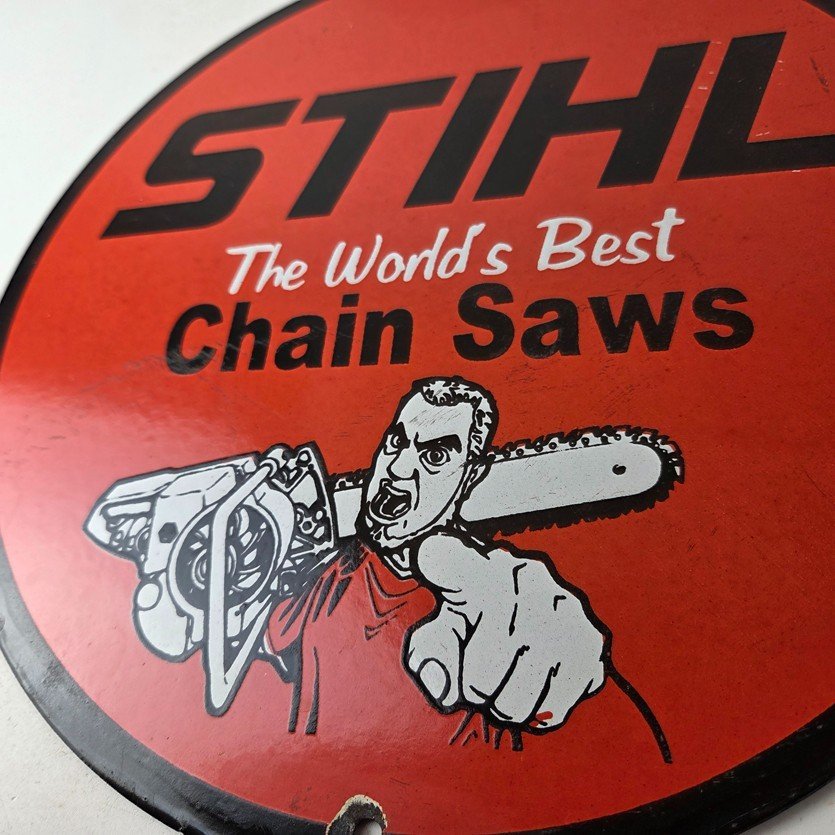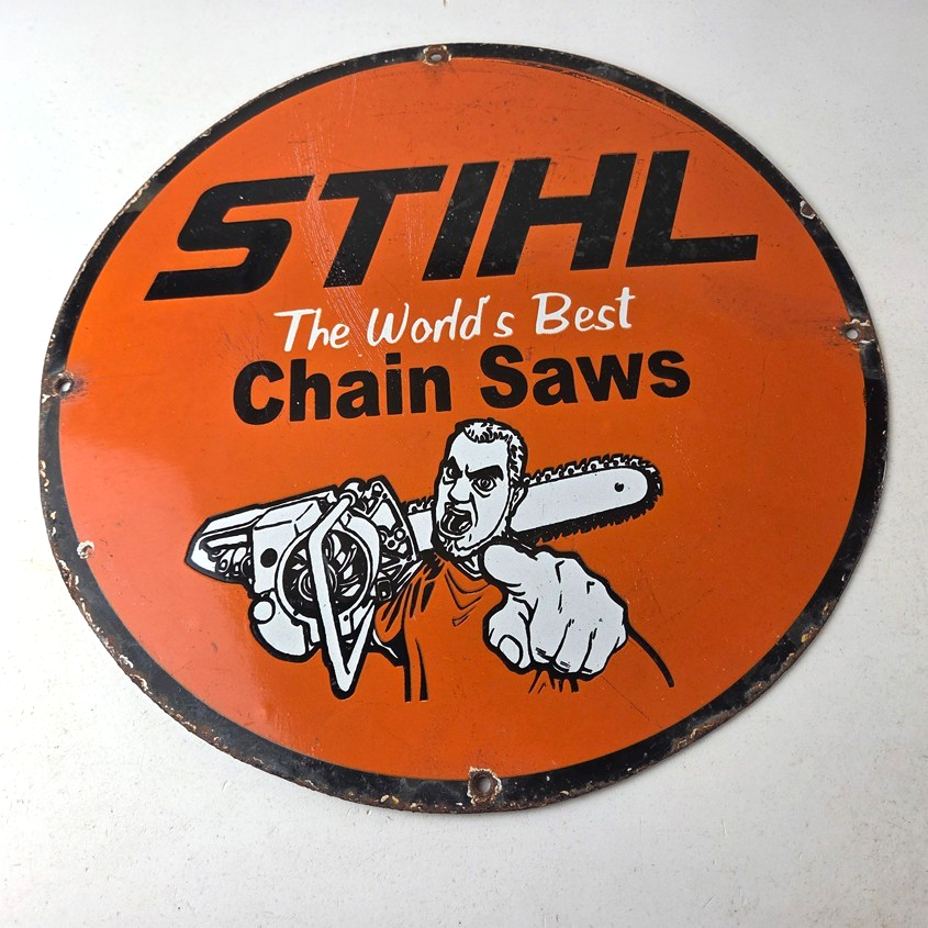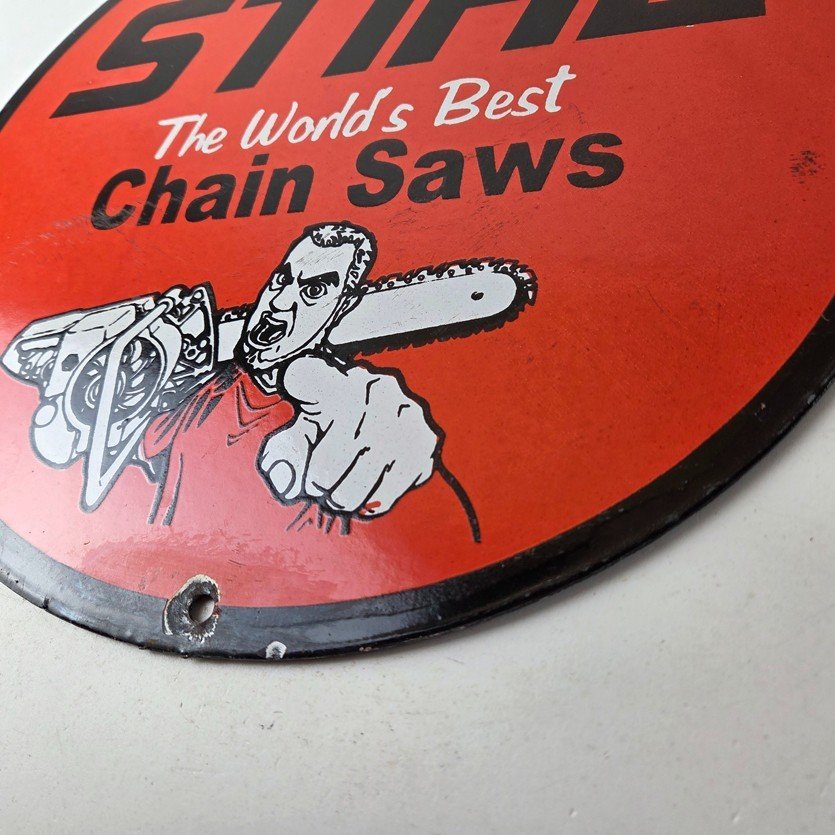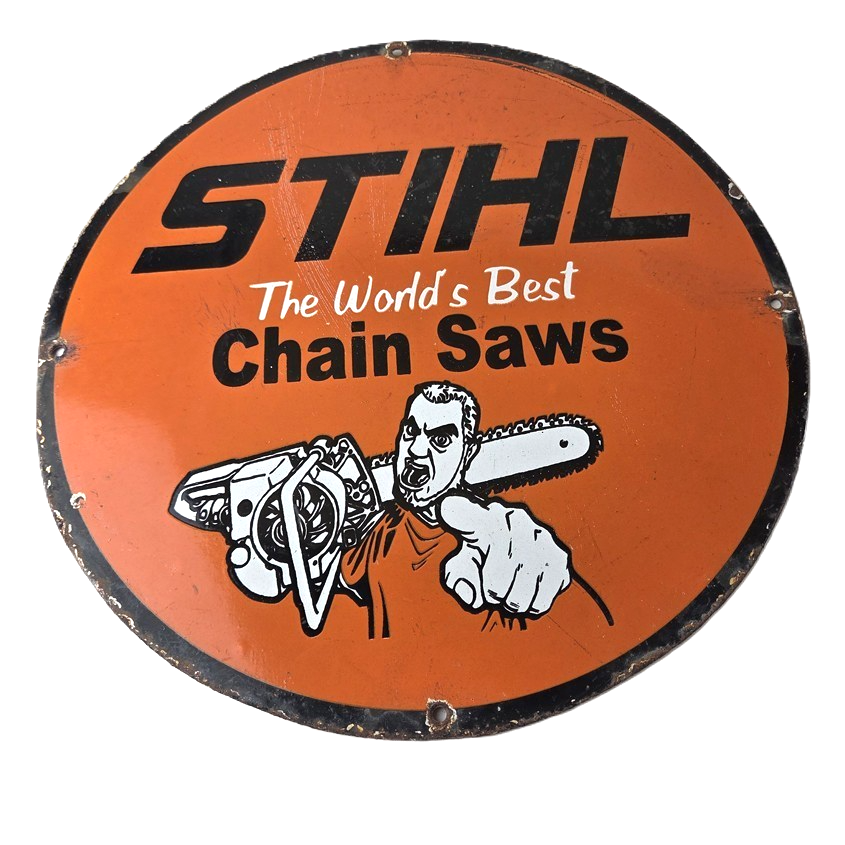 Vintage Stihl Chainsaw Sign – Porcelain Metal Store Display Advertising Gas Sign