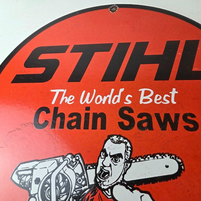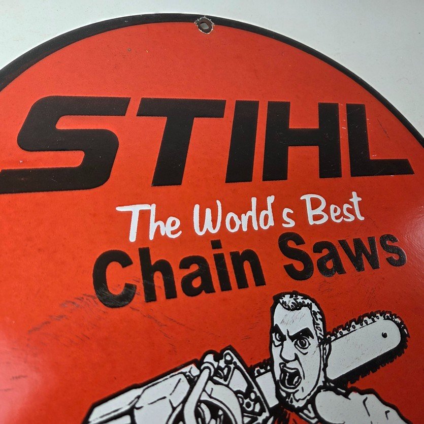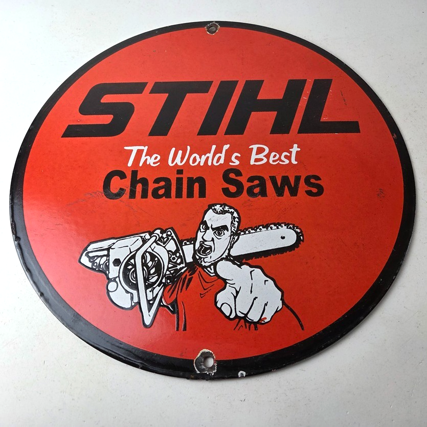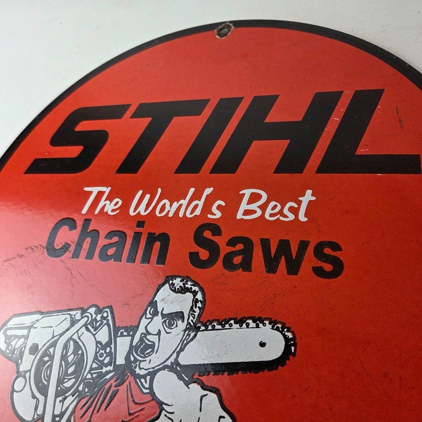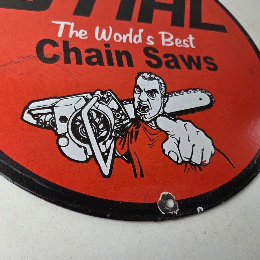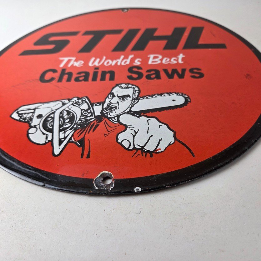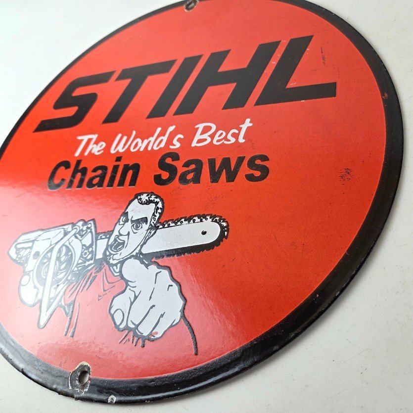 Vintage Stihl Chainsaw Sign – Porcelain Metal Store Display Advertising Gas Sign