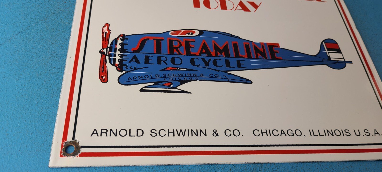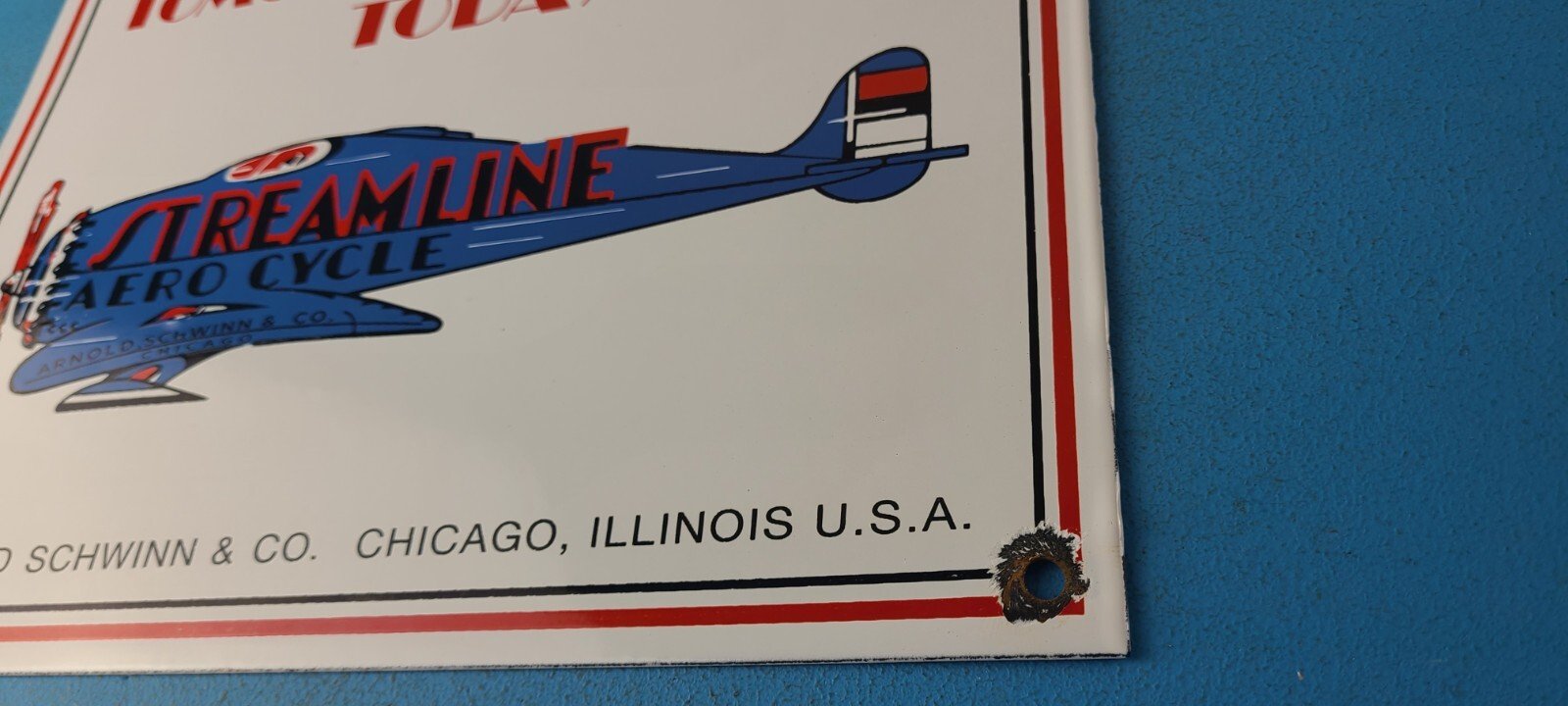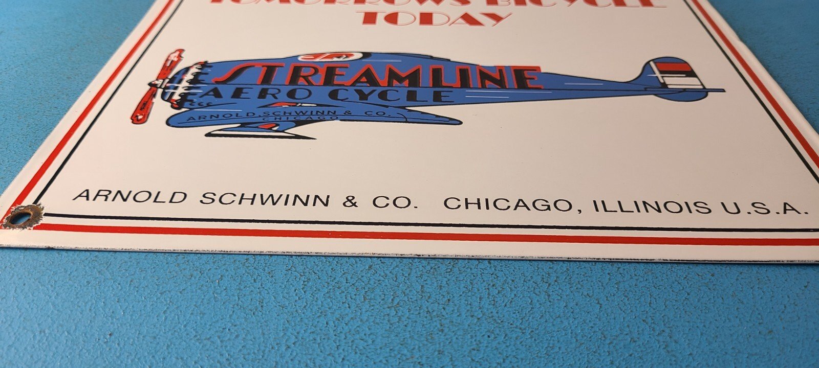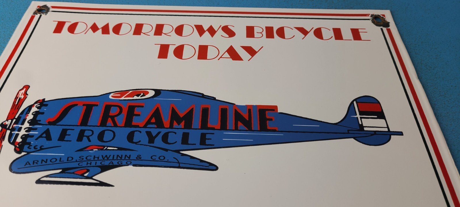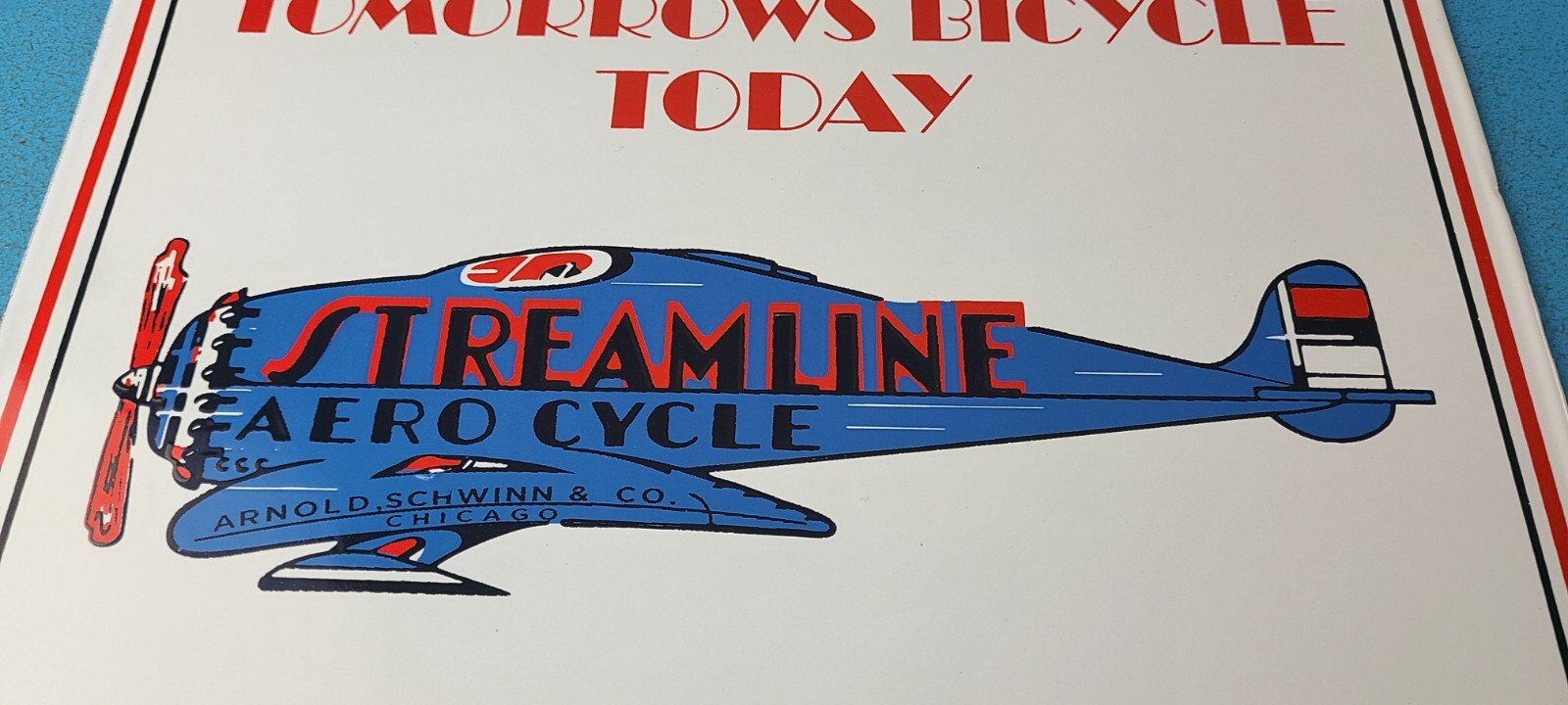 This vintage Streamline Aircraft Co. porcelain sign is a must-have for collectors and aviation & gasoline enthusiasts alike. With its eye-catching red and blue color and Streamline Aero brand, it’s a perfect addition to any collection. Measuring 12″ x 9″, this porcelain sign has excellent lettering with the Streamline graphic in the center.