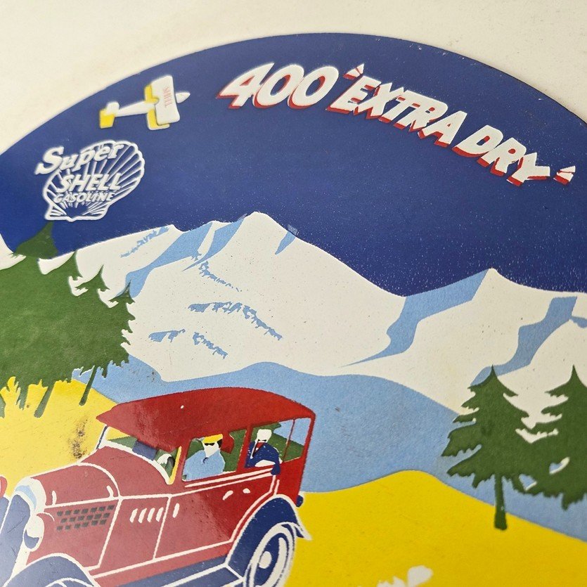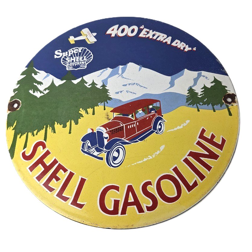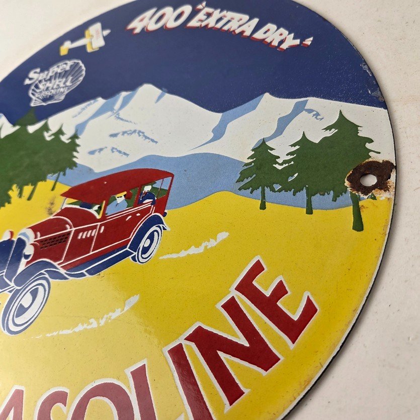 Vintage Super Shell Gasoline Sign – 400 Extra Dry Shell Car Pump Porcelain Sign