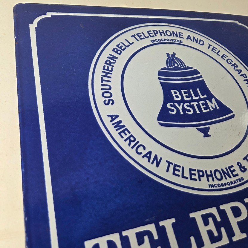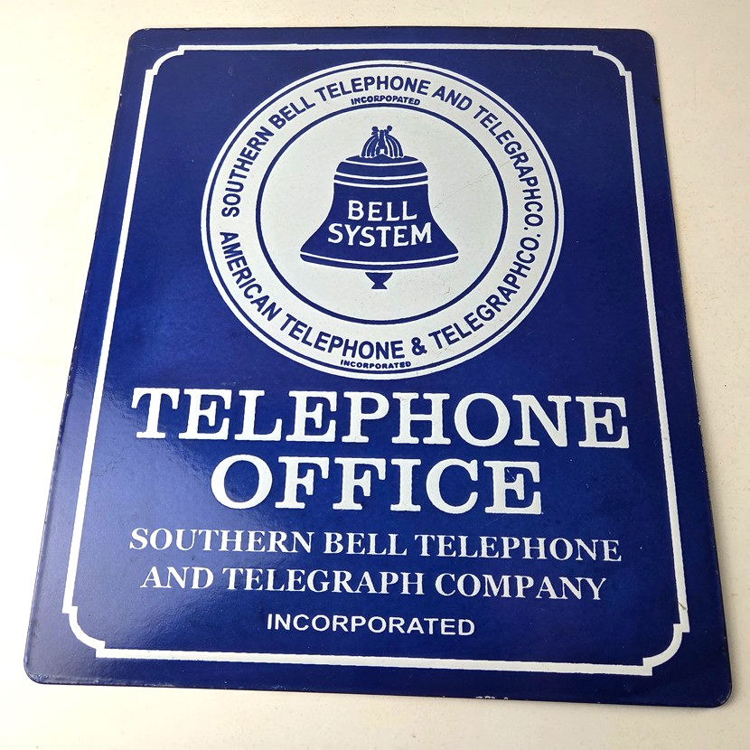 Vintage Southern Bell Telephone Porcelain Sign.