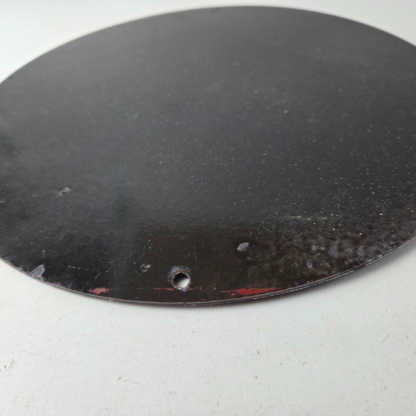 This vintage Texaco Gasoline porcelain sign features a striking design with bold colors and is made of porcelain material. It is perfect for display in a garage, shop, or man cave. The sign measures 12″ and is in excellent condition, with no major chips or cracks.