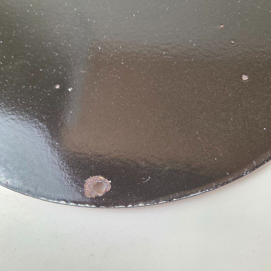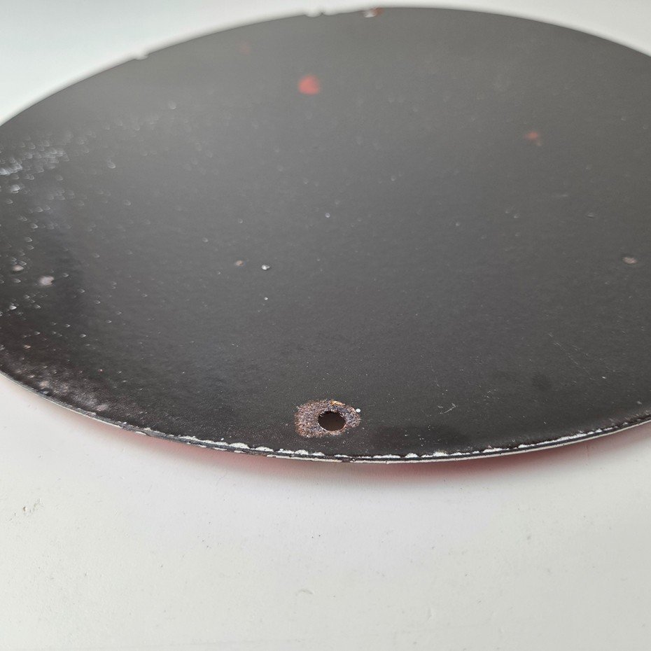 This vintage Texaco Gasoline porcelain sign features a striking design with bold colors and is made of porcelain material. It is perfect for display in a garage, shop, or man cave. The sign measures 12″ and is in excellent condition, with no major chips or cracks.