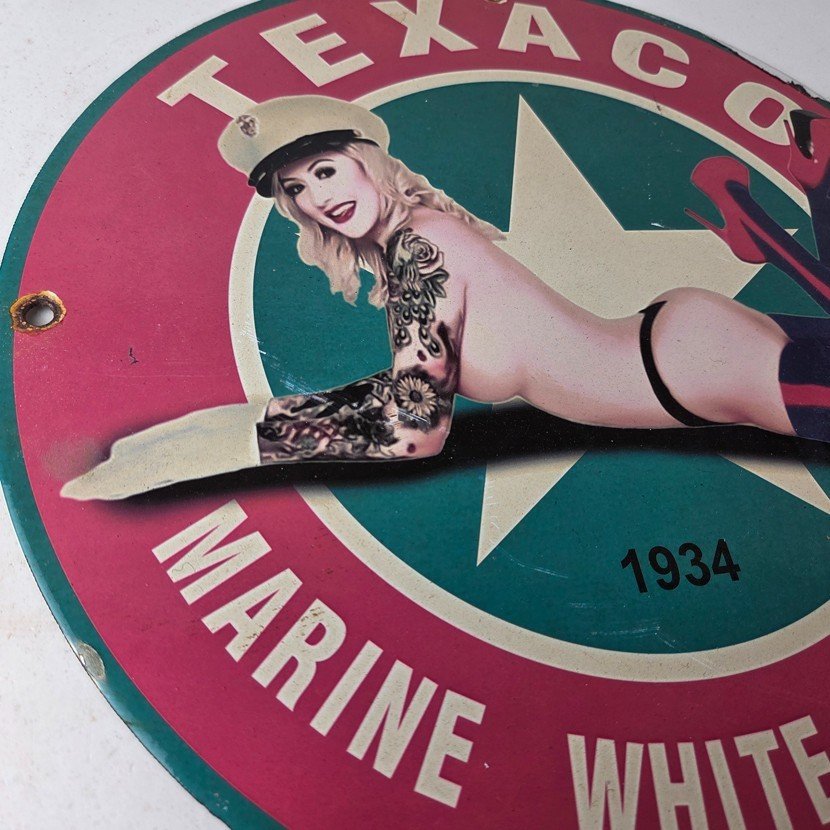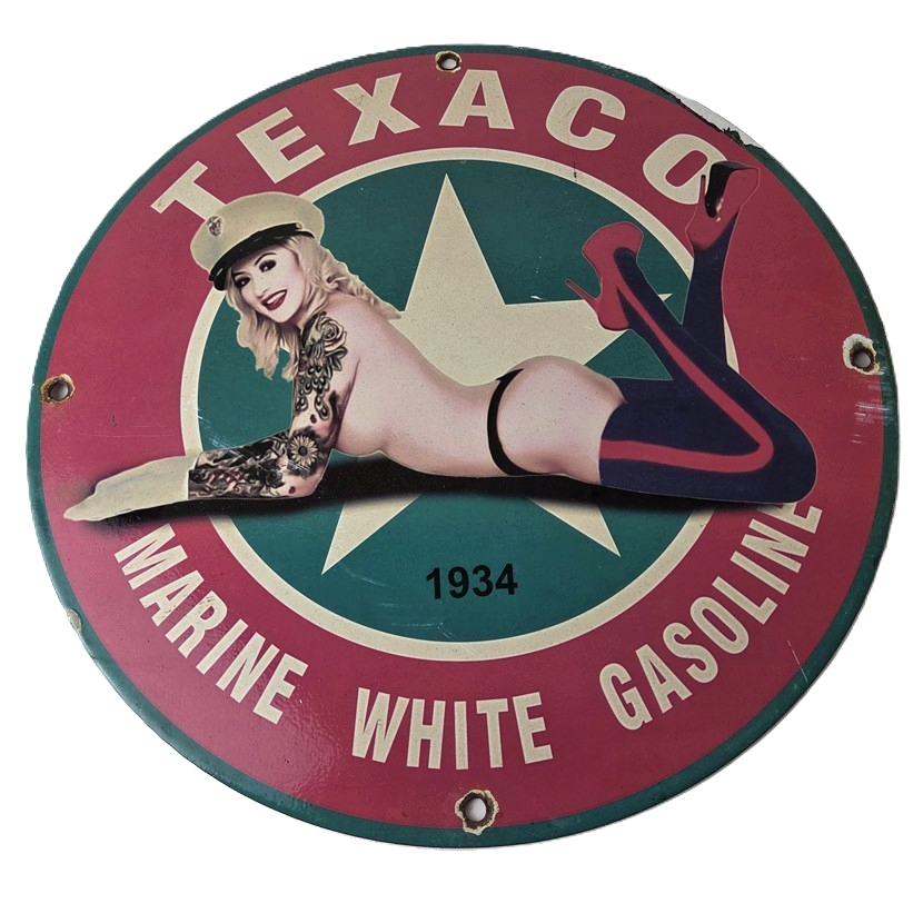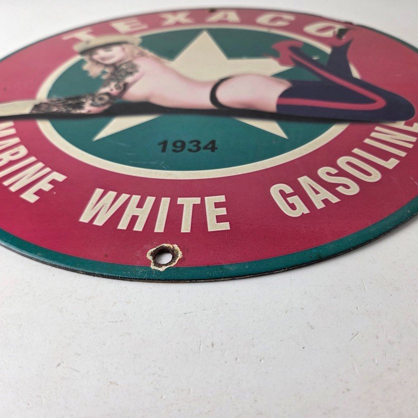 Vintage Texaco Gasoline Sign – White Marine Gas Pump Porcelain Sign
