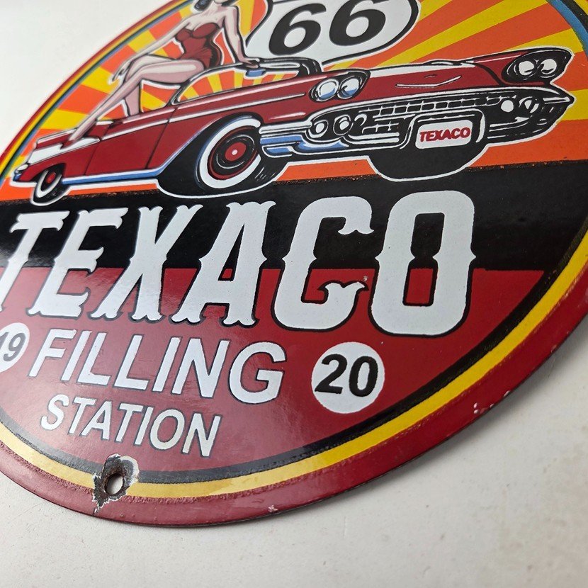 Vintage Texaco Route 66 Pin Up Porcelain Sign – Chevy Gas Station Sign