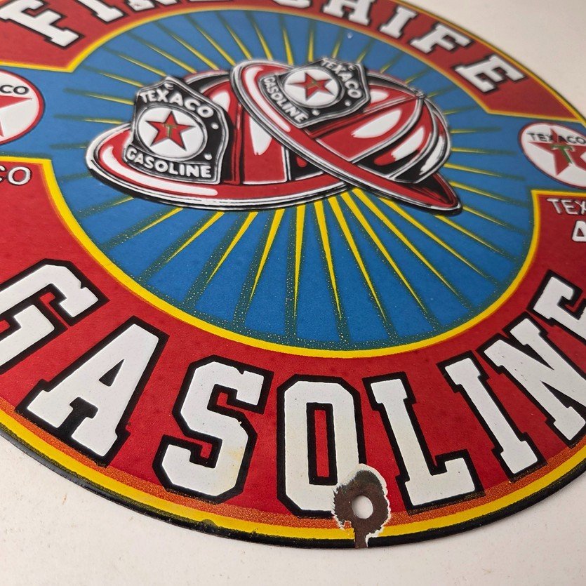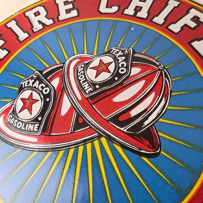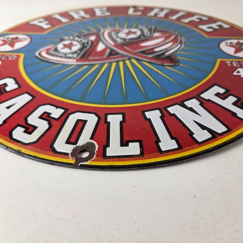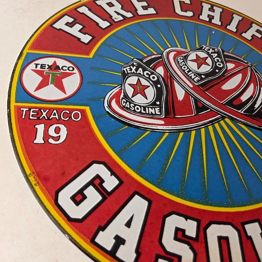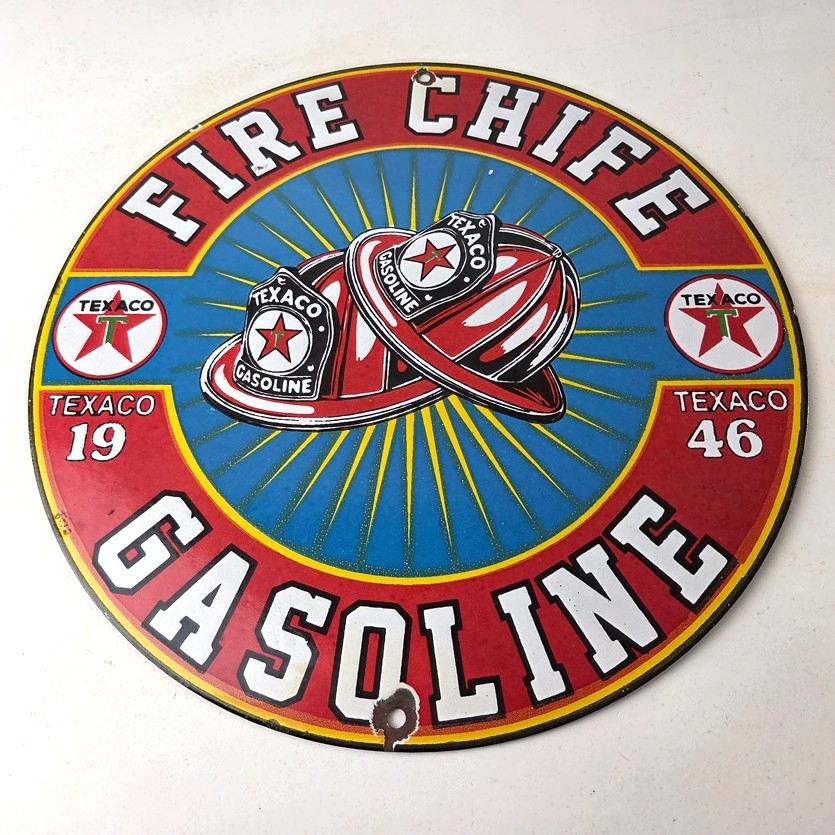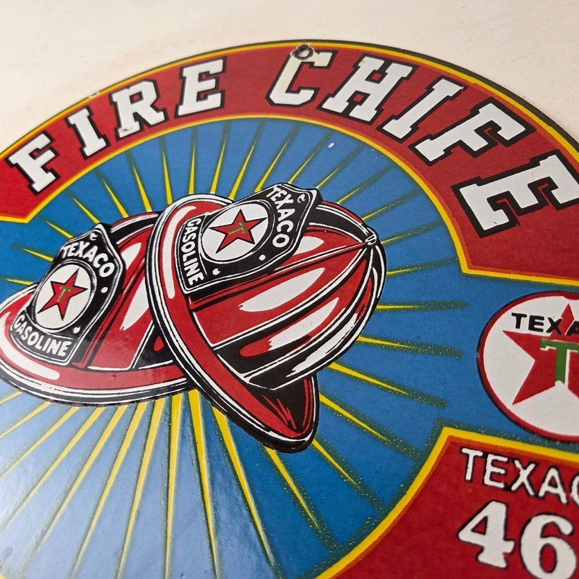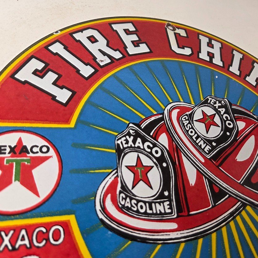 Vintage Texaco Sign – Fire Chief Gasoline Service Gas Pump Porcelain Ad Sign
