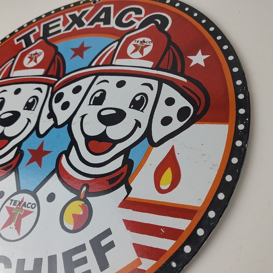 Vintage Texaco Sign – Fire Station Dalmatian Dogs Porcelain Gas Pump Sign