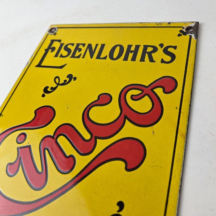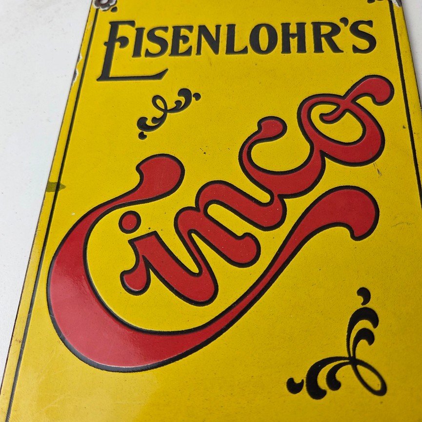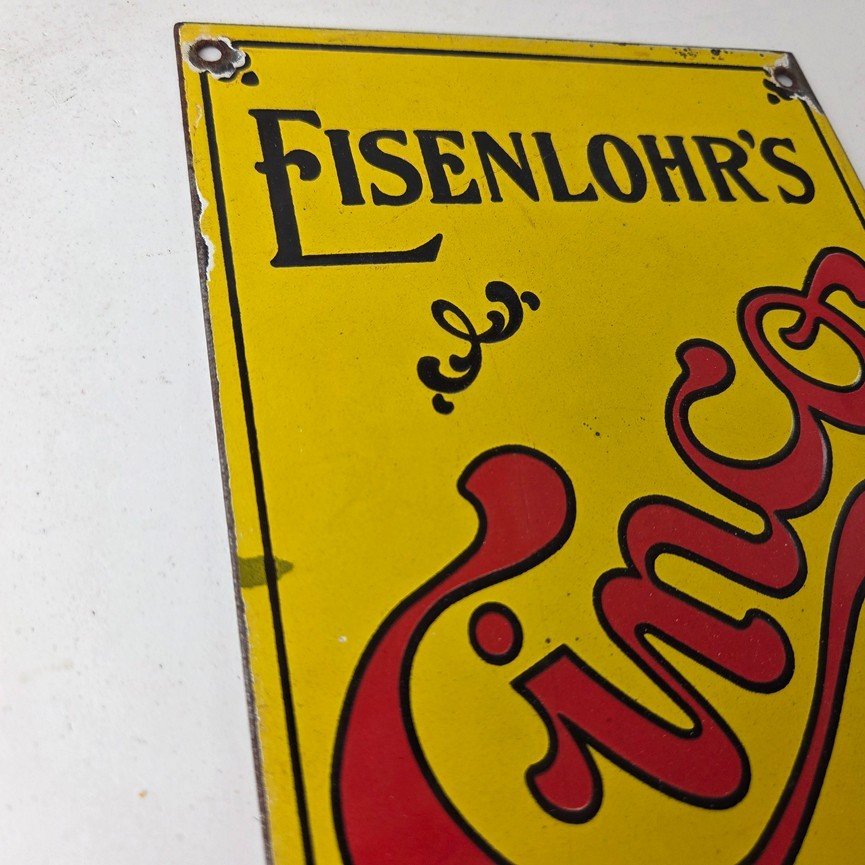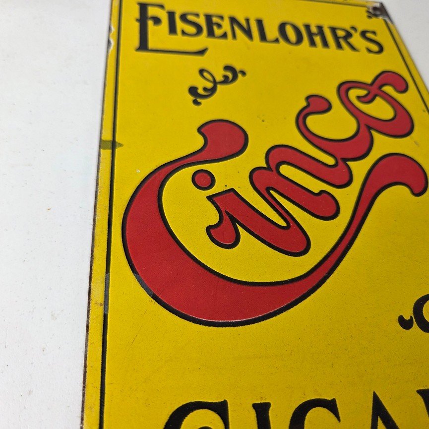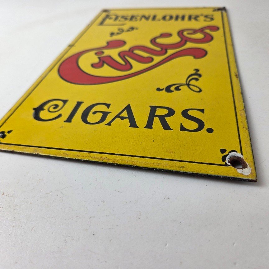 For sale is a vintage Cinco Cigar Porcelain Sign featuring the large red Cinco lettering. This unique piece is 10″ x 6″ are suitable for those who collect porcelain tobacco signs.