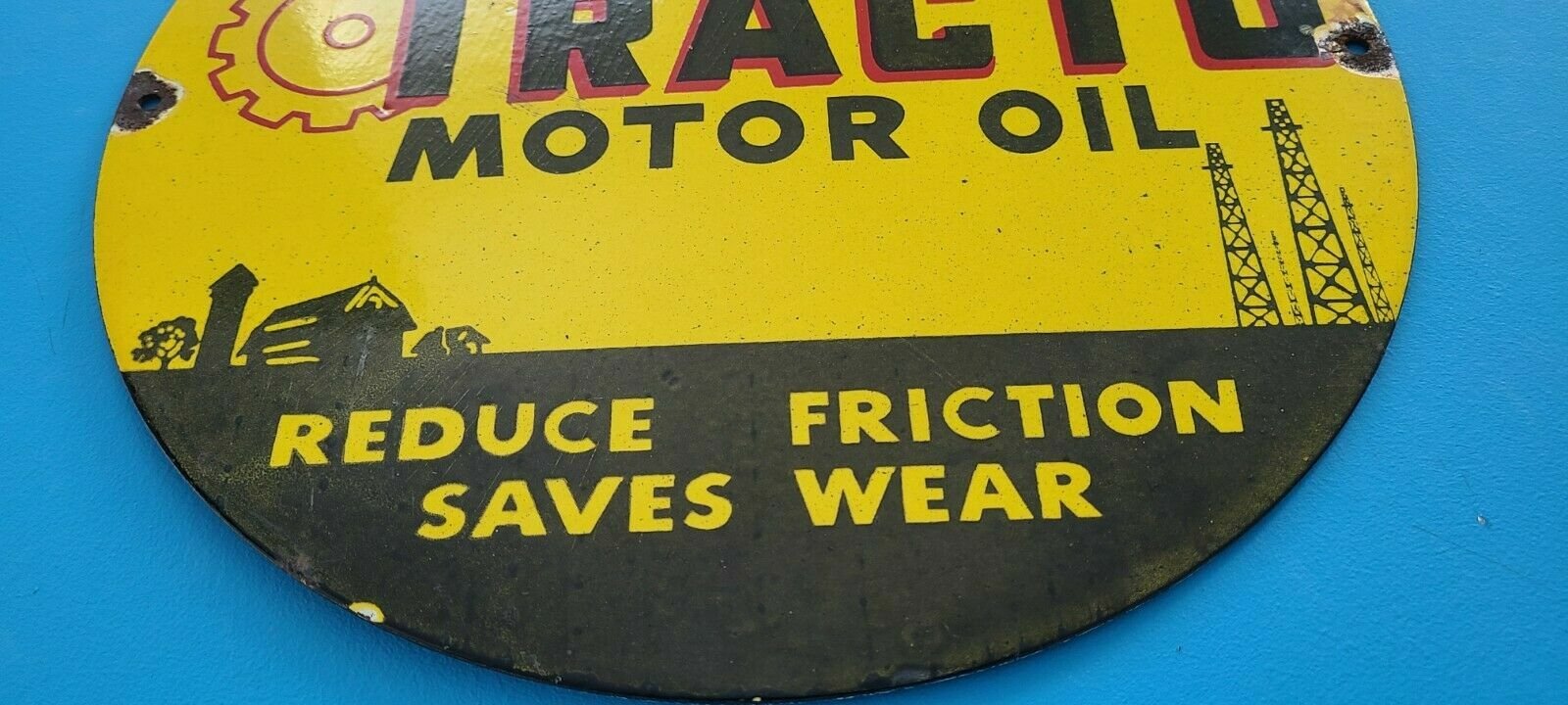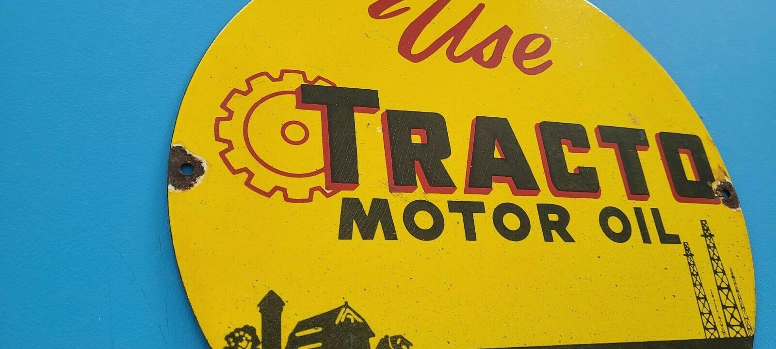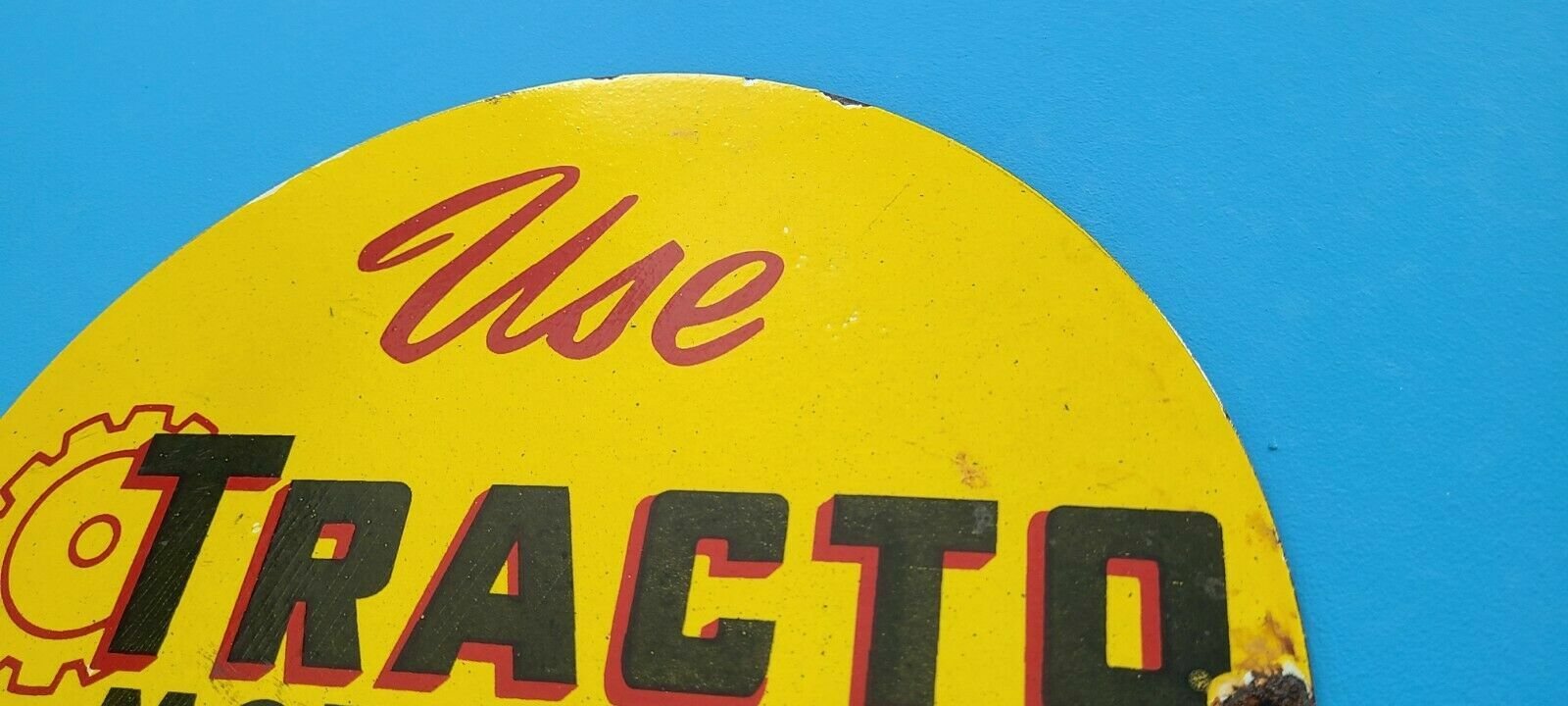 For sale is a vintage Tracto Motor Oil porcelain, gas tractors & oil sign. Please view the pictures as they are part of the description (a picture is worth a thousand words)! I try my best to take pictures of all the angles of this sign. This sign has excellent colors and gloss. Sign measures 12“. Check out my other auctions, and feel free to ask questions. Perfect for gas collectors, automobile enthusiasts, sign collection, man cave, restaurant, bar, garage, displays anywhere. See my other gas & motor oil, aviation, automotive, soda & beverage signs. $10 for shipping anywhere in the U.S. with Priority Mail. Shipping will be $5.00 for each additional item! Thank you!