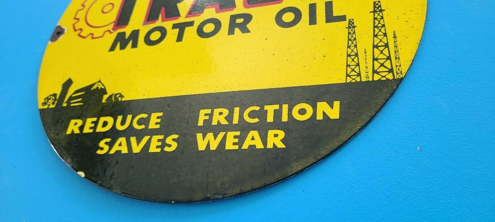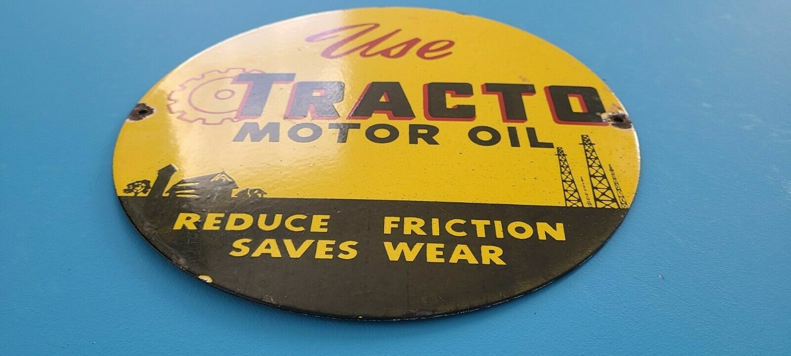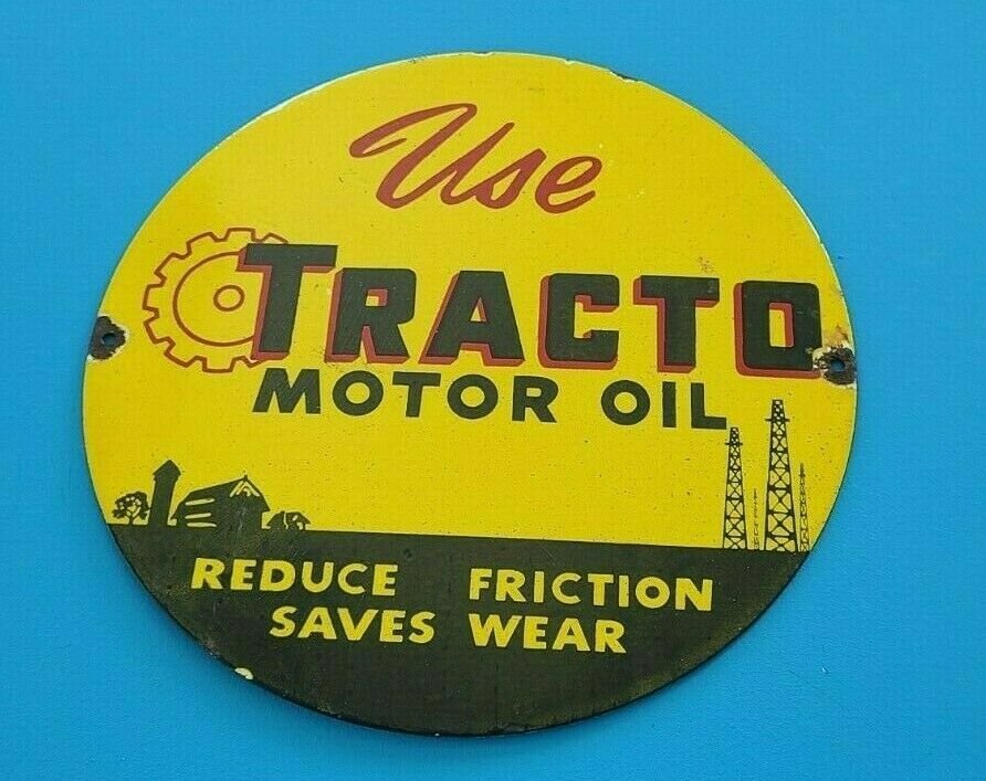 For sale is a vintage Tracto Motor Oil porcelain, gas tractors & oil sign. Please view the pictures as they are part of the description (a picture is worth a thousand words)! I try my best to take pictures of all the angles of this sign. This sign has excellent colors and gloss. Sign measures 12“. Check out my other auctions, and feel free to ask questions. Perfect for gas collectors, automobile enthusiasts, sign collection, man cave, restaurant, bar, garage, displays anywhere. See my other gas & motor oil, aviation, automotive, soda & beverage signs. $10 for shipping anywhere in the U.S. with Priority Mail. Shipping will be $5.00 for each additional item! Thank you!