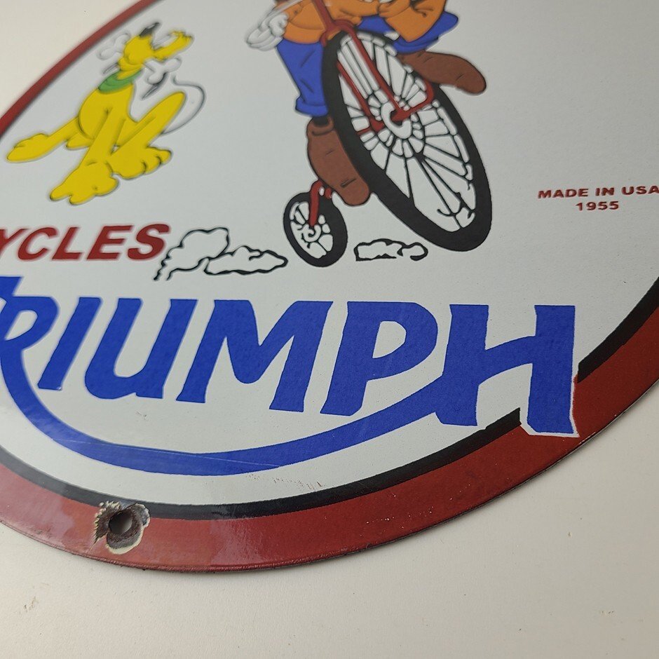 Vintage Triumph Motorcycles Sign – Gas Pump Garage Porcelain Goofy Sign