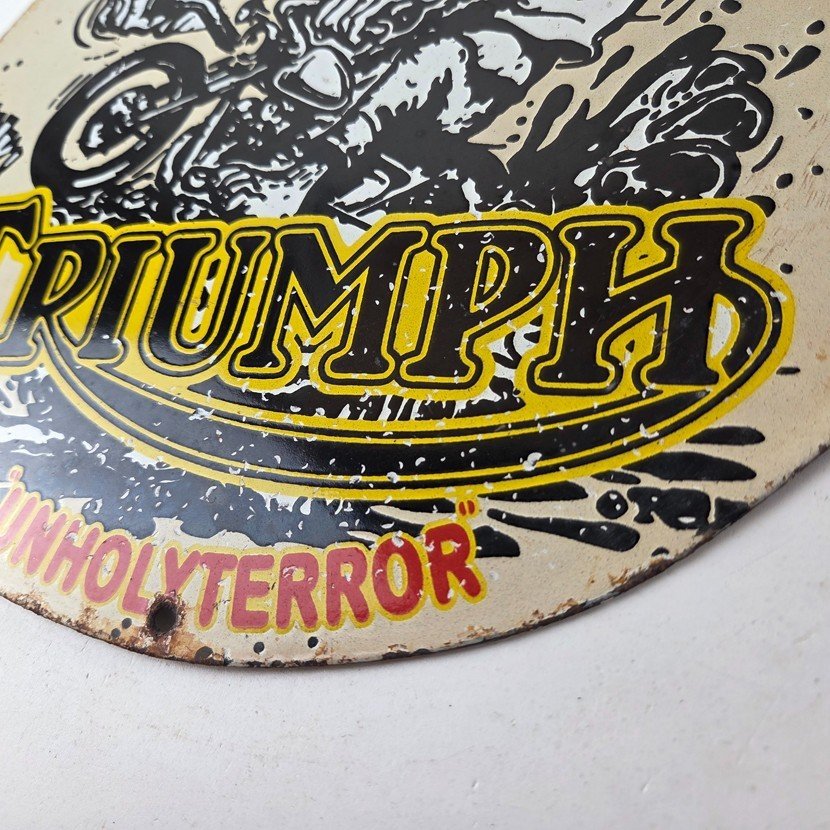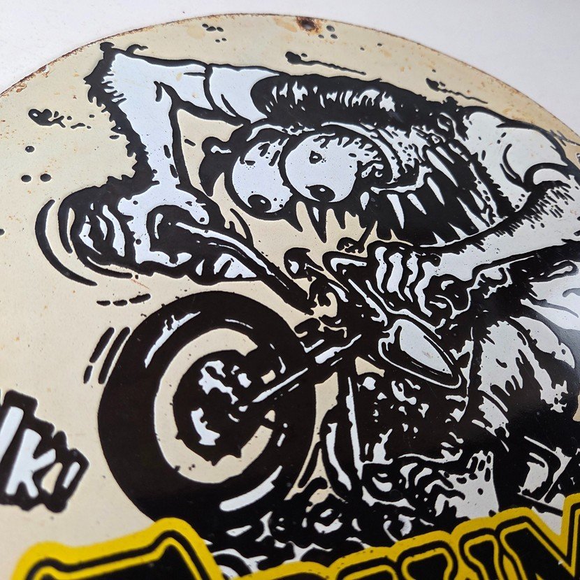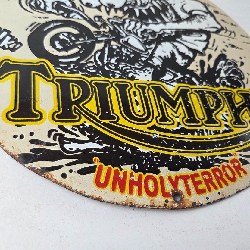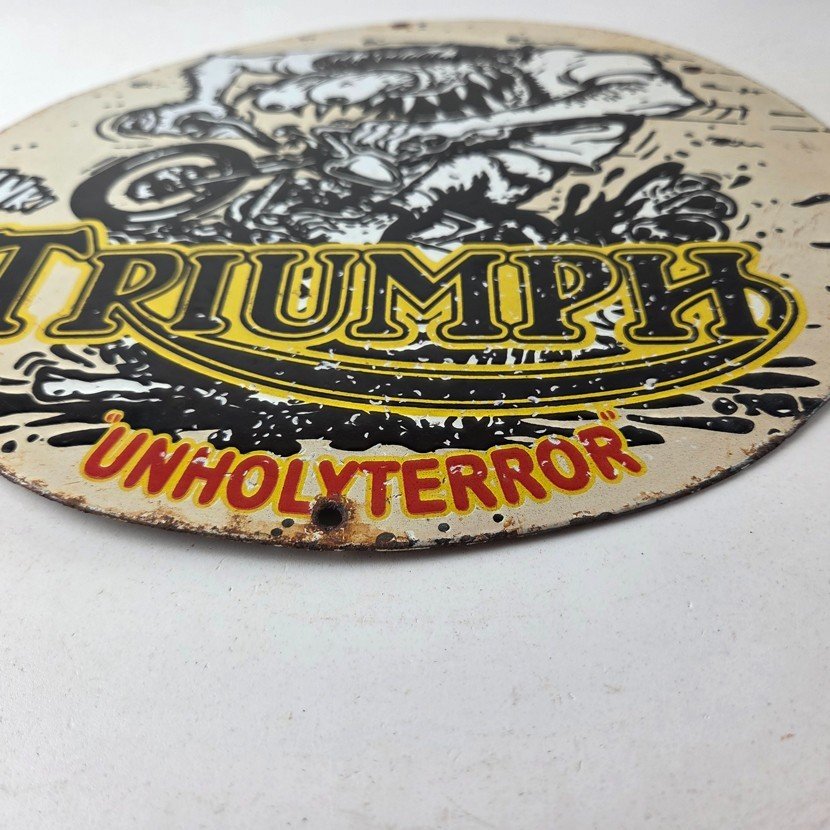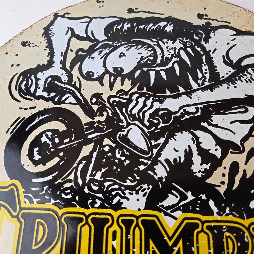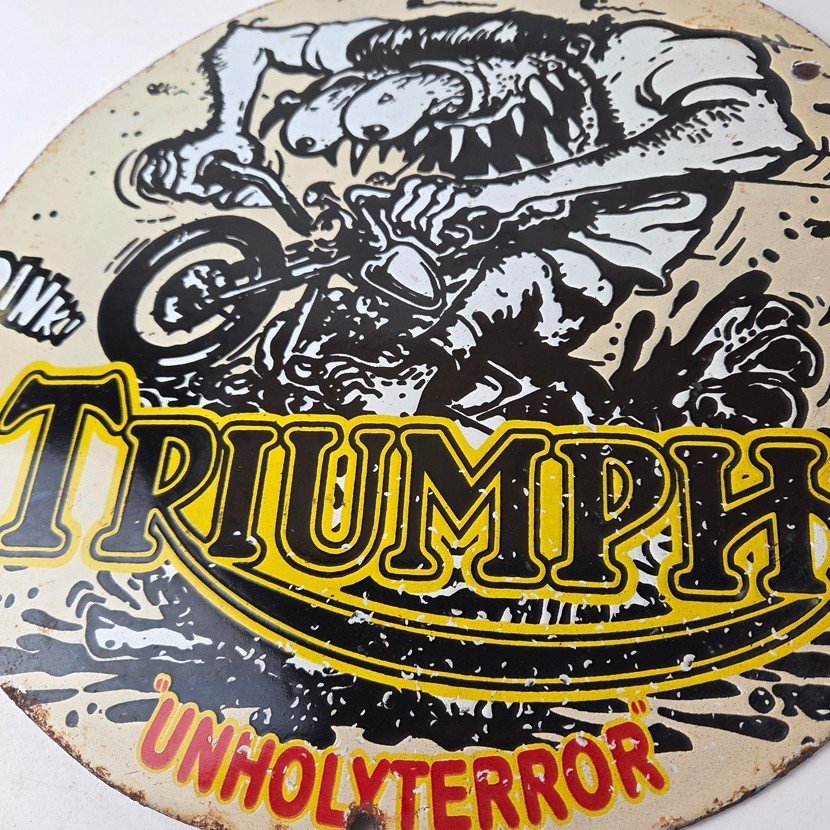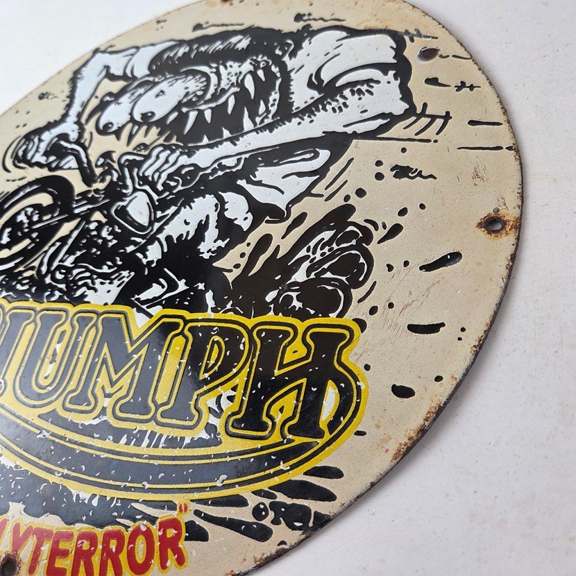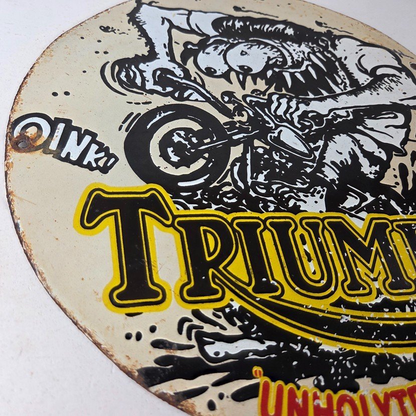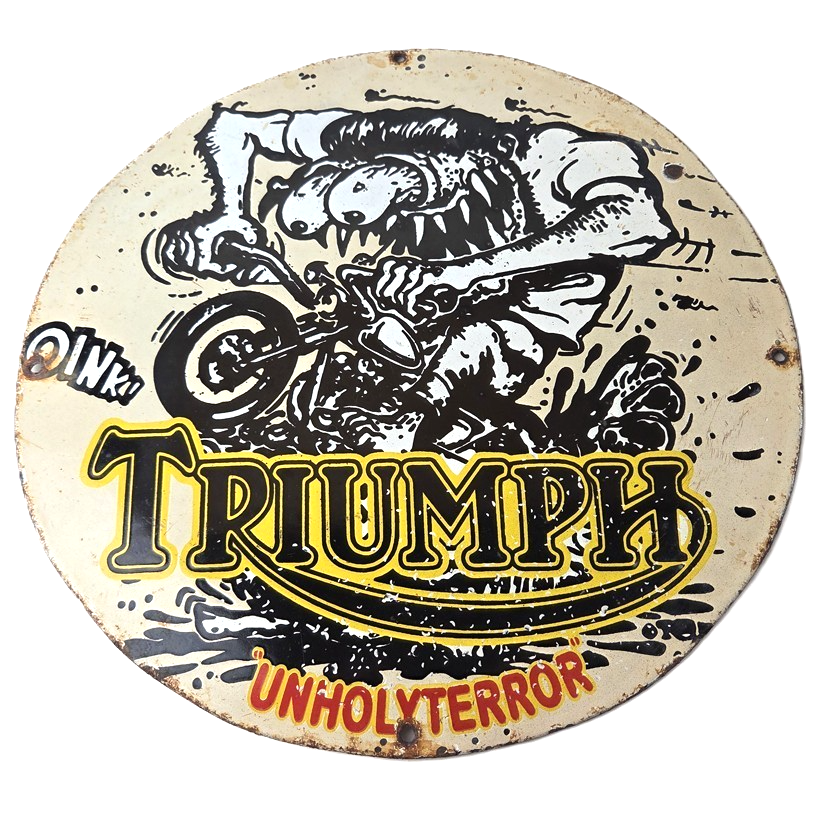 Vintage Triumph Rat Fink Unholy Terror Porcelain Sign – Monster Bike Sign