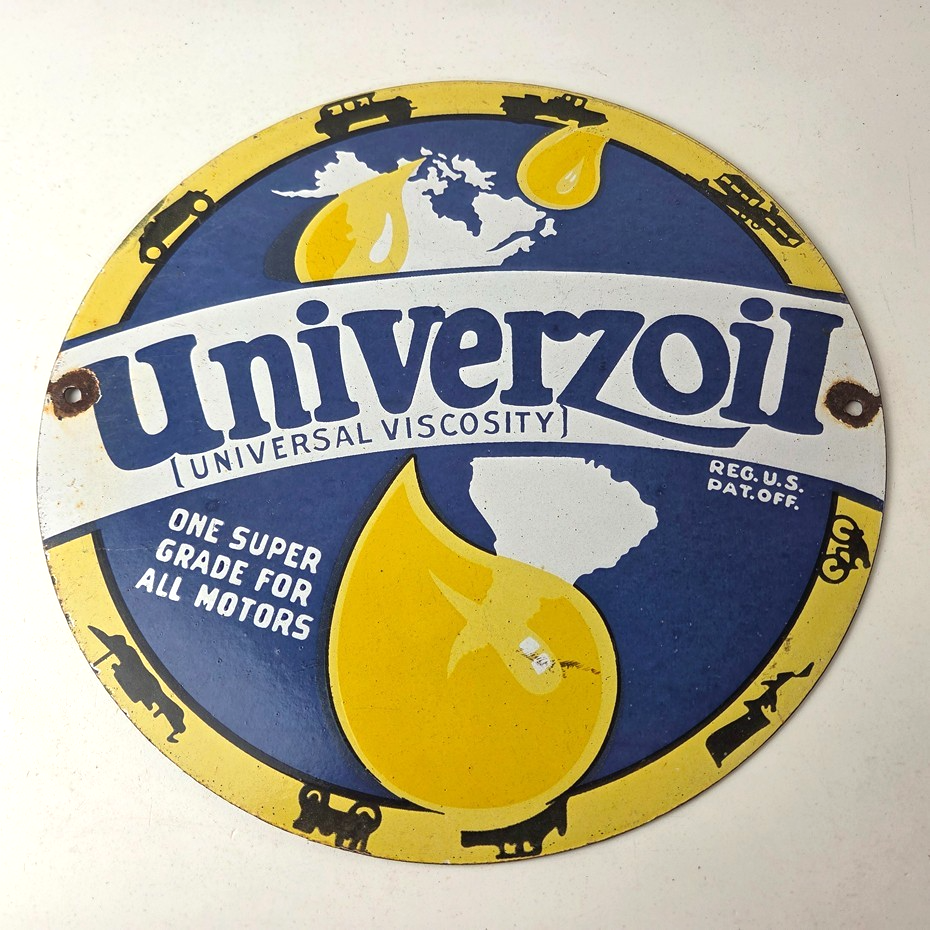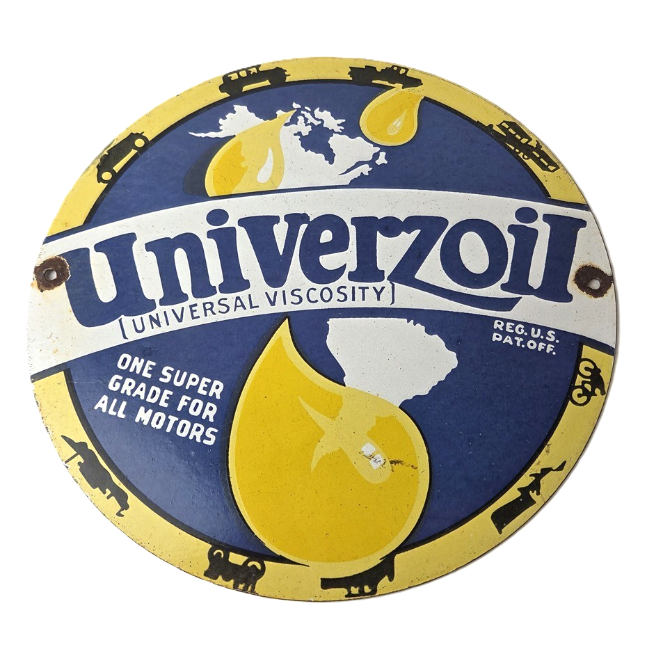 Vintage Univerzoil Gasoline Porcelain Sign.