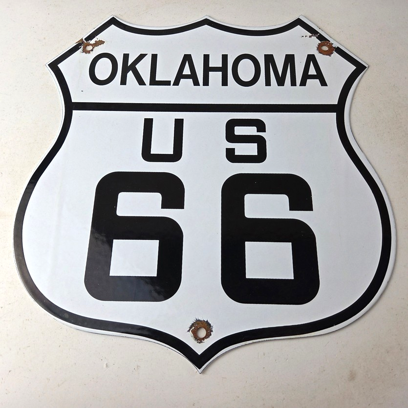 - Vintage Route 66 porcelain sign.