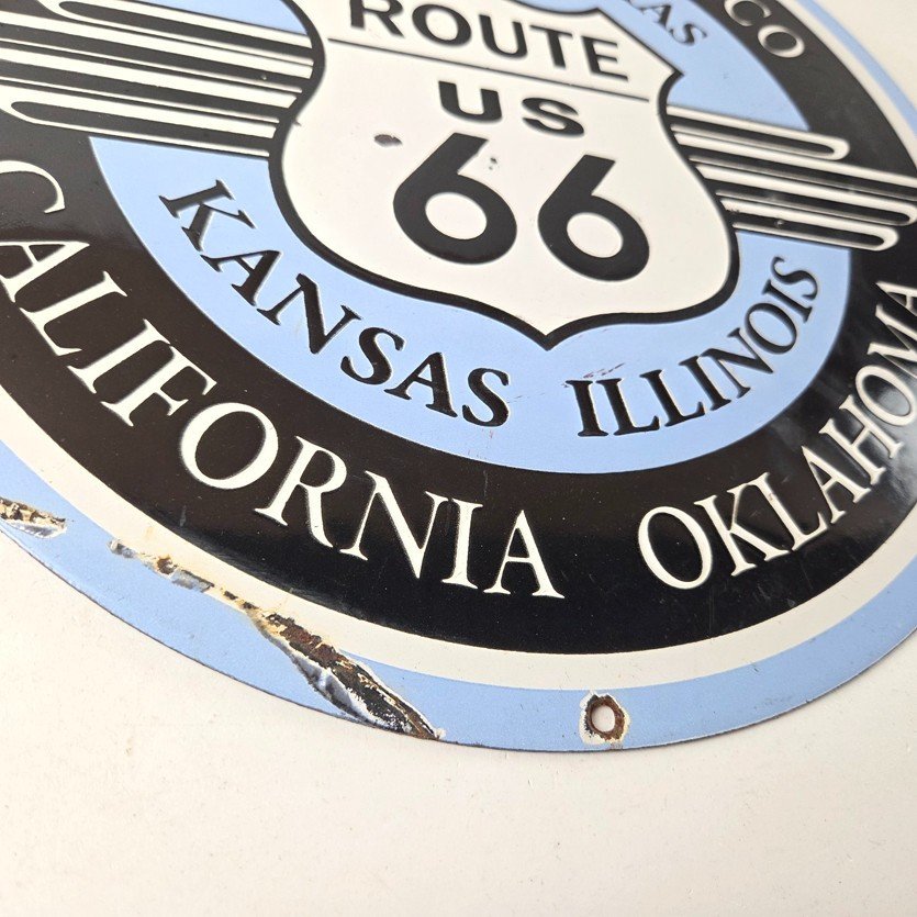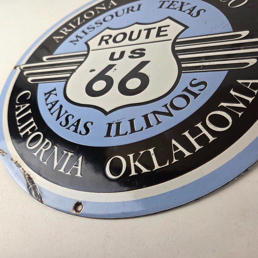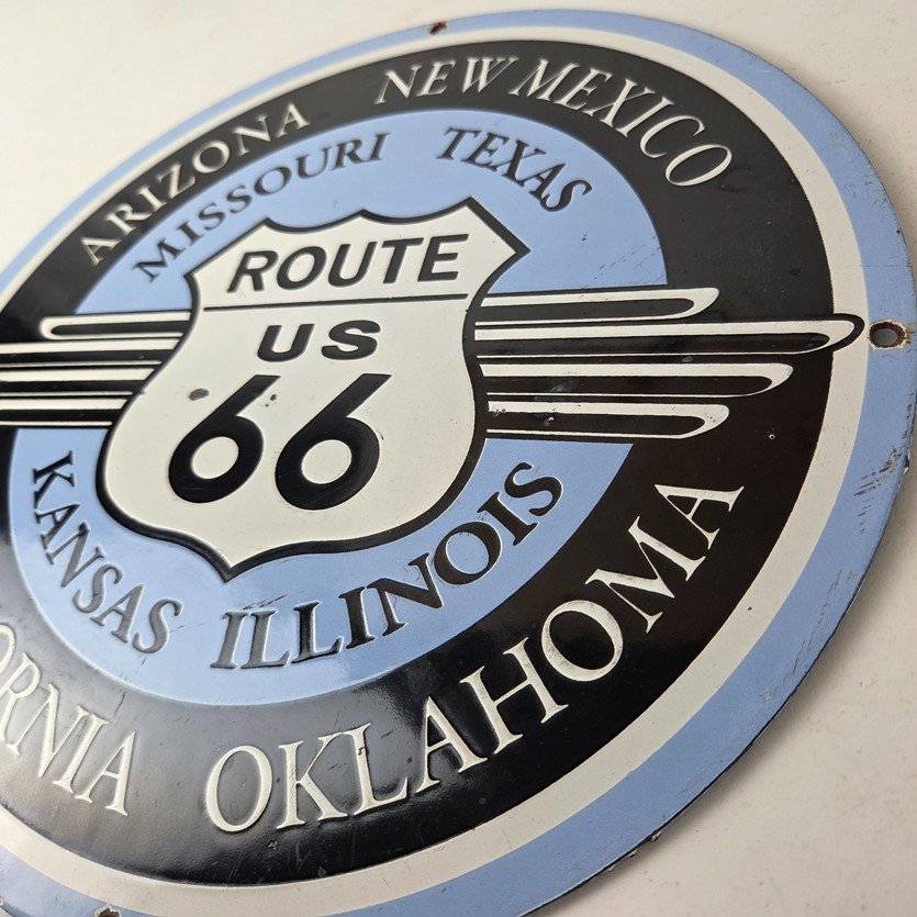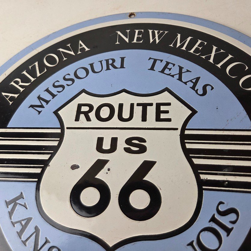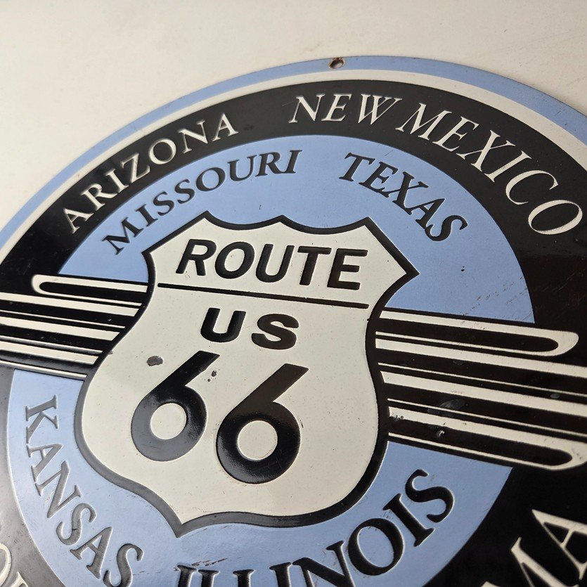 This vintage U.S. Route 66 sign is a classic piece of Americana that will transport you back to a simpler time. The 12″ porcelain sign features the iconic highway shield and is perfect for any collector of gas and oil memorabilia. This sign will enhance your retro man cave, gasoline collection, shop, bar, or garage. It is your chance to own a piece of the Mother Road.