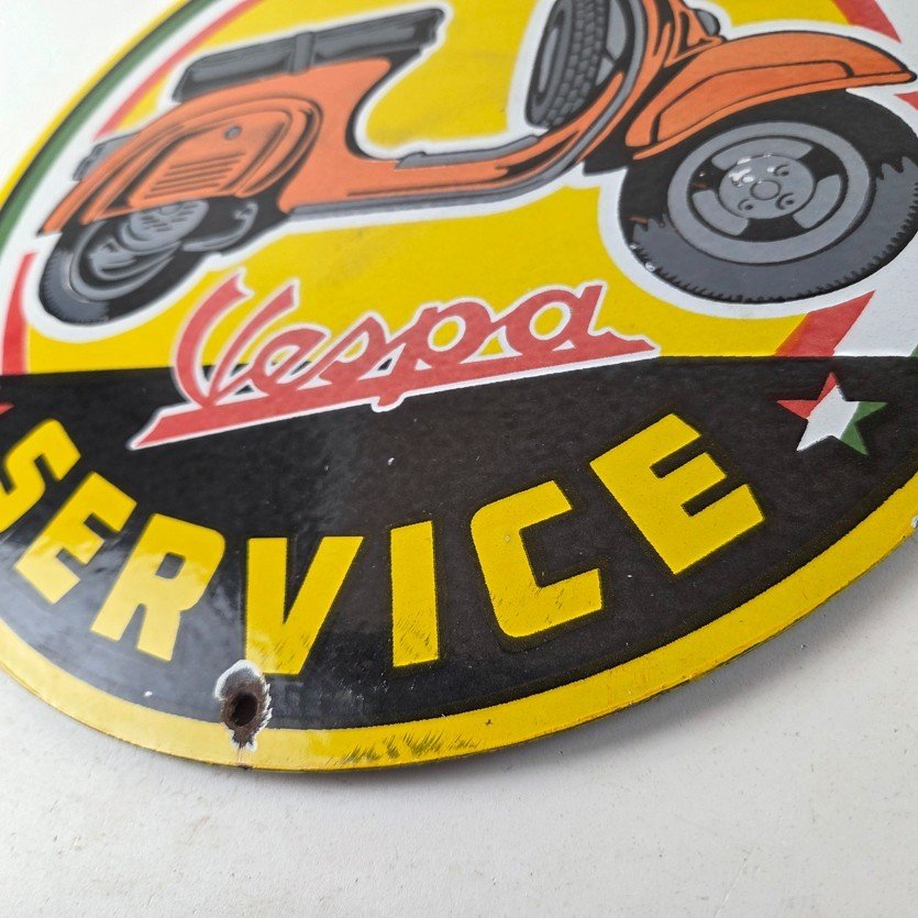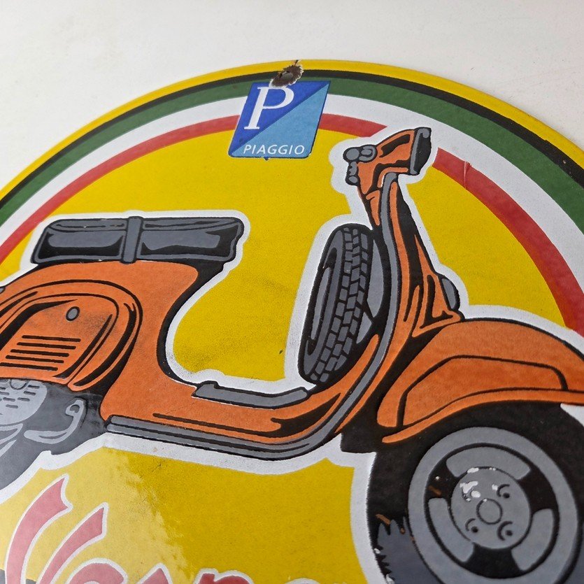 This sign will enhance your mancave, collection, shop, or garage. It is your chance to own a piece of Vespa advertising.