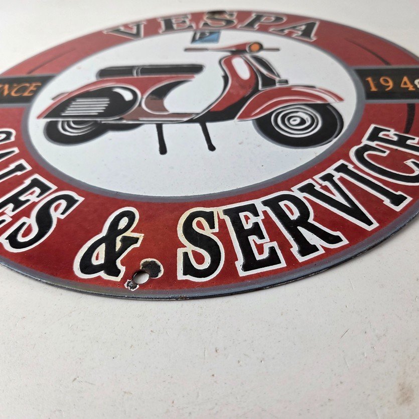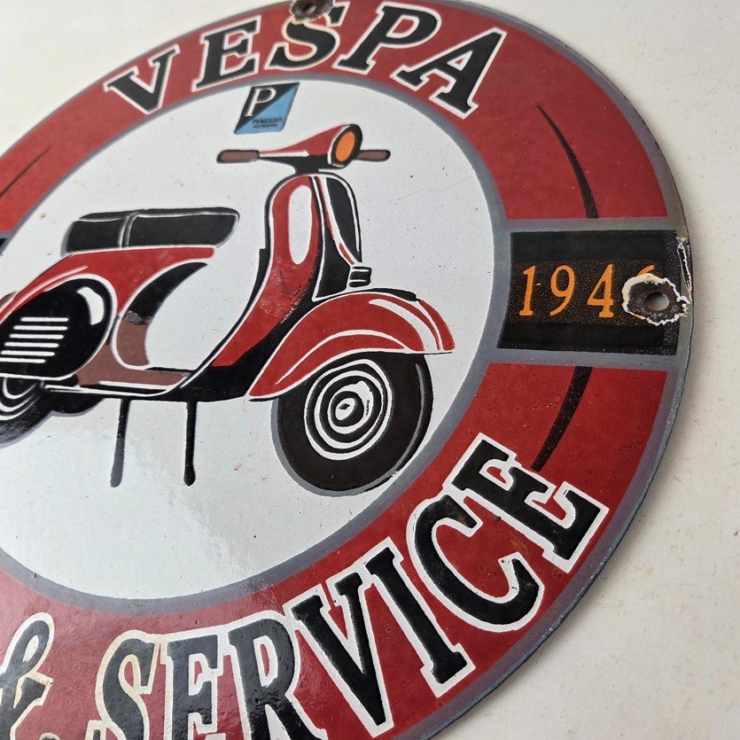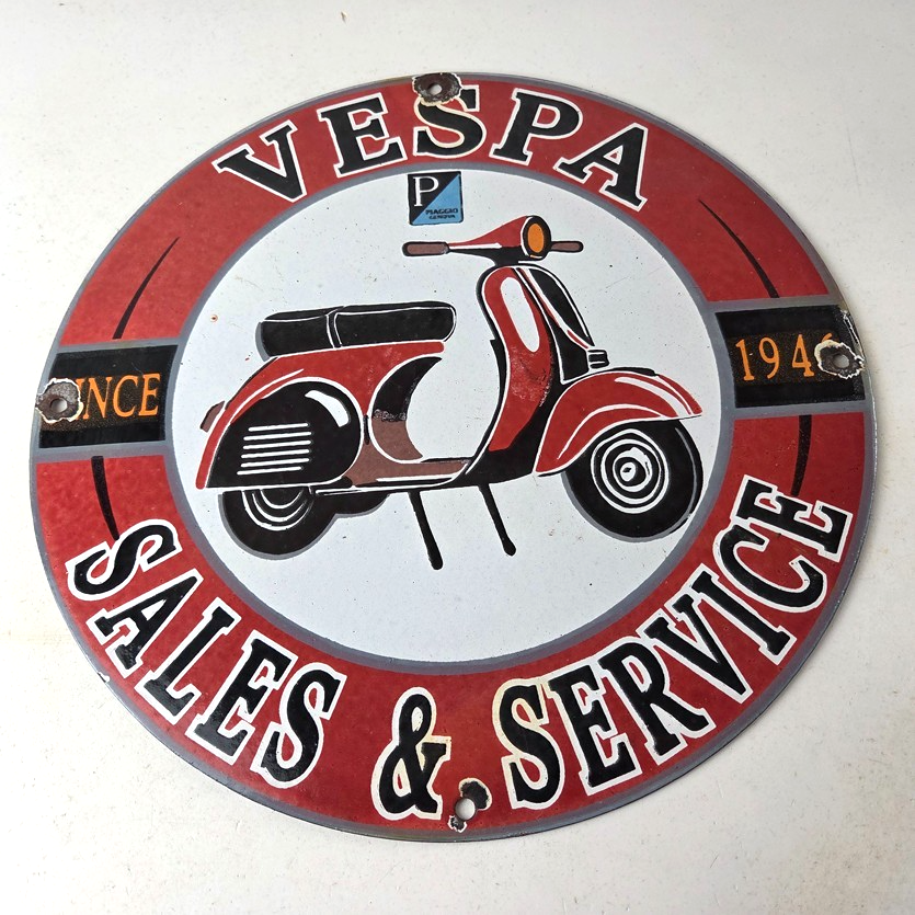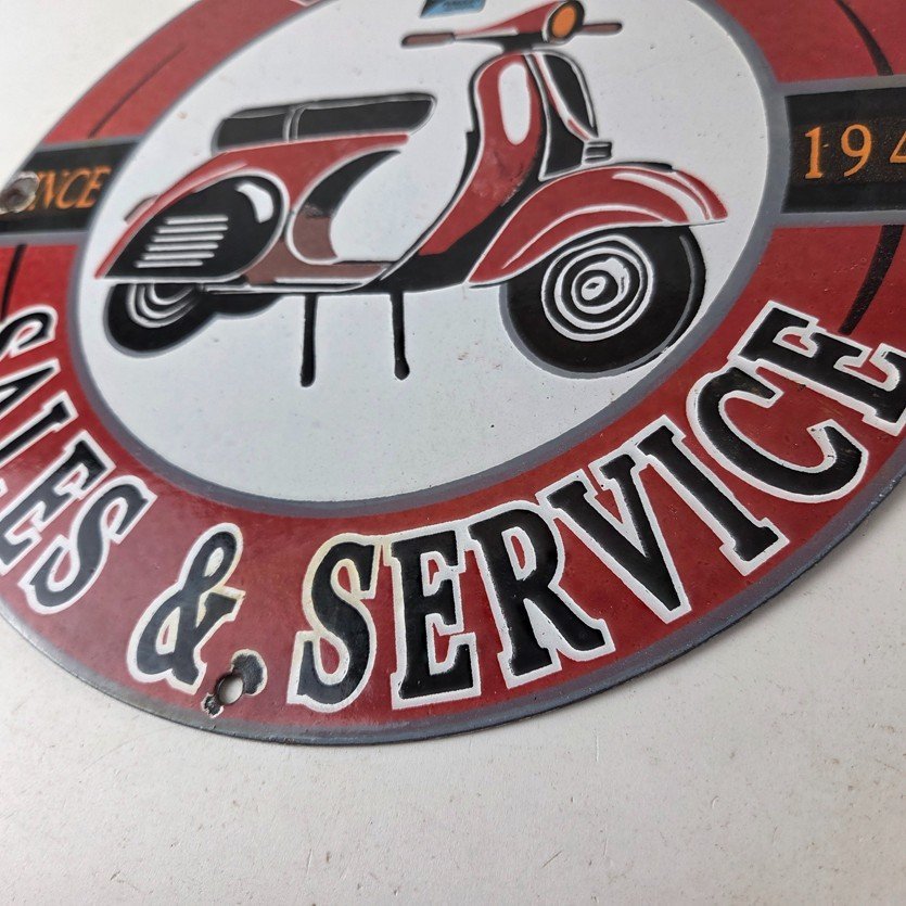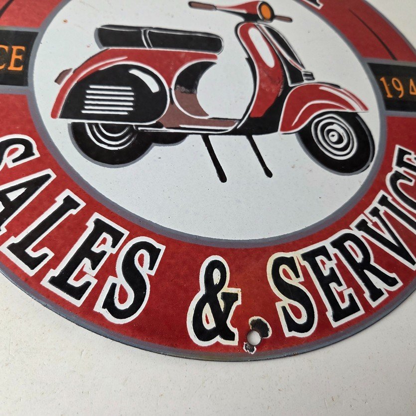 This sign will enhance your mancave, collection, shop, or garage. It is your chance to own a piece of Vespa advertising.