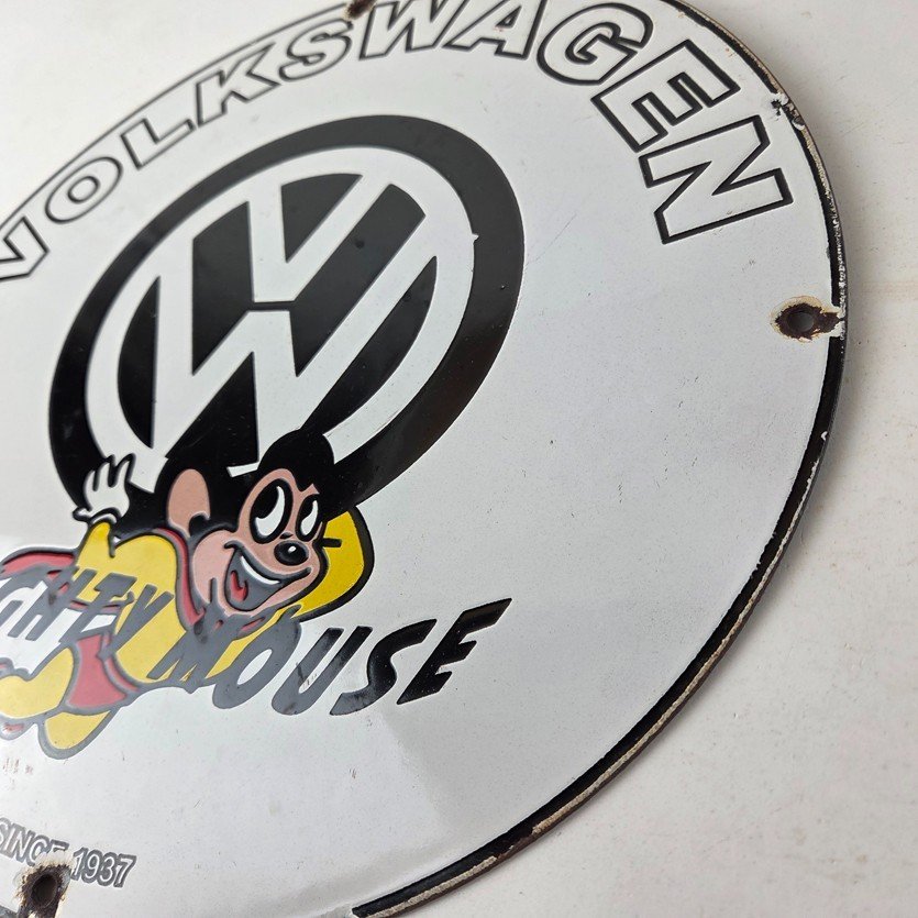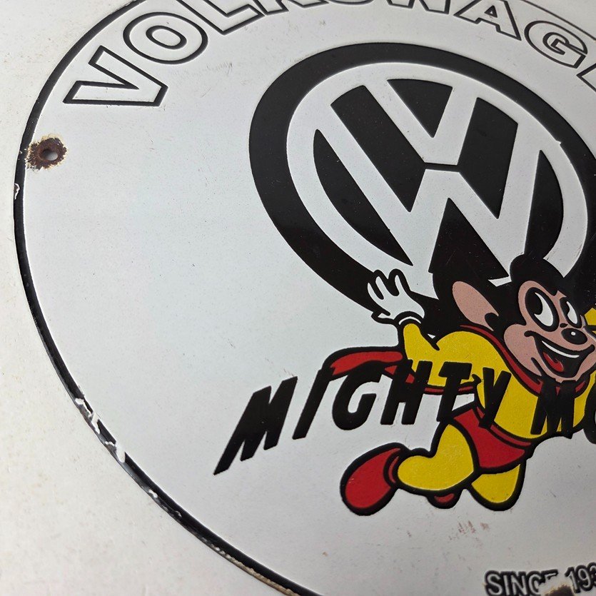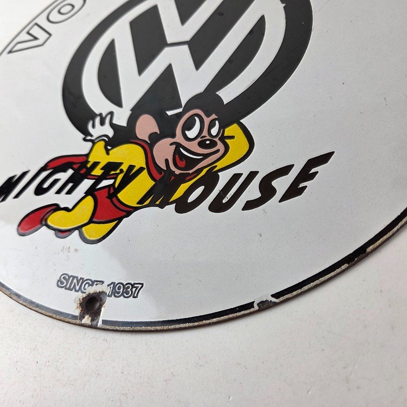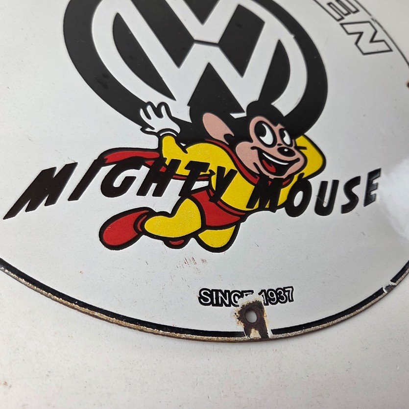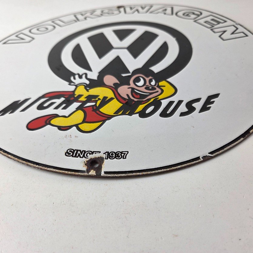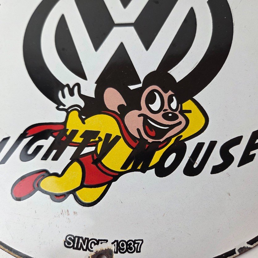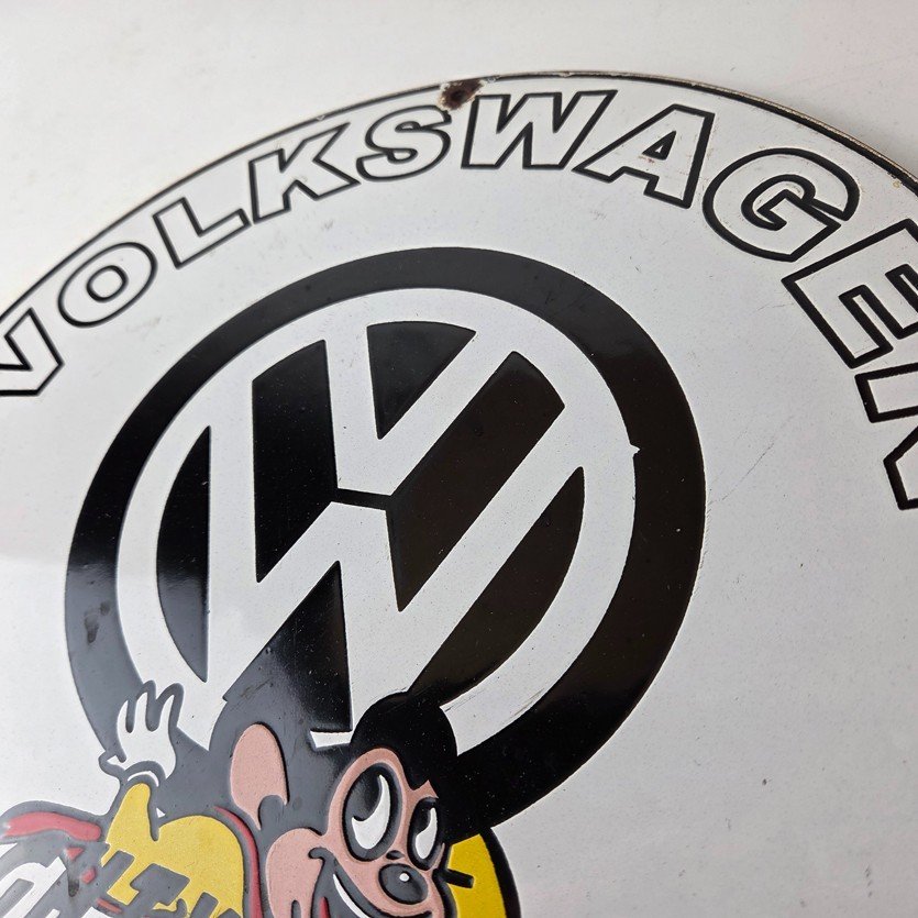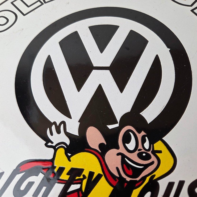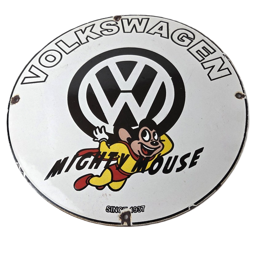 Vintage Volkswagen Sign – Porcelain Dealership Sales VW Mighty Mouse Gas Sign