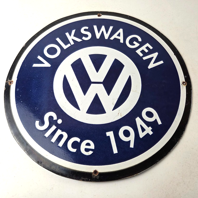 Vintage Volkswagen Sign – Porcelain VW Automobile Dealership Sales Gas Pump Sign
