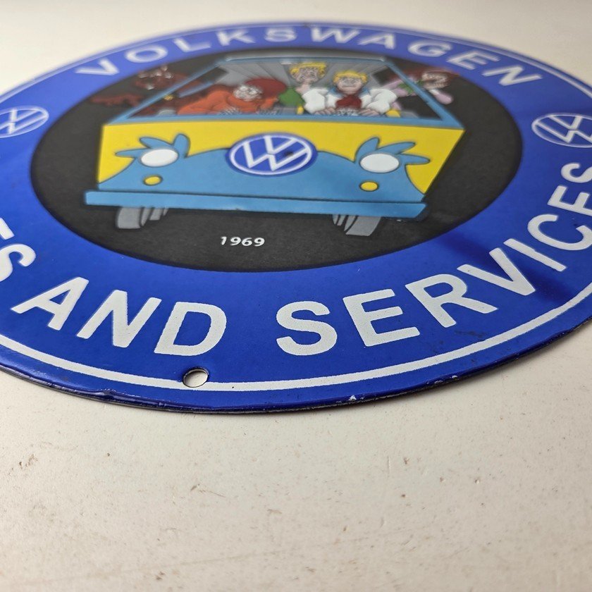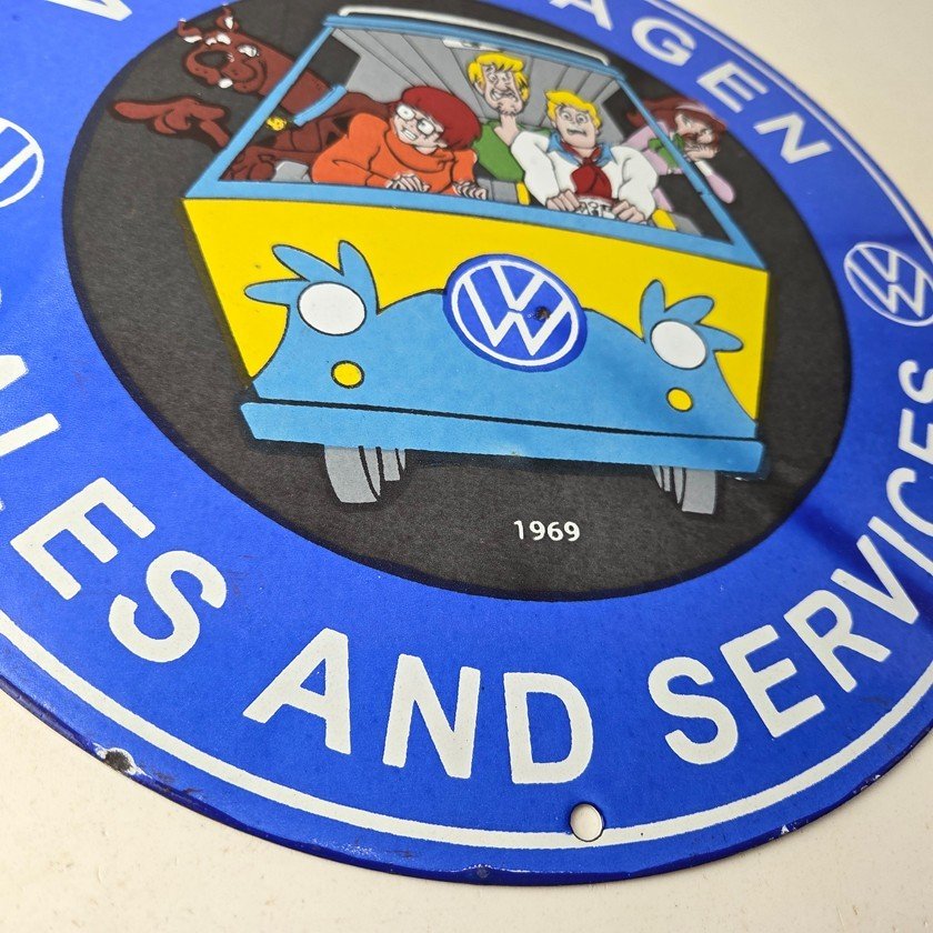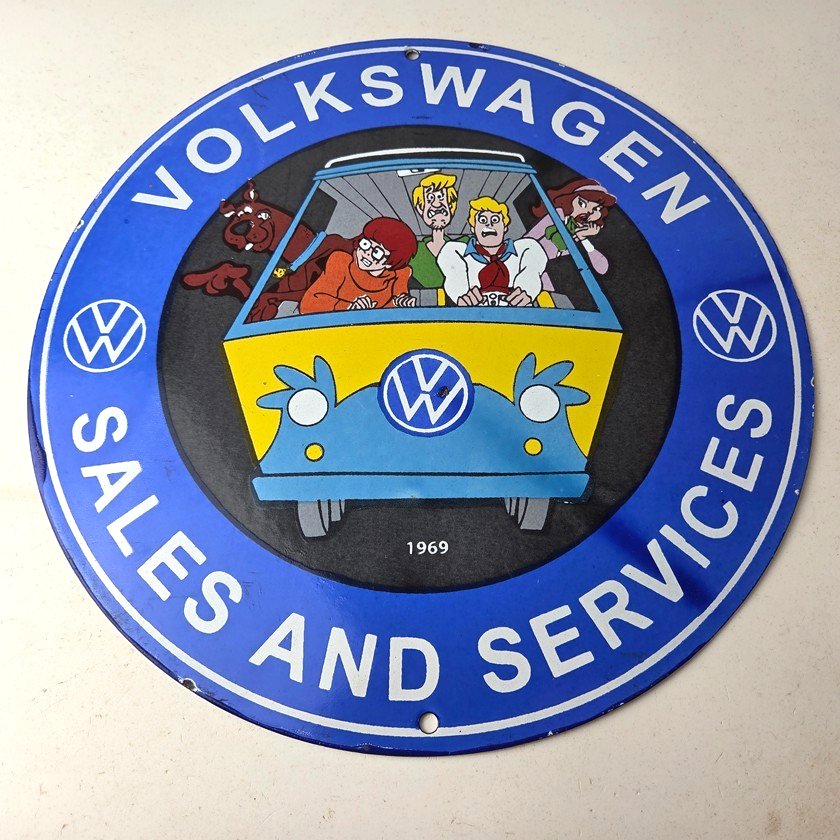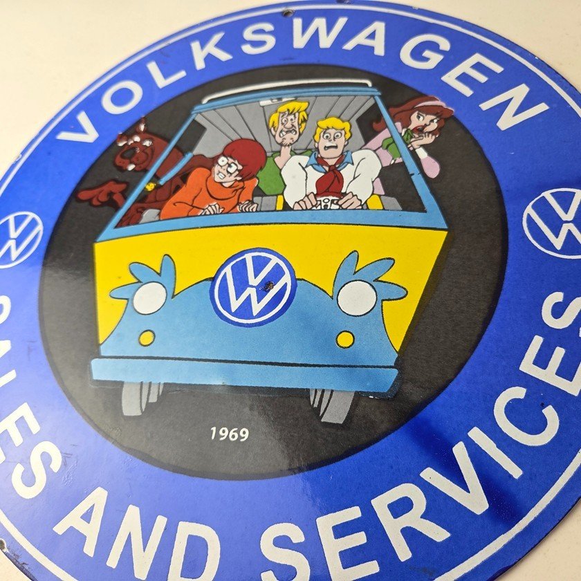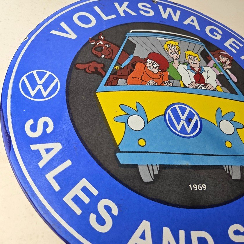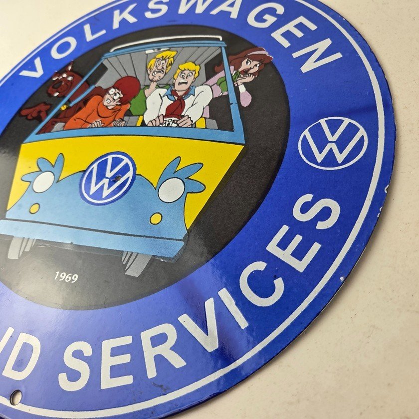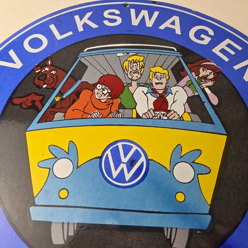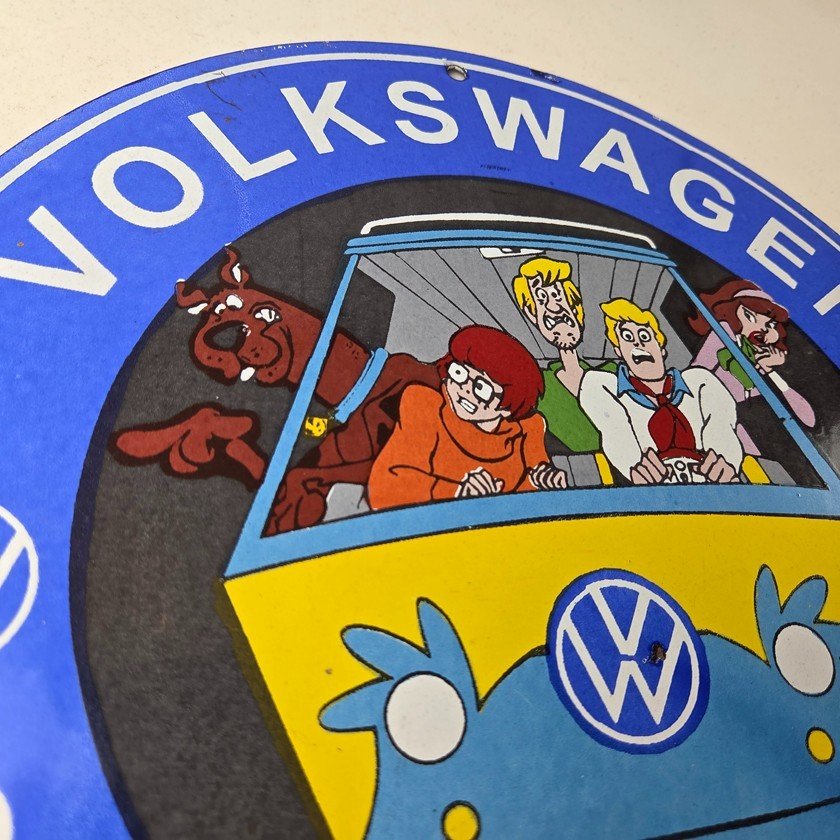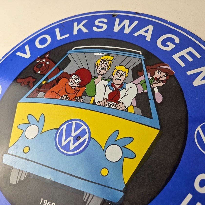 Vintage Volkswagen Sign – Porcelain VW Bus Service Scooby Doo Gas Sign