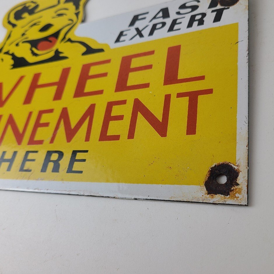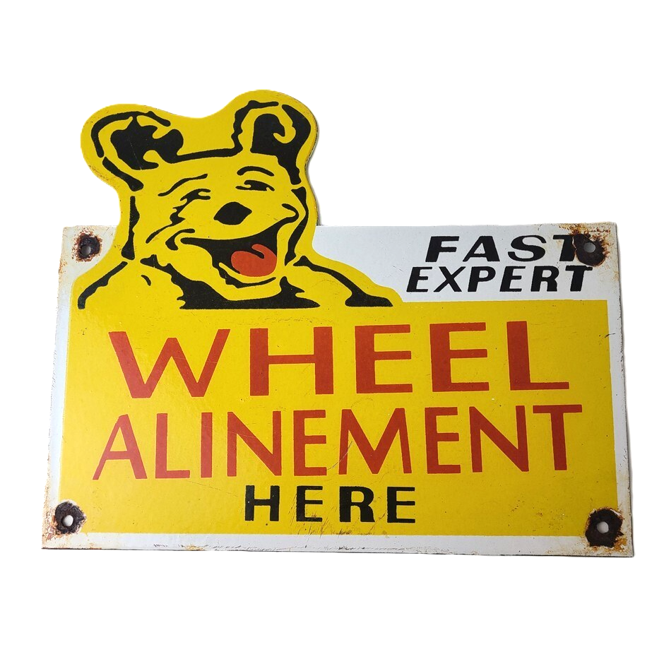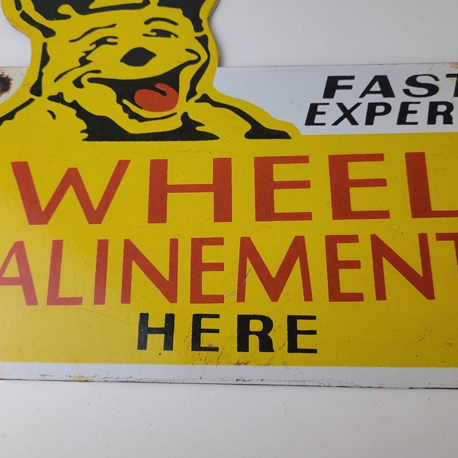 Vintage Wheel Alinement Sign – Auto Tires Sales Service Gas Pump Porcelain Sign