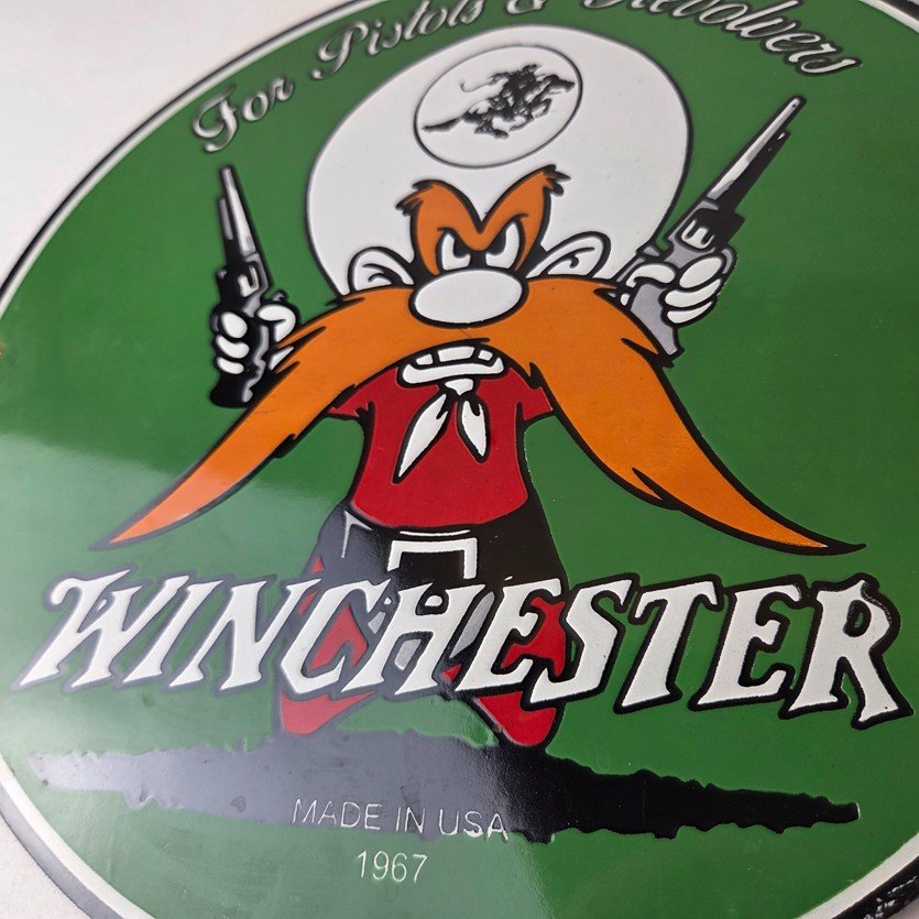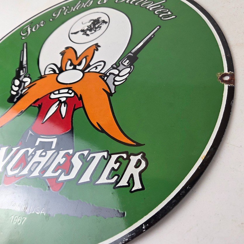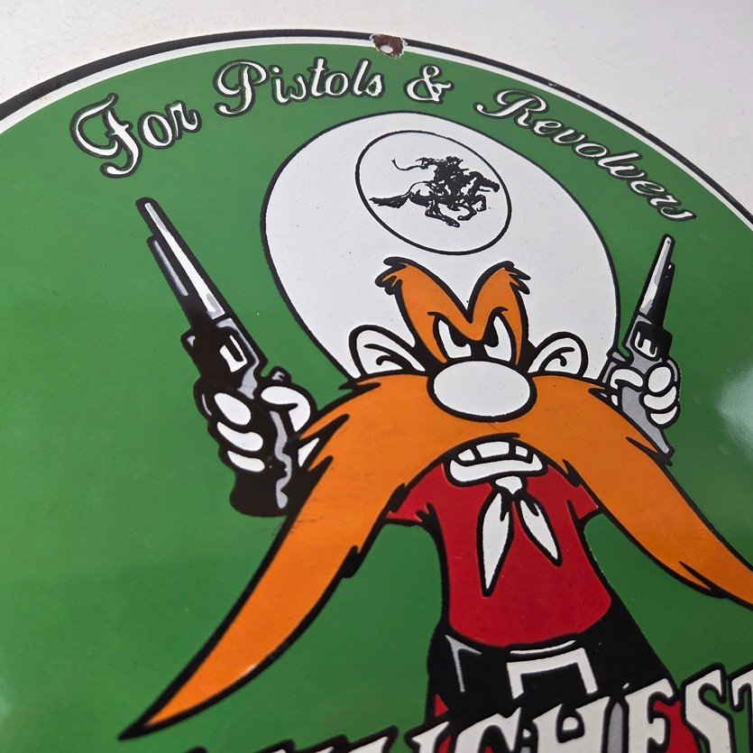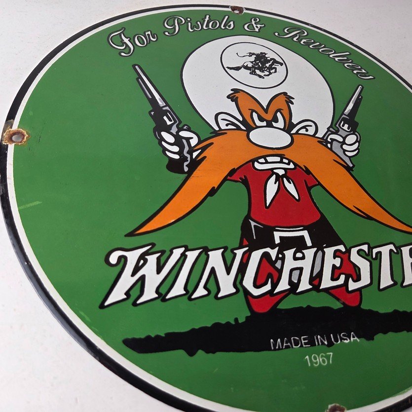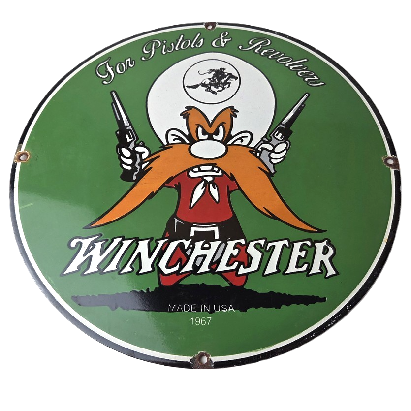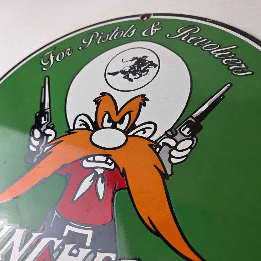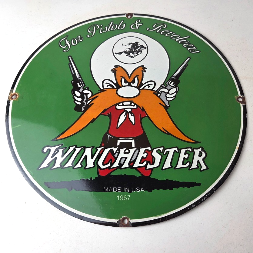 Vintage Winchester Porcelain Sign – Pistols Shooter Gas Service Pump Sign