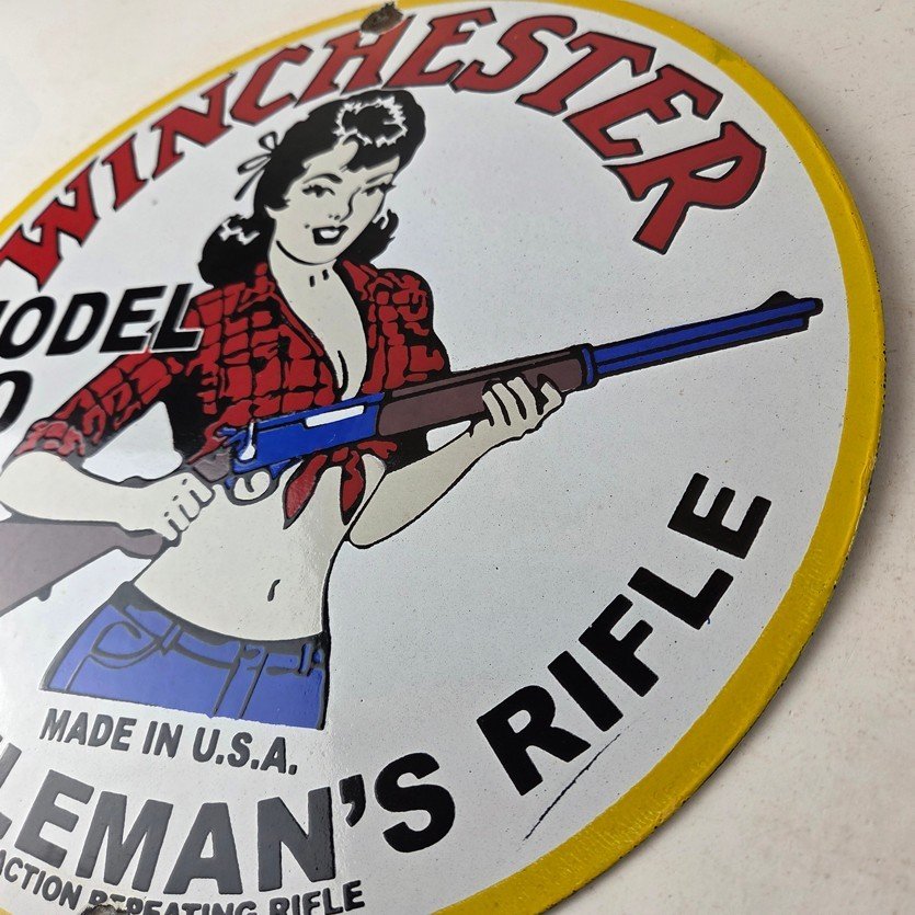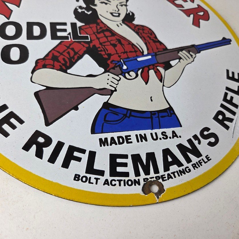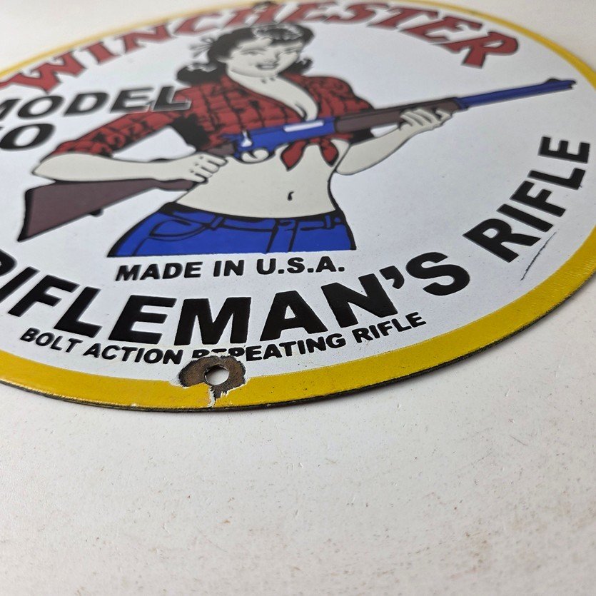 Vintage Winchester Rifleman’s Rifle Porcelain Hunting Firearm sign.