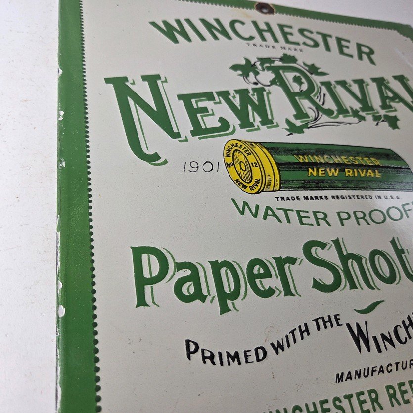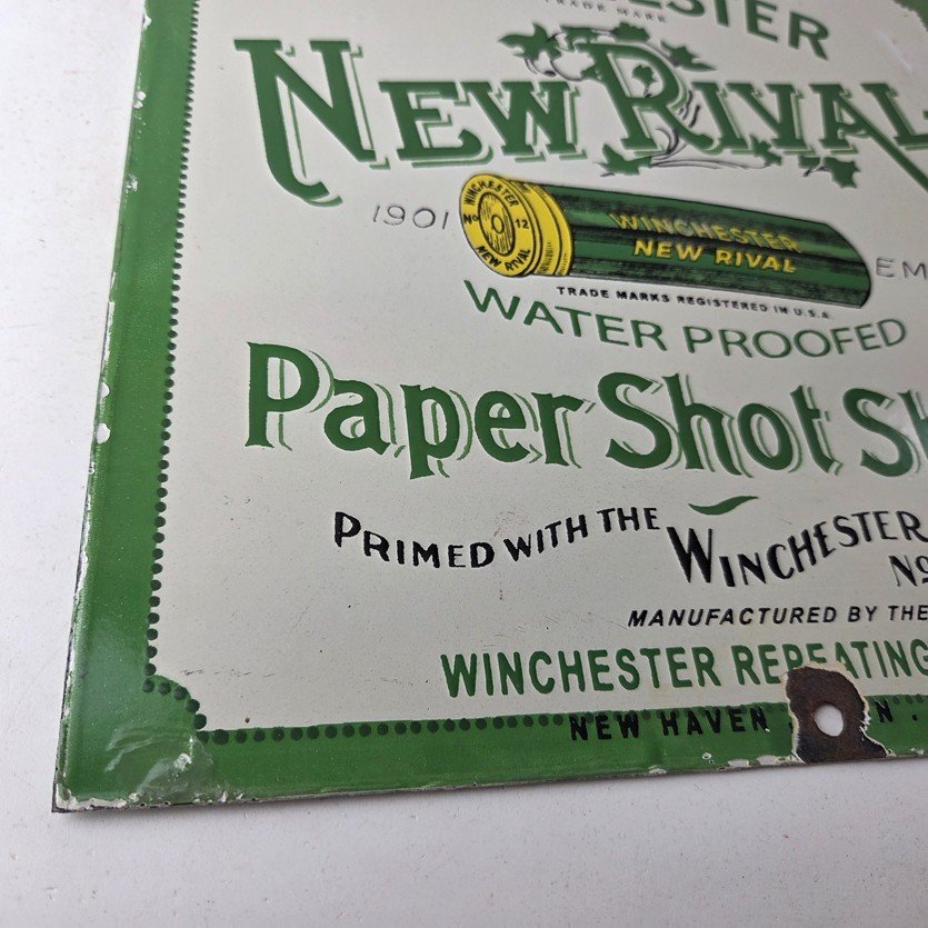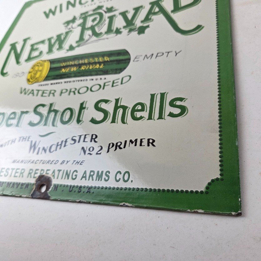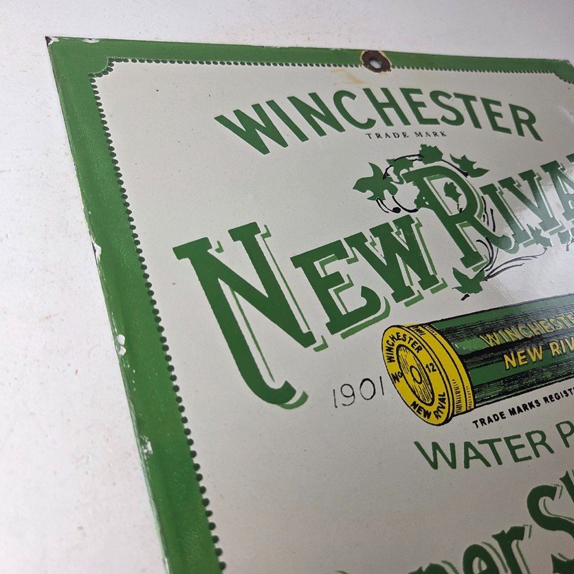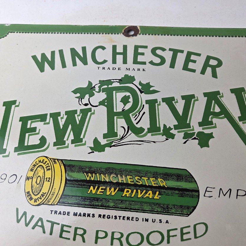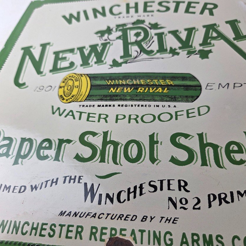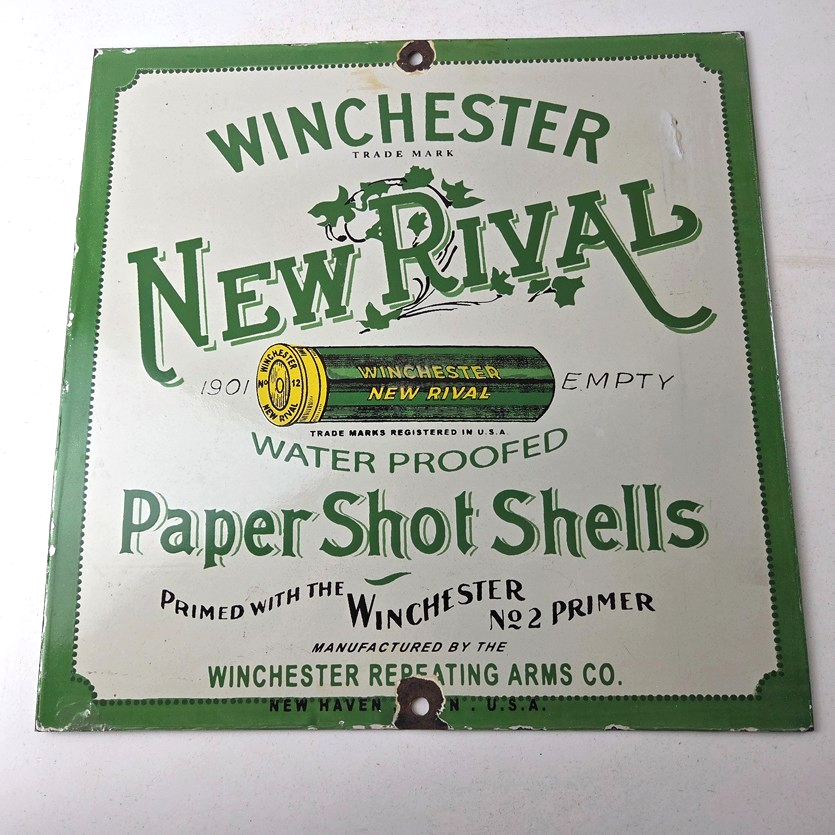 This vintage Winchester porcelain sign features the iconic Winchester firearm brand and is perfect for collectors of hunting and outdoor sports memorabilia. Measuring 12″ in diameter, this red sign is sure to catch the eye of any gas and oil enthusiast.