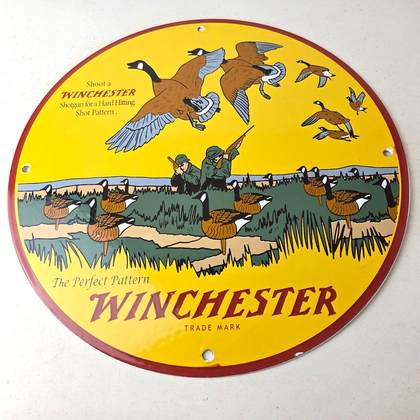 Vintage Winchester Sign – Porcelain Firearms Shot Gun Hunting Gas Oil Pump Sign