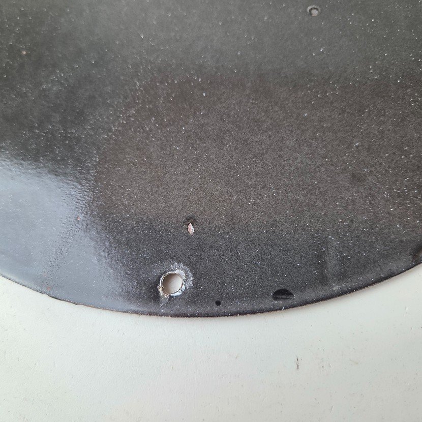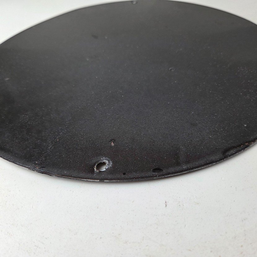 Made of porcelain enamel on steel with patina and wear: rust spotting around the mounting holes, minor edge chips, light surface scratches, and minimal discoloration. This is a porcelain enamel advertising sign in excellent condition, exactly as shown in the photos.