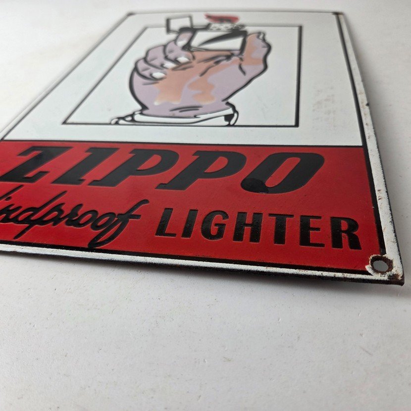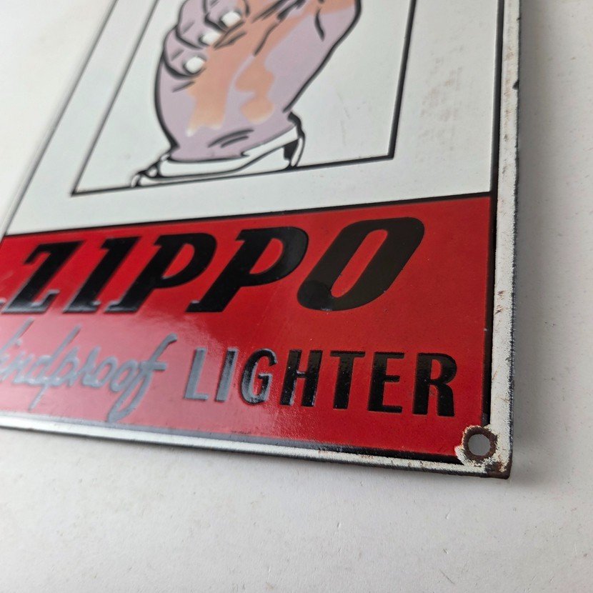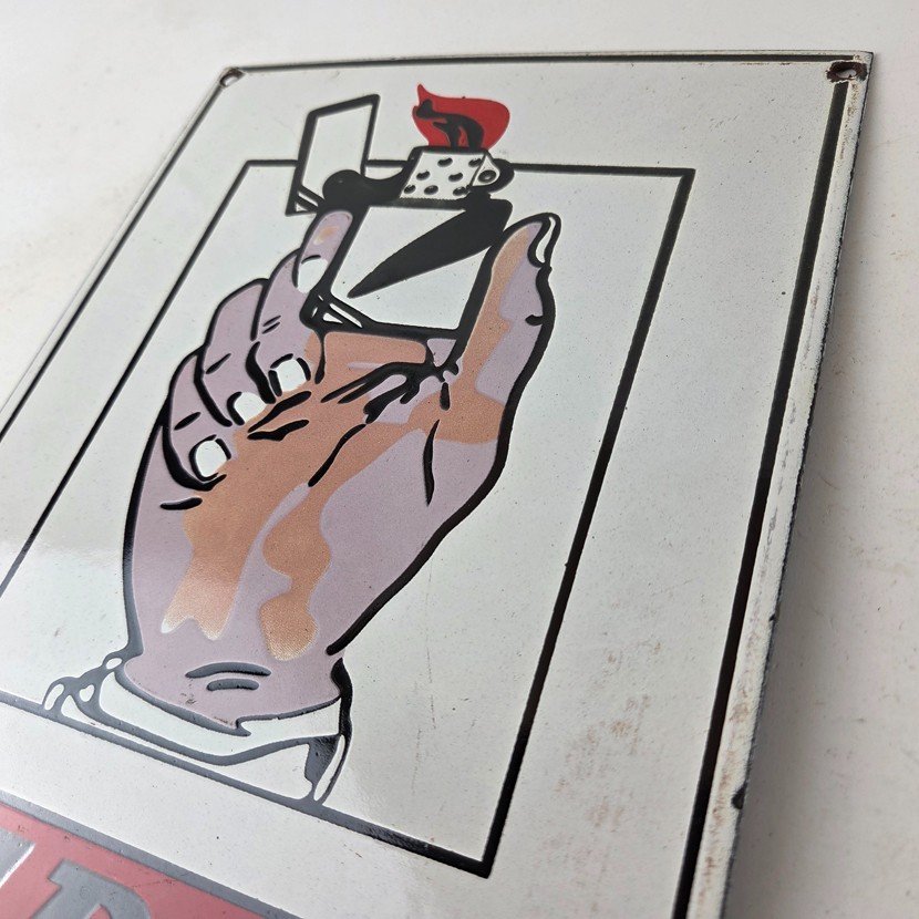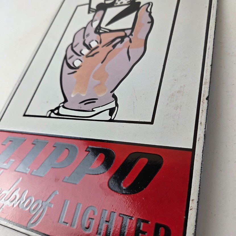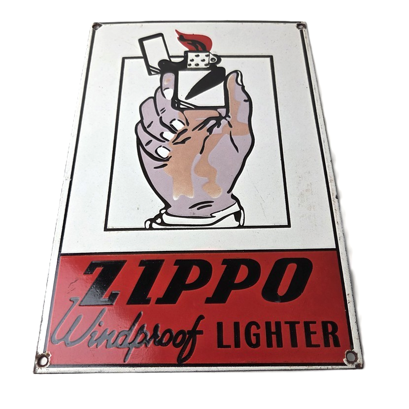 This vintage Zippo Lighter Porcelain sign features the iconic Zippo brand and is perfect for collectors of gas and oil advertising memorabilia. The sign measures 12″ x 8″ and features a vibrant colors scheme with bold lettering.